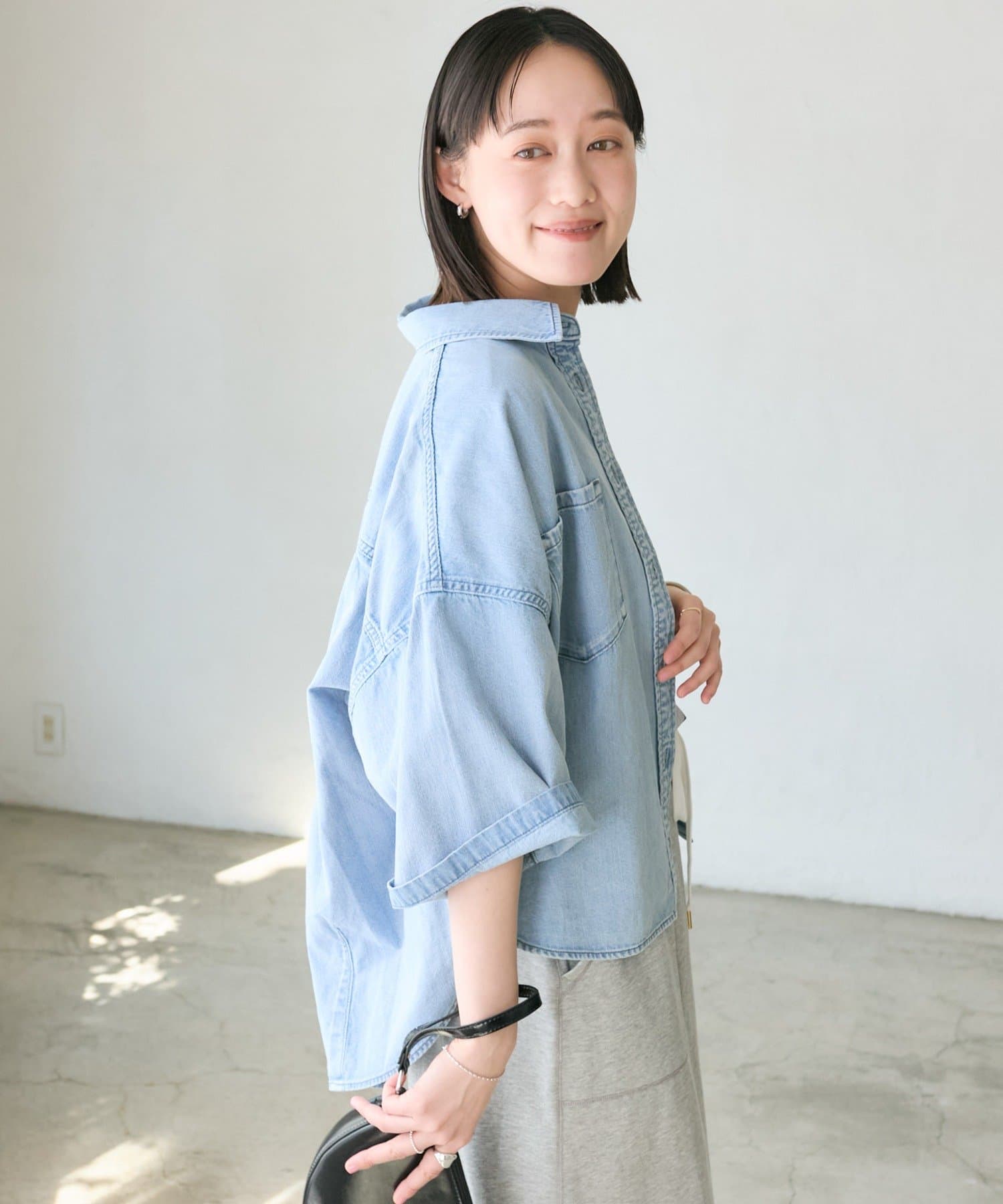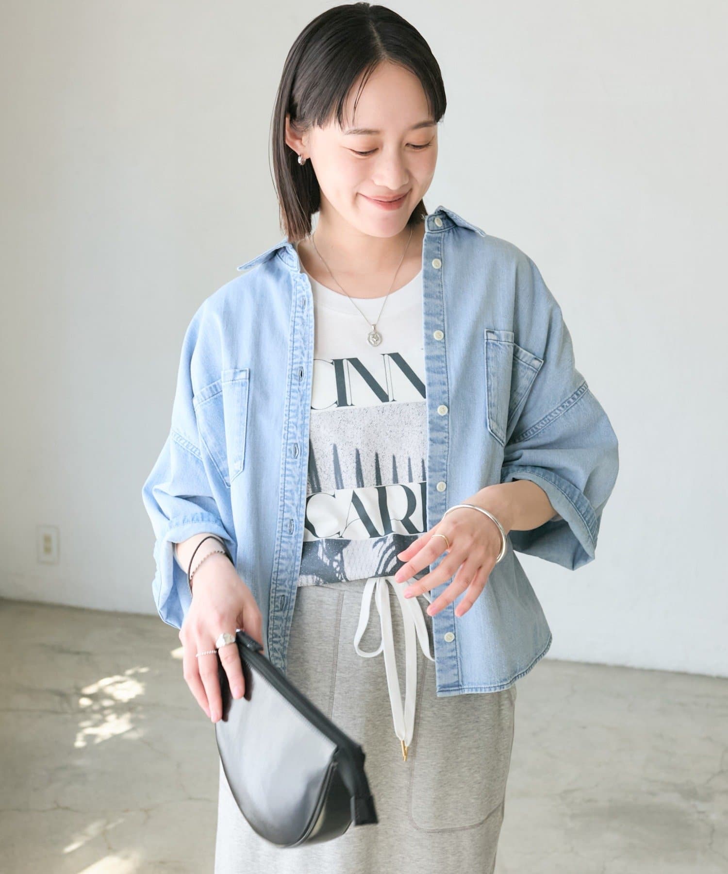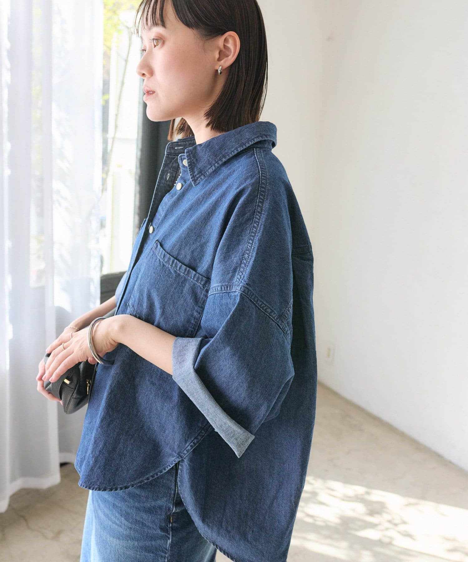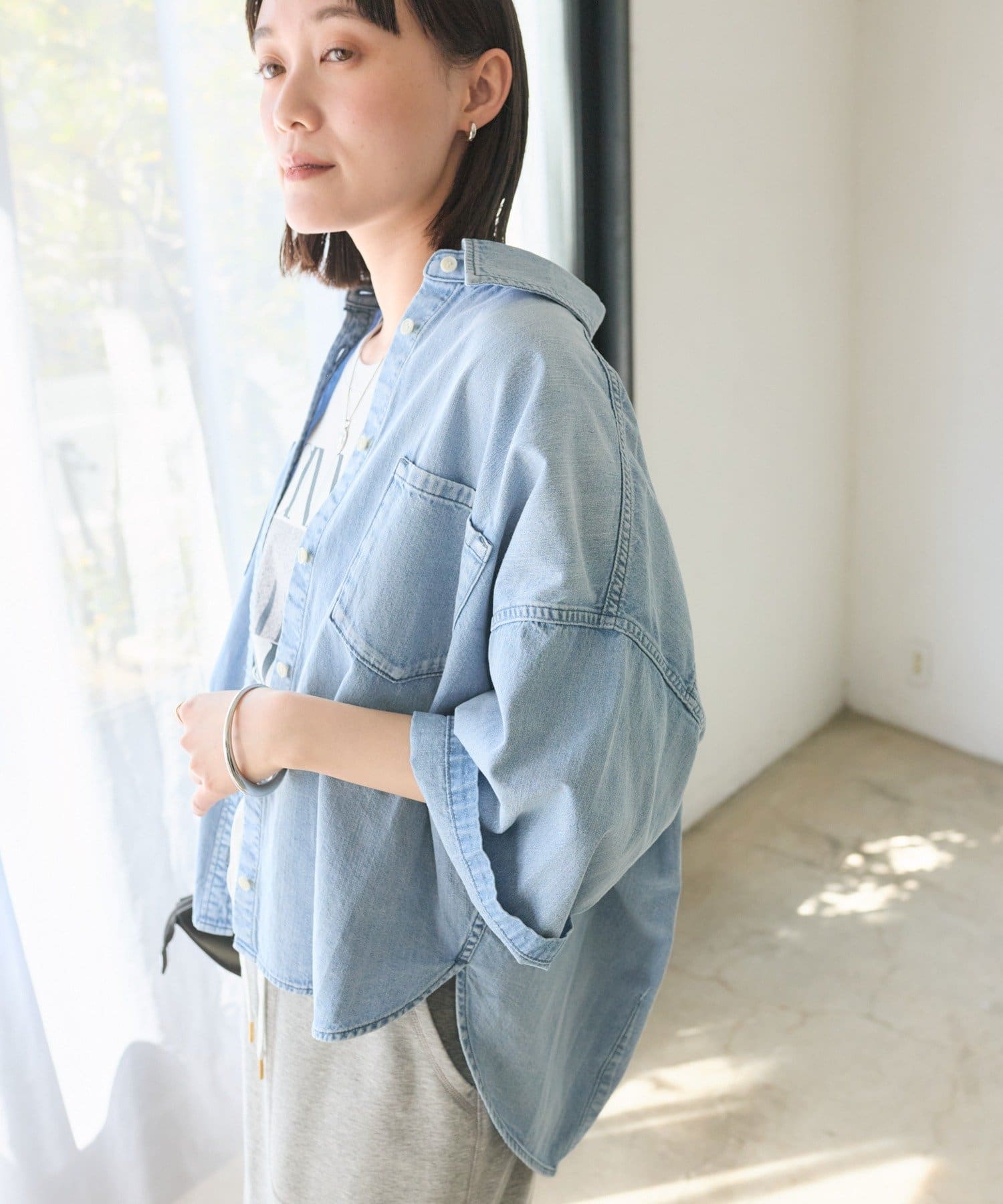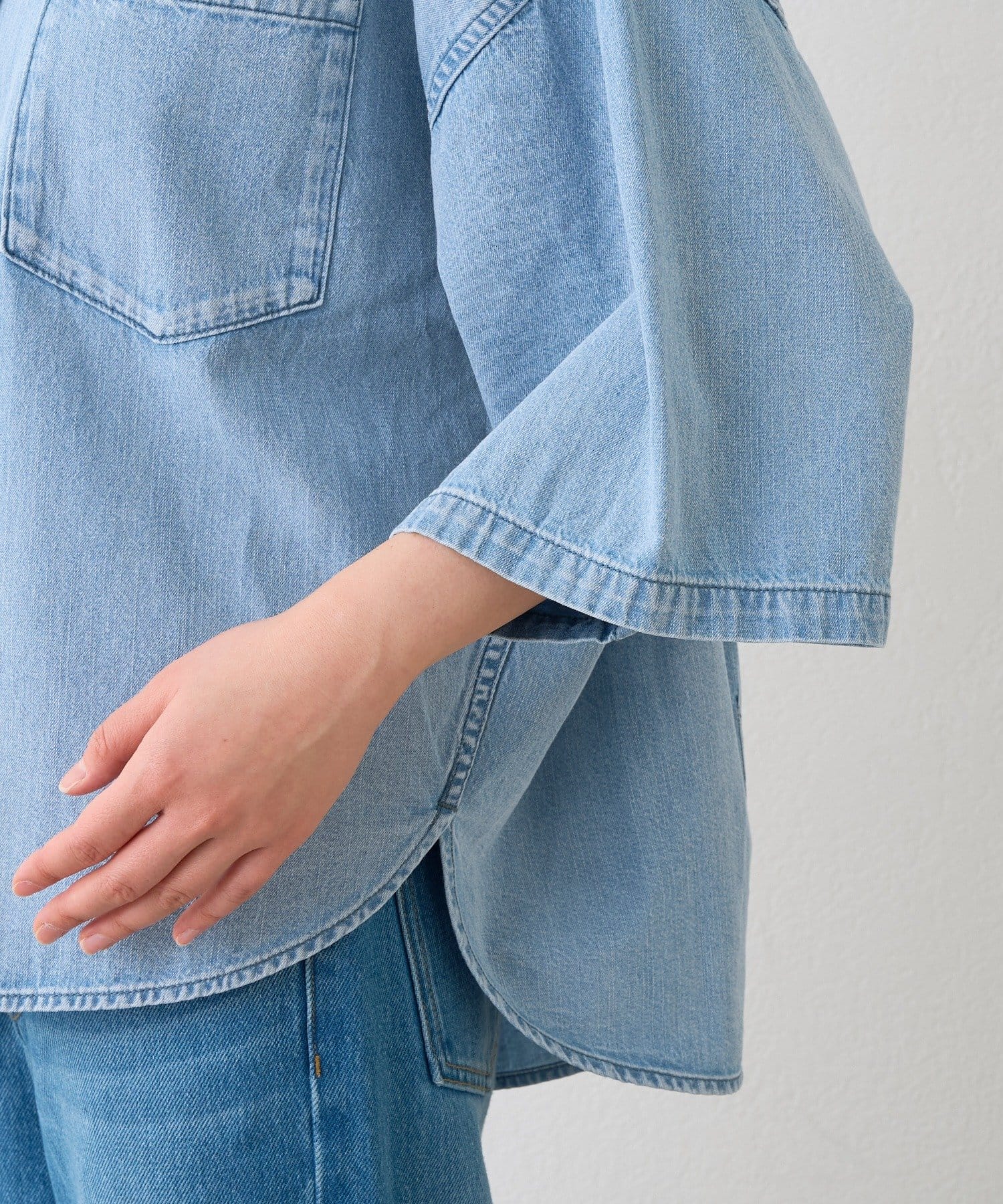 ・ポンチョのようなたっぷりとしたシルエットバランスのデニムシャツ