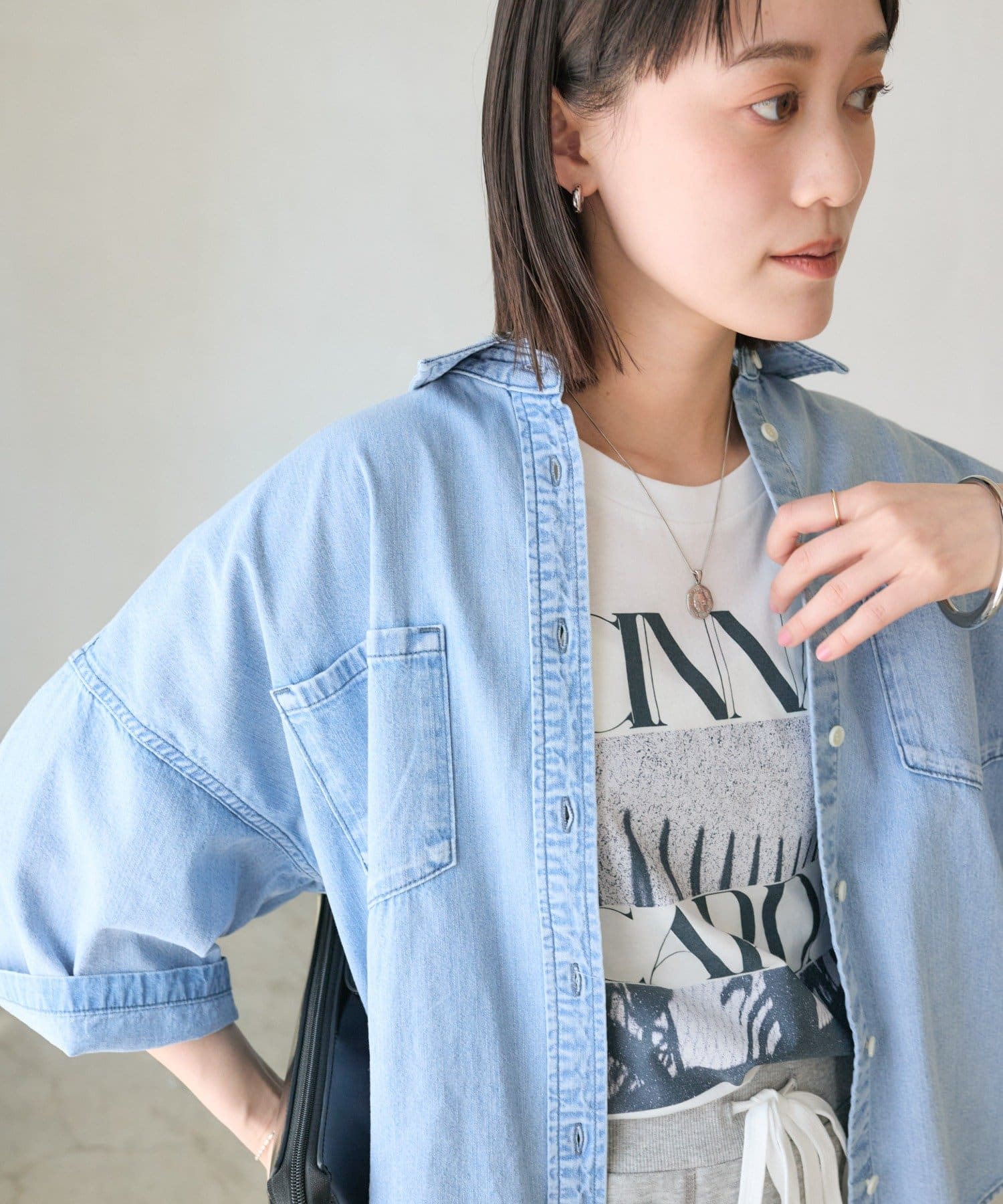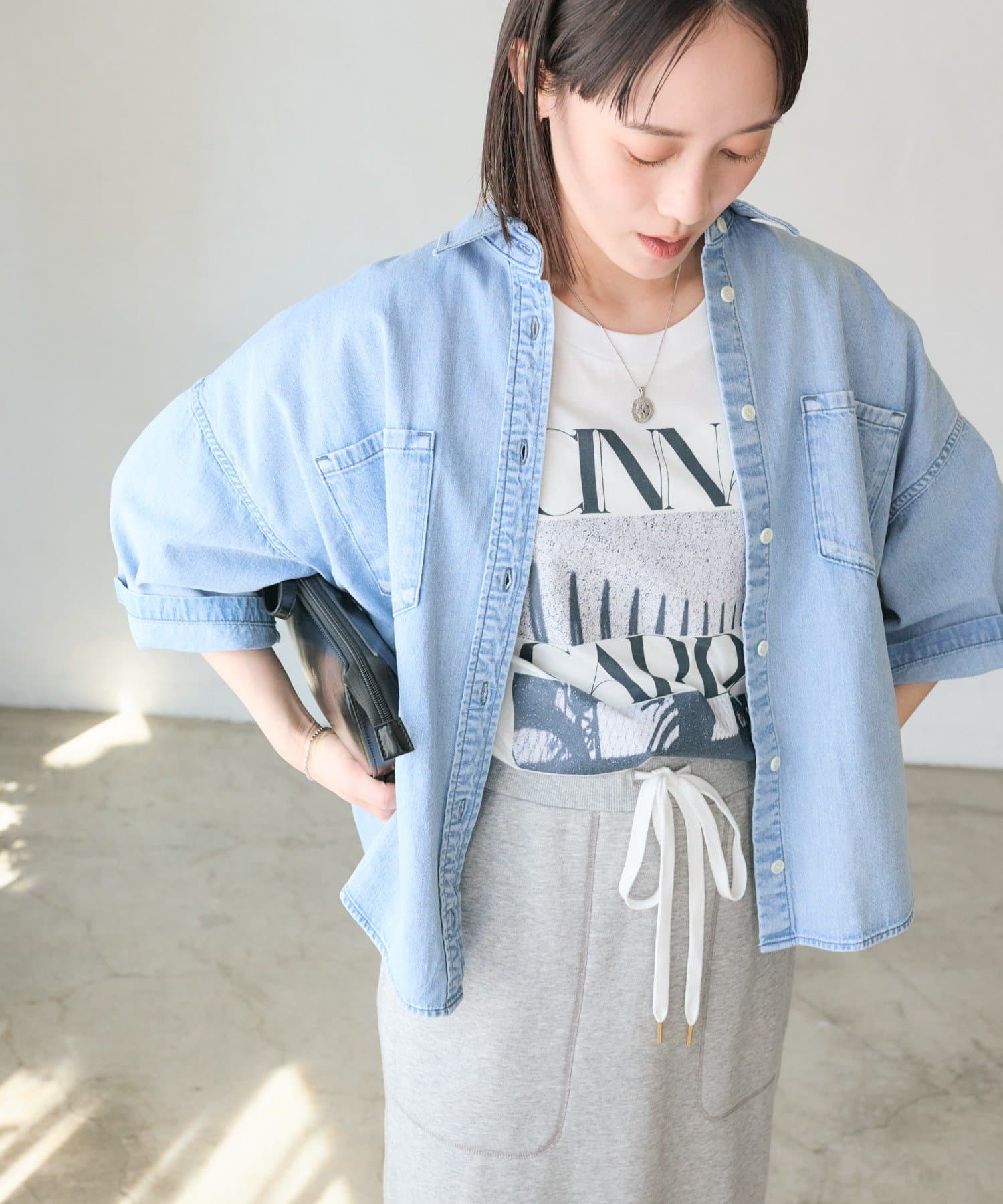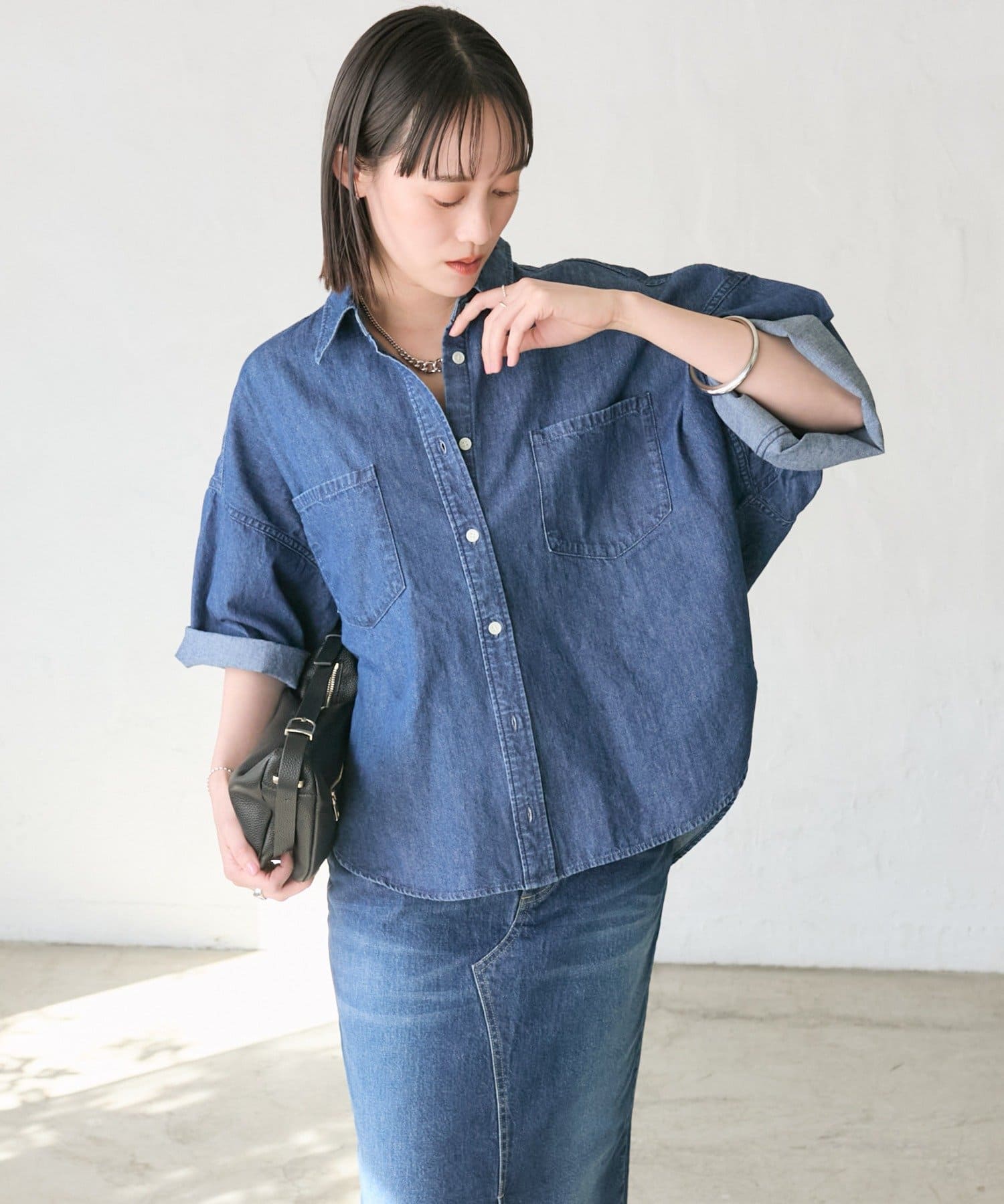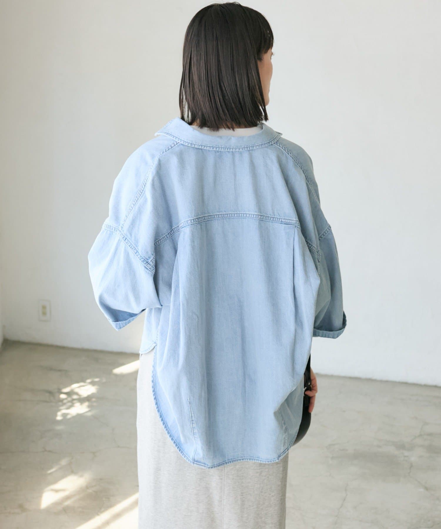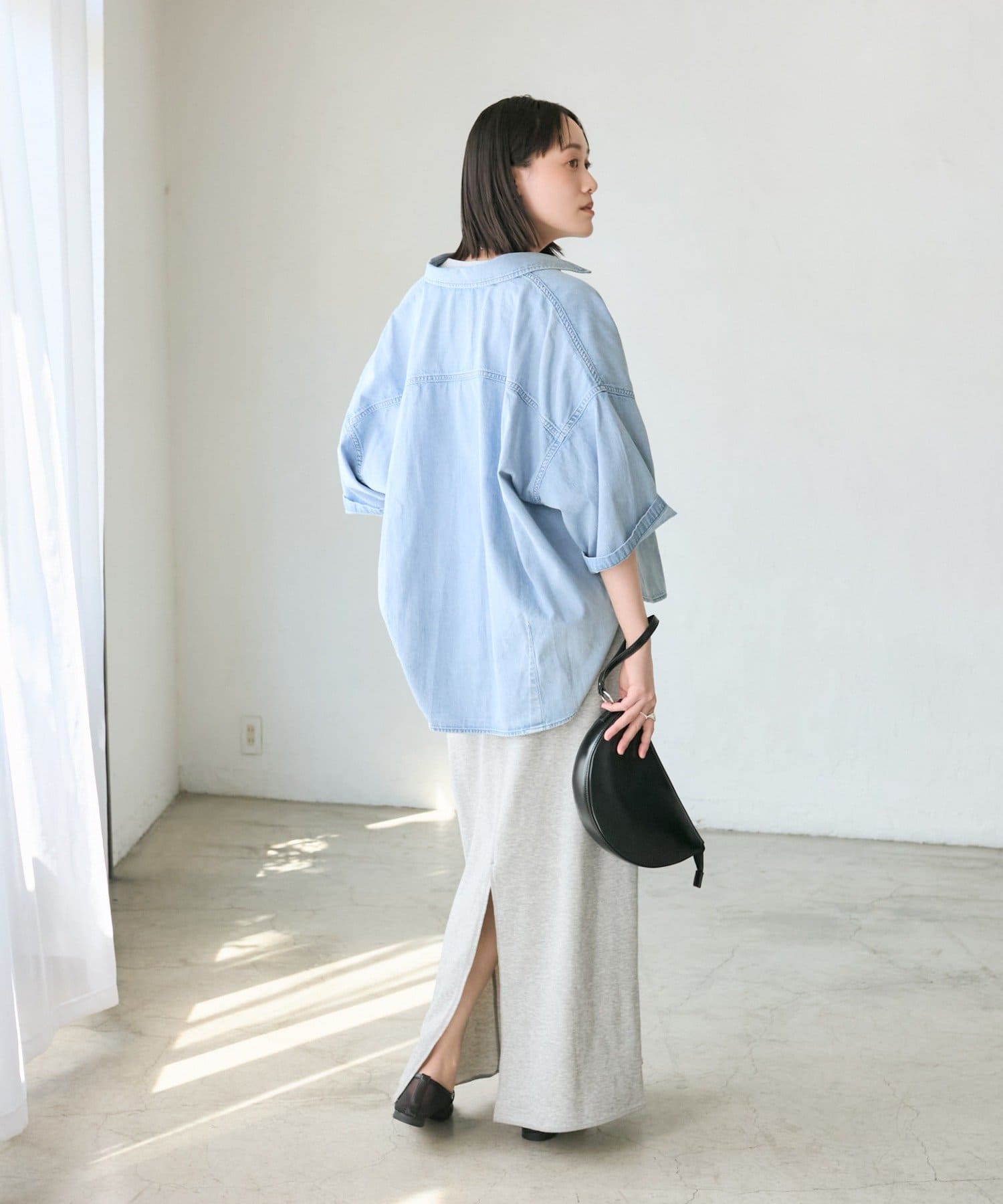 ・ポンチョのようなたっぷりとしたシルエットバランスのデニムシャツ