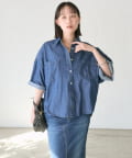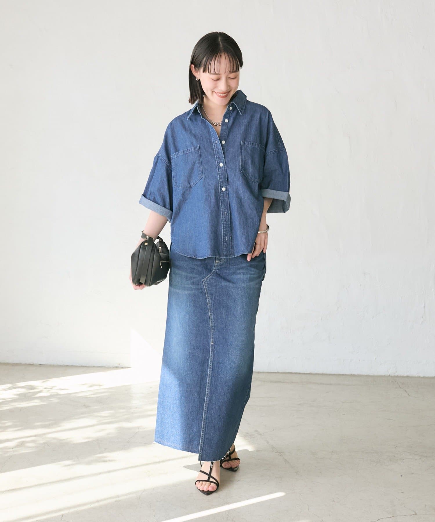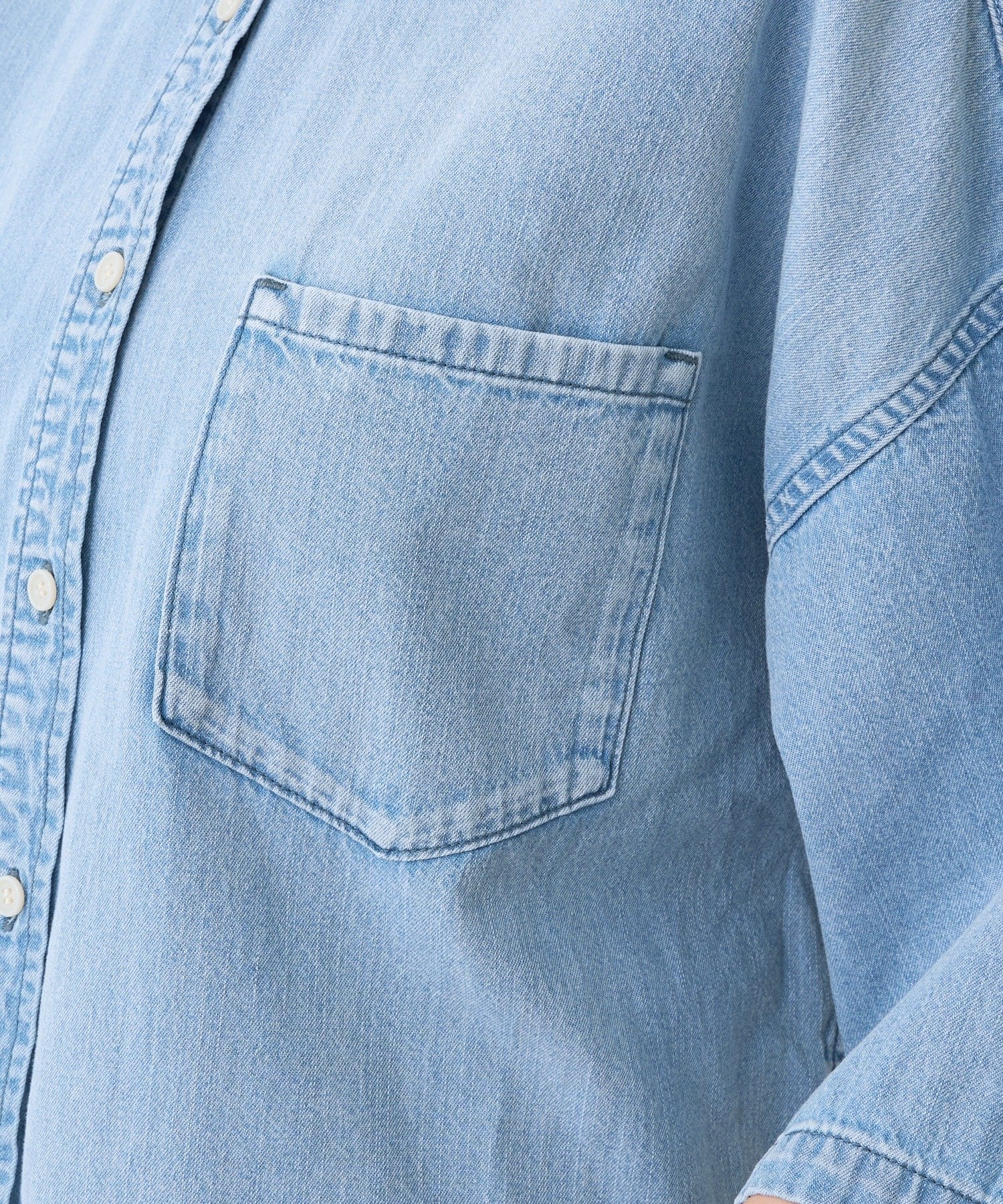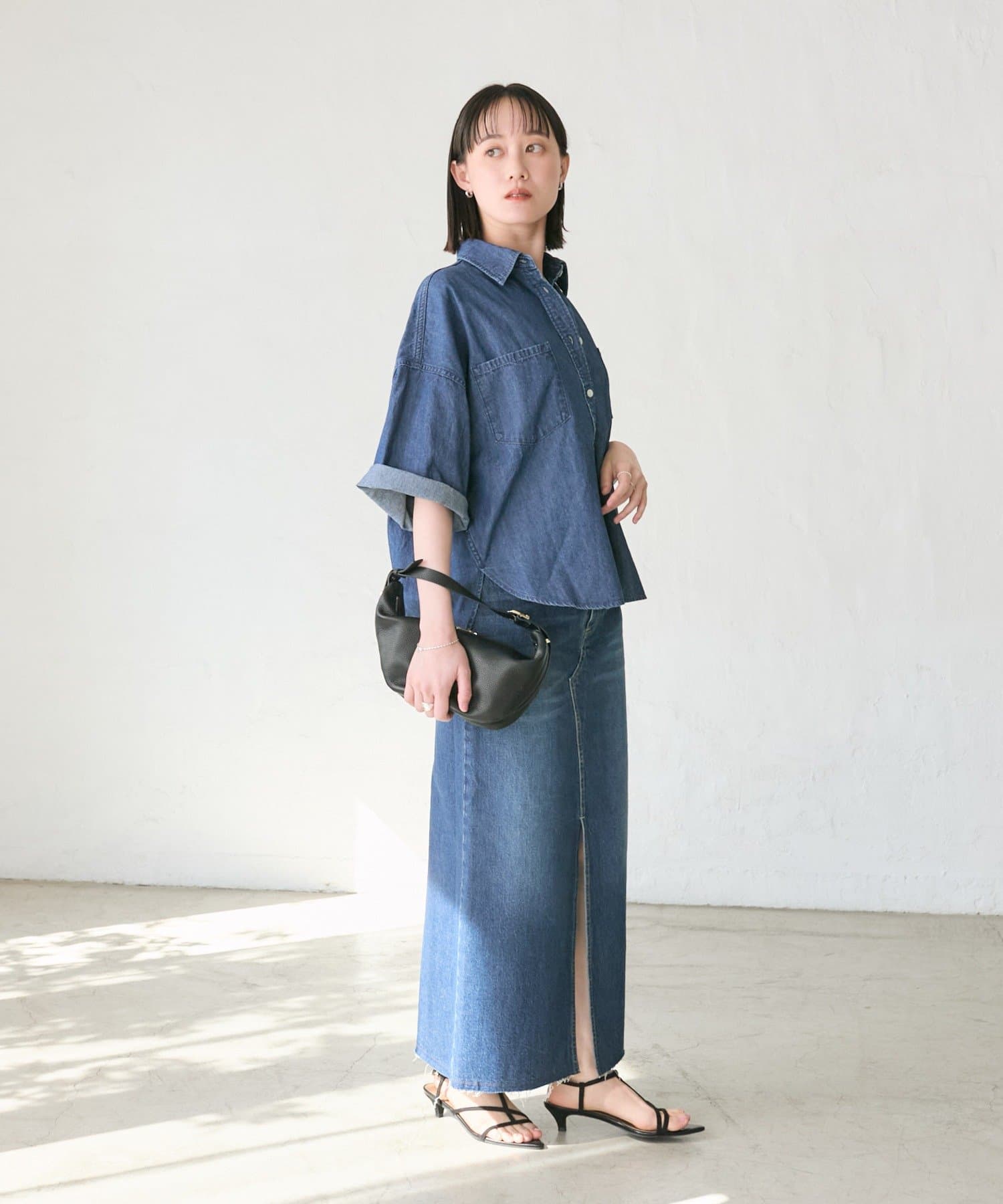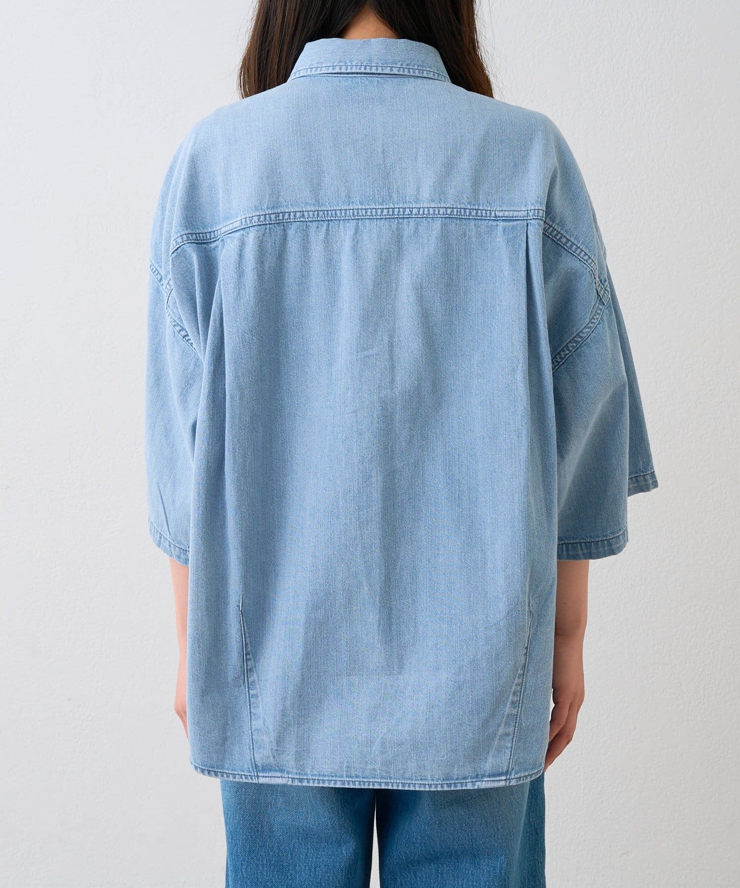 ・ポンチョのようなたっぷりとしたシルエットバランスのデニムシャツ