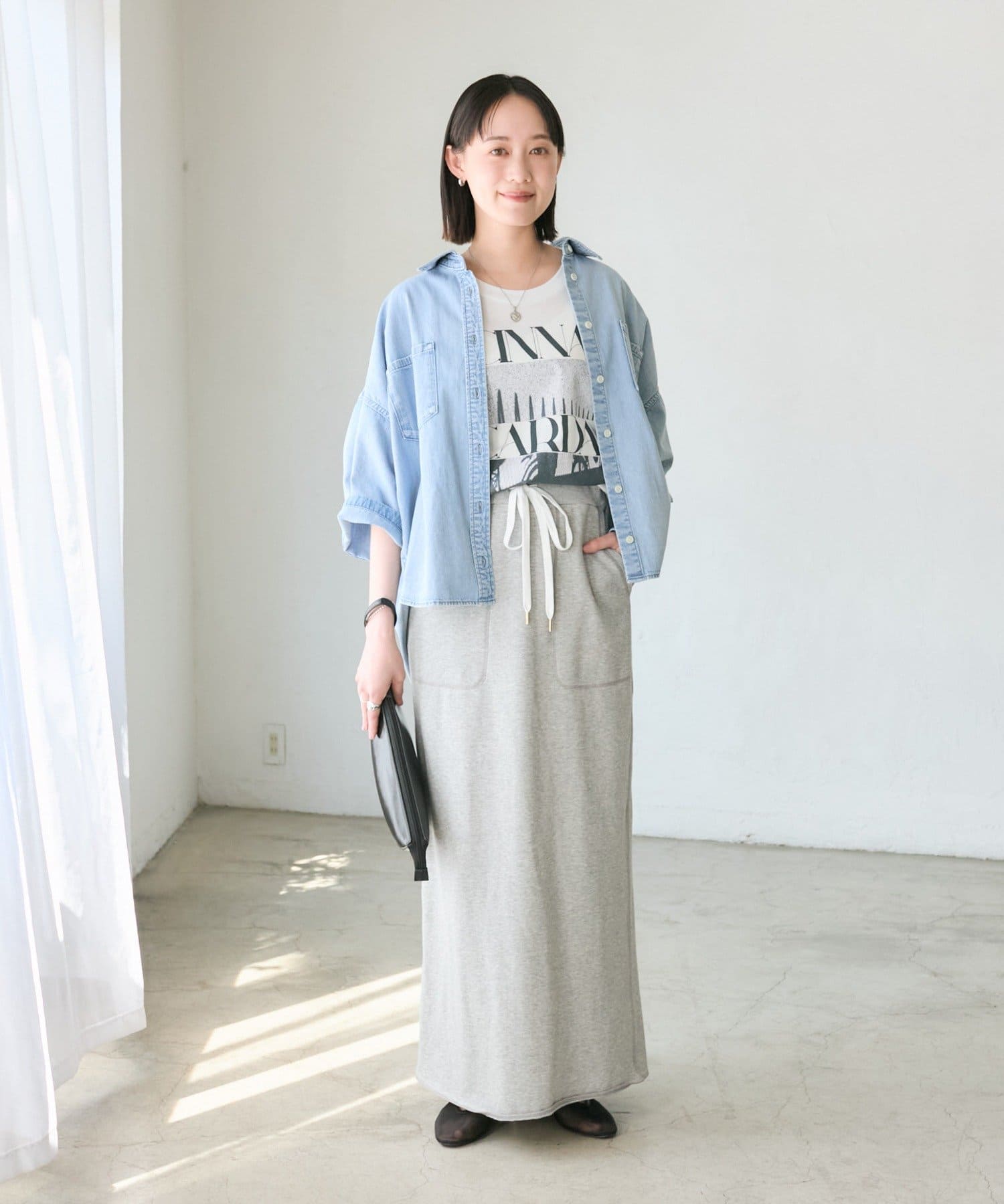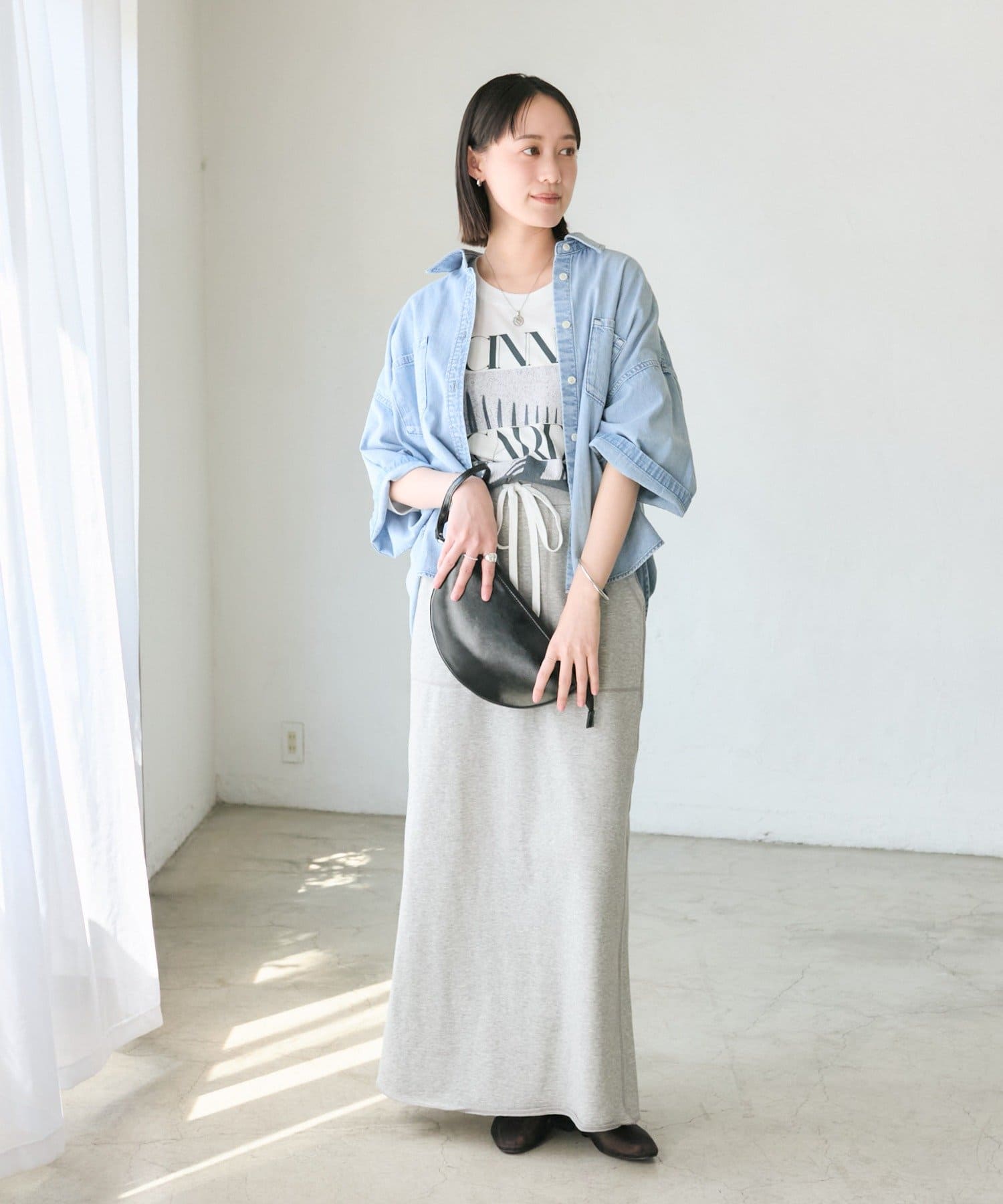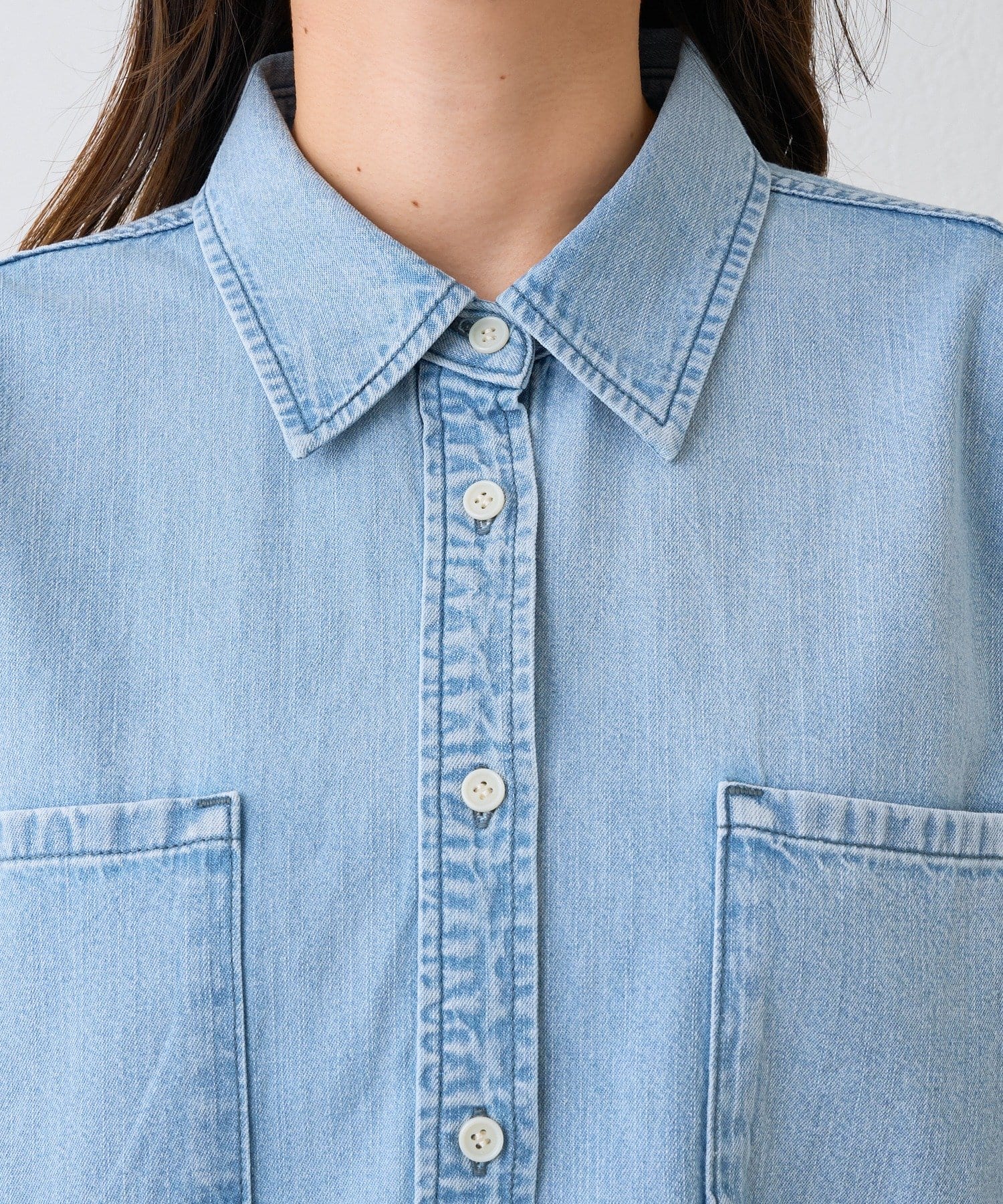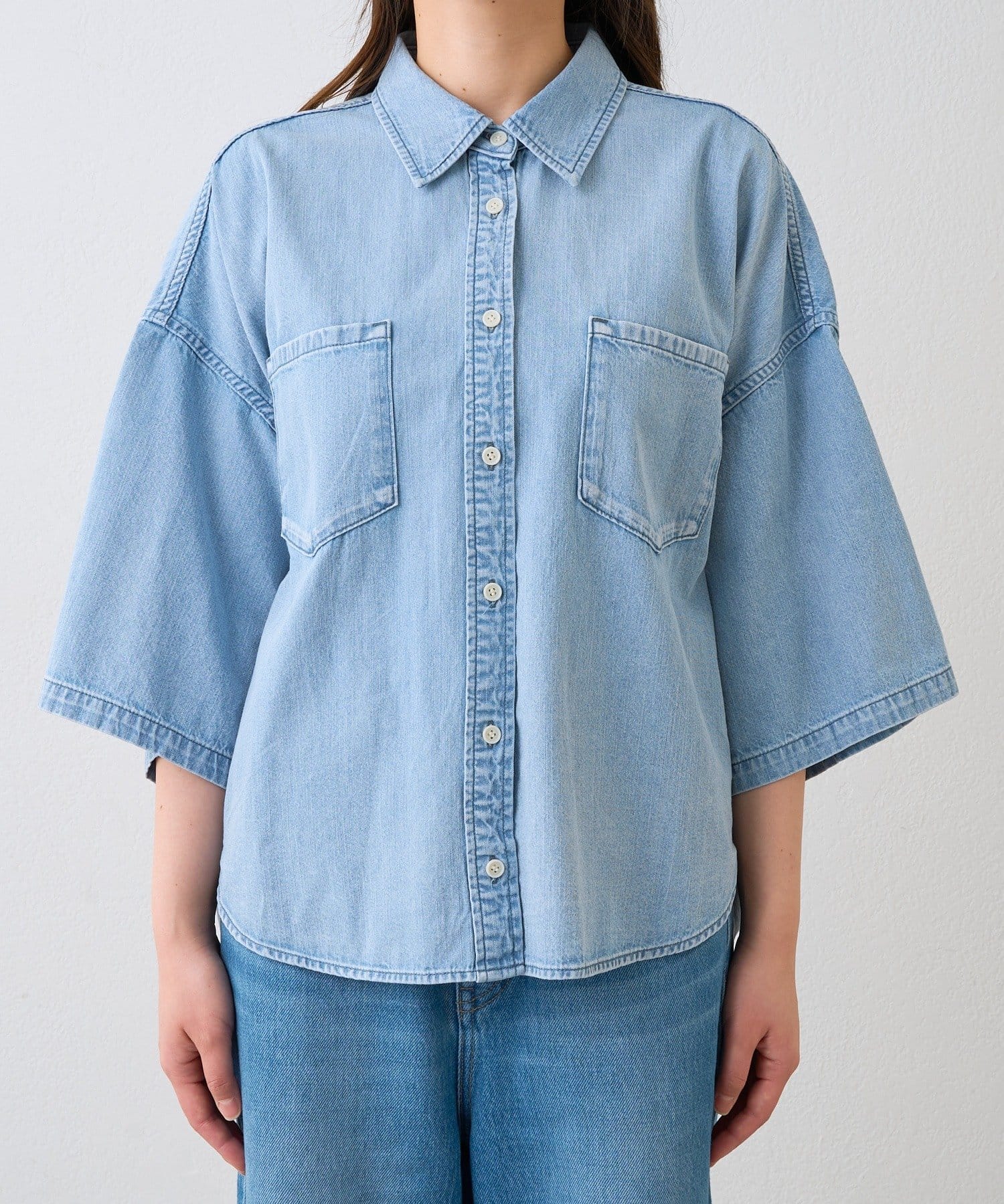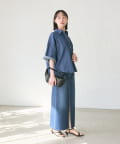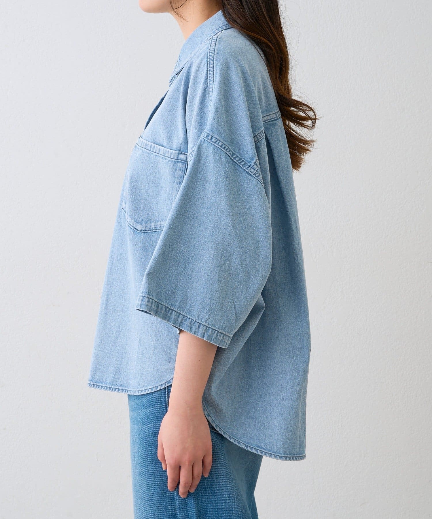 ・ポンチョのようなたっぷりとしたシルエットバランスのデニムシャツ