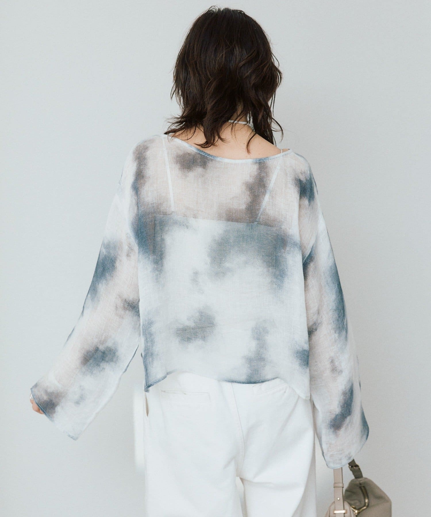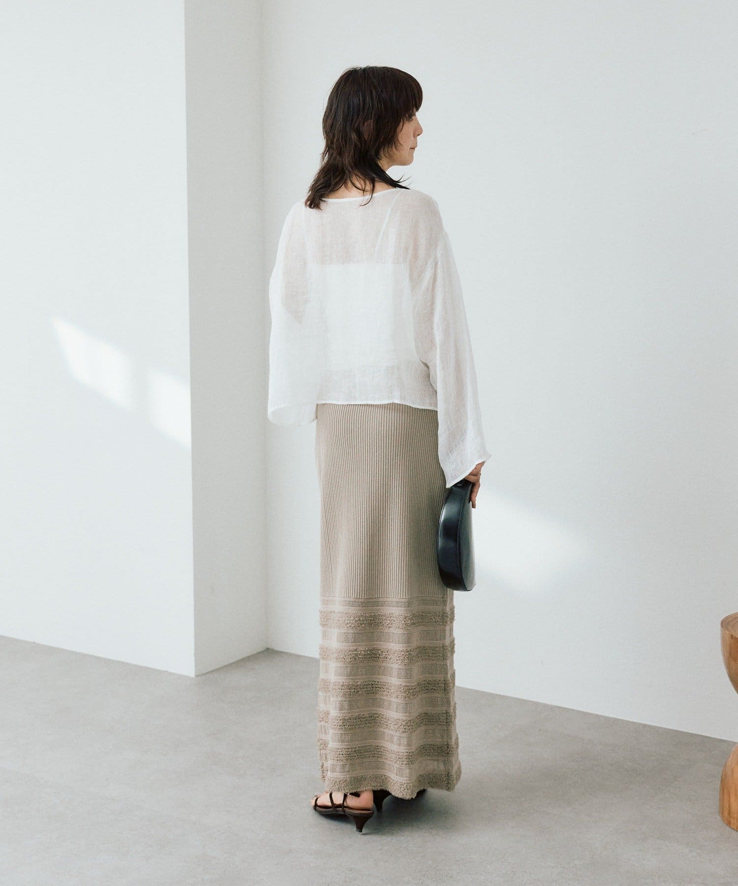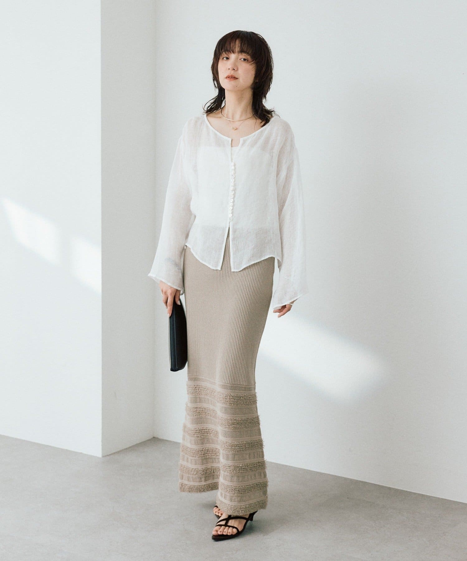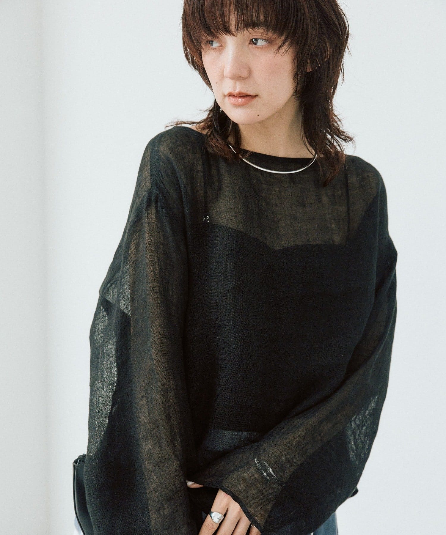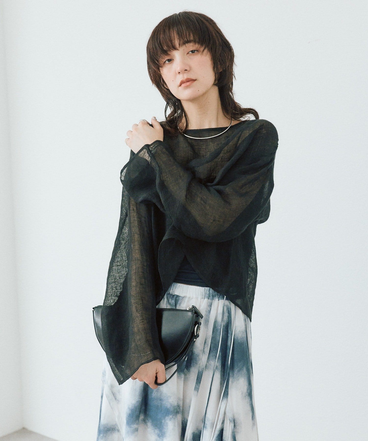 ・リネンの素材感と後ろにつけた貝ボタンのディテールがポイントのシンプルなブラウス
