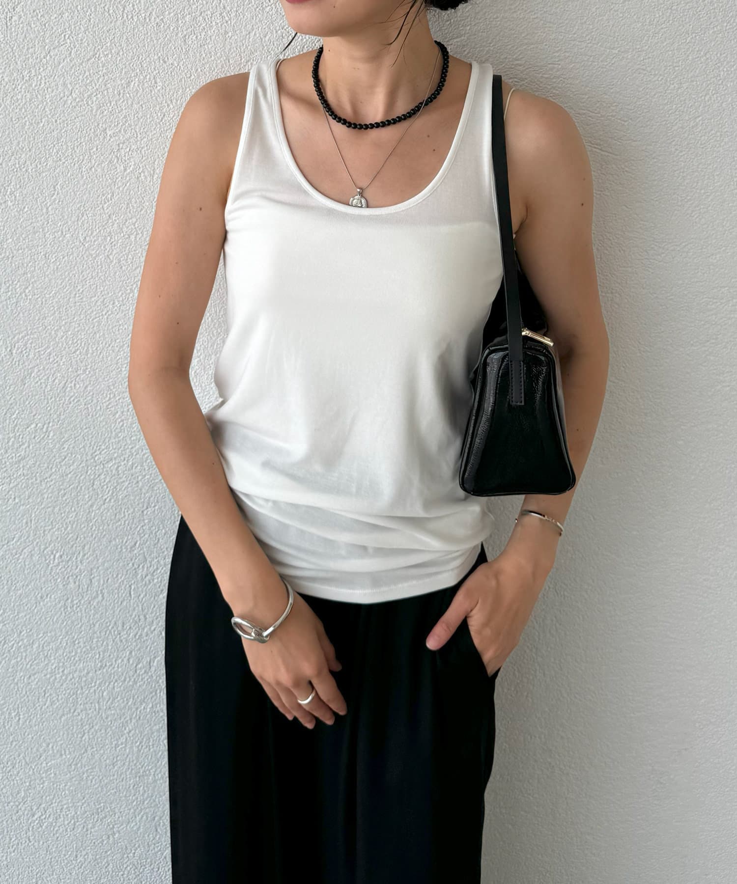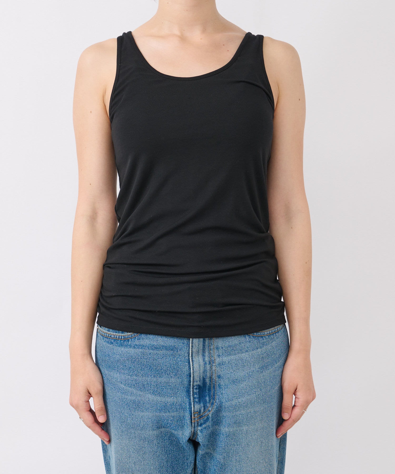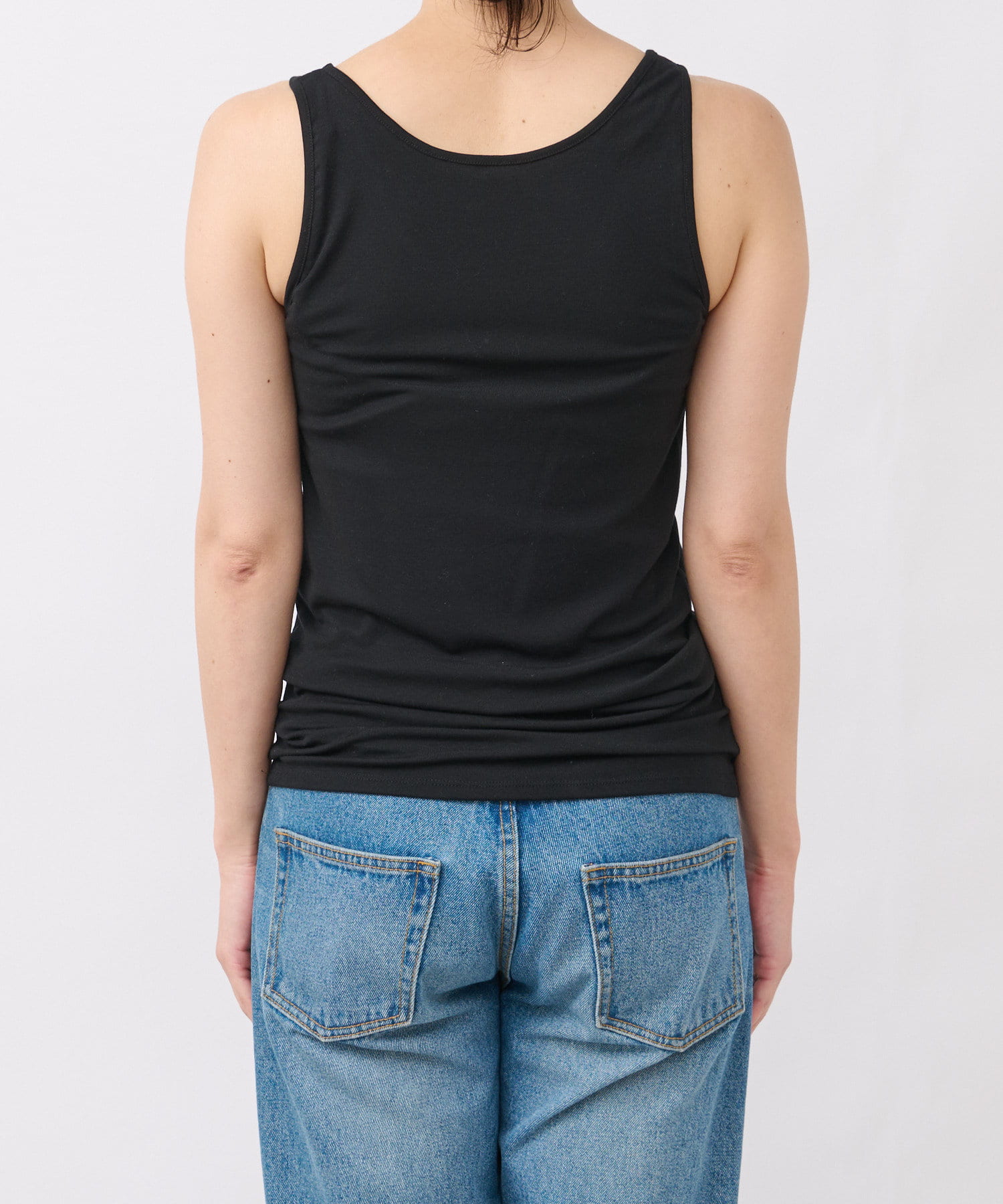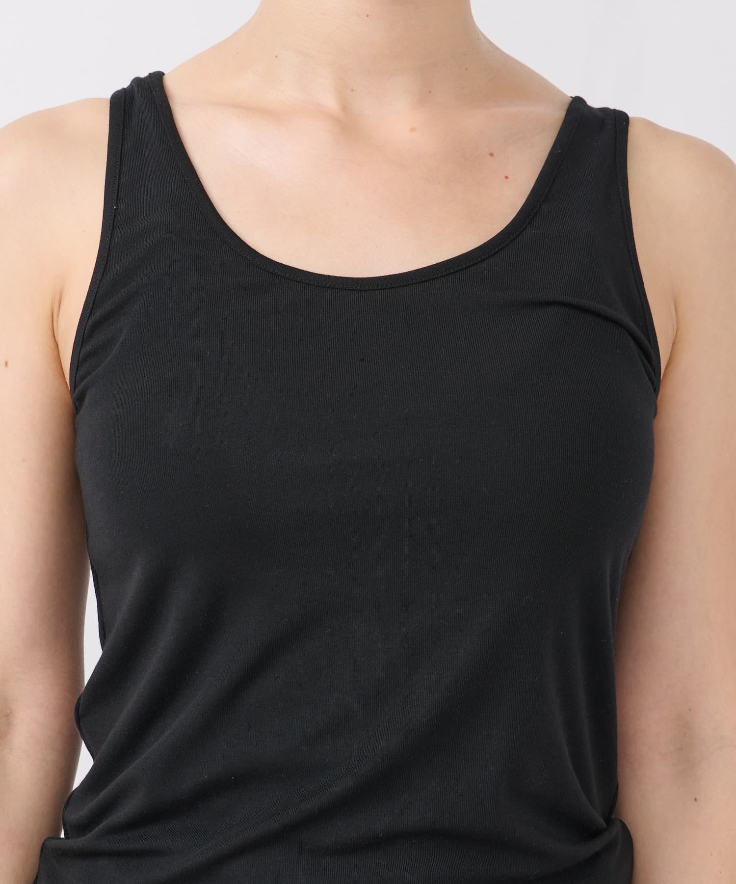 ユーカリの木を原料とした再生繊維リヨセルを使用し、柔らかくなめらかな肌触りの生地を使用したタンクトップ。