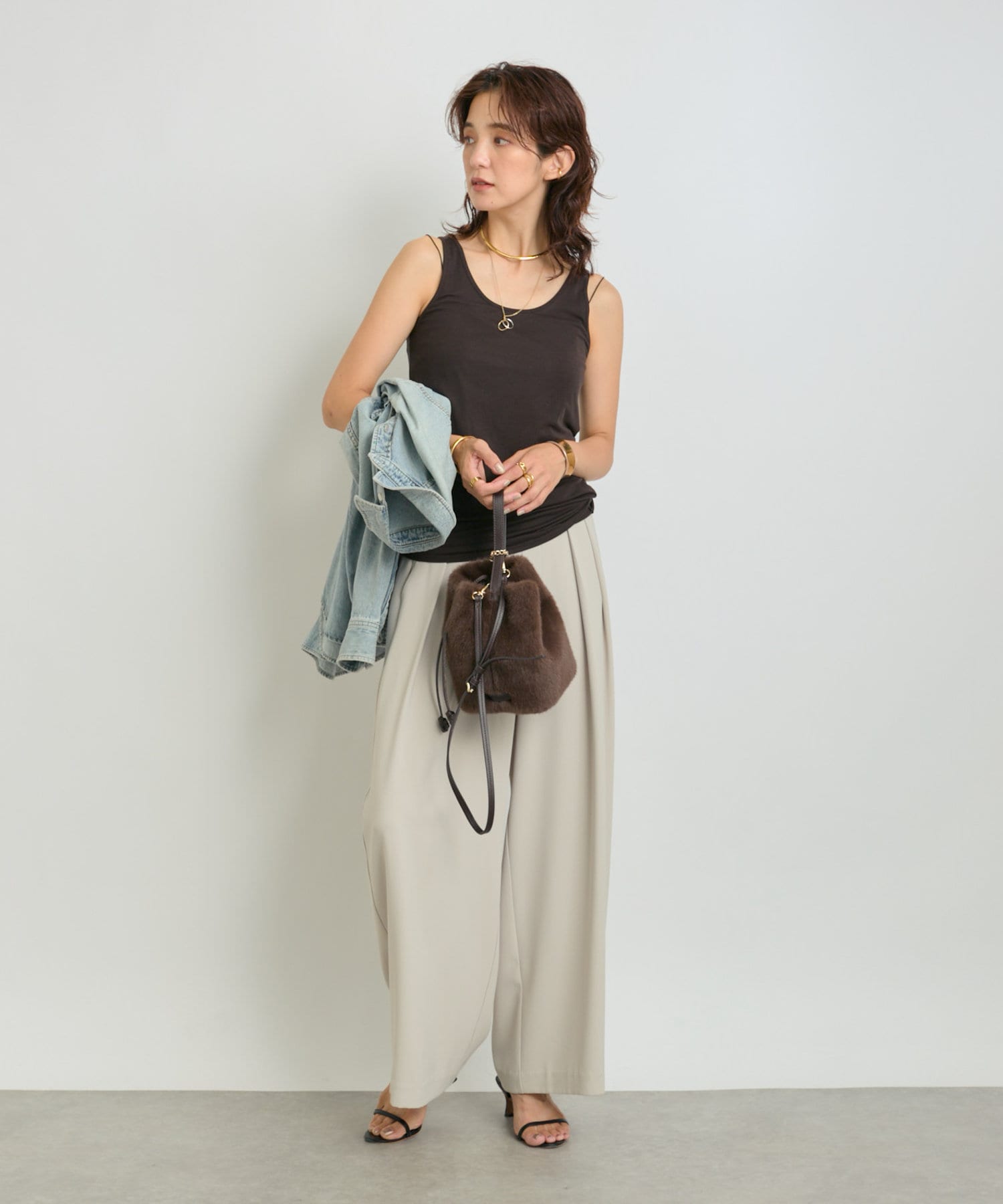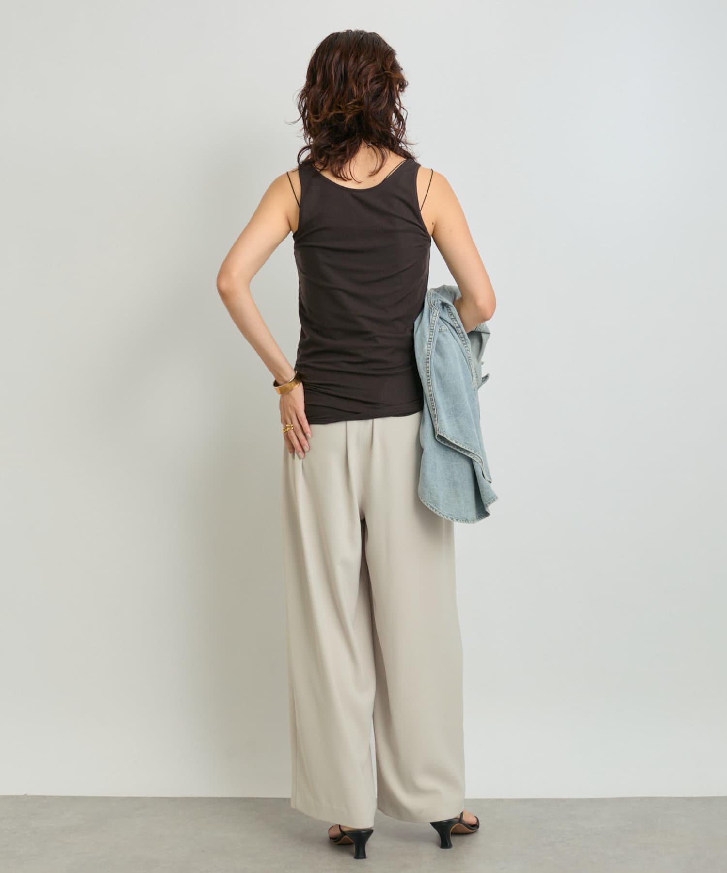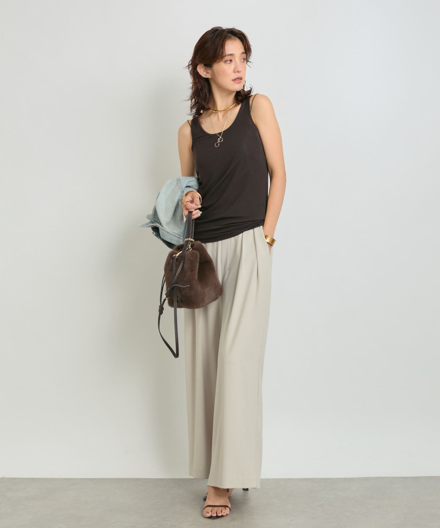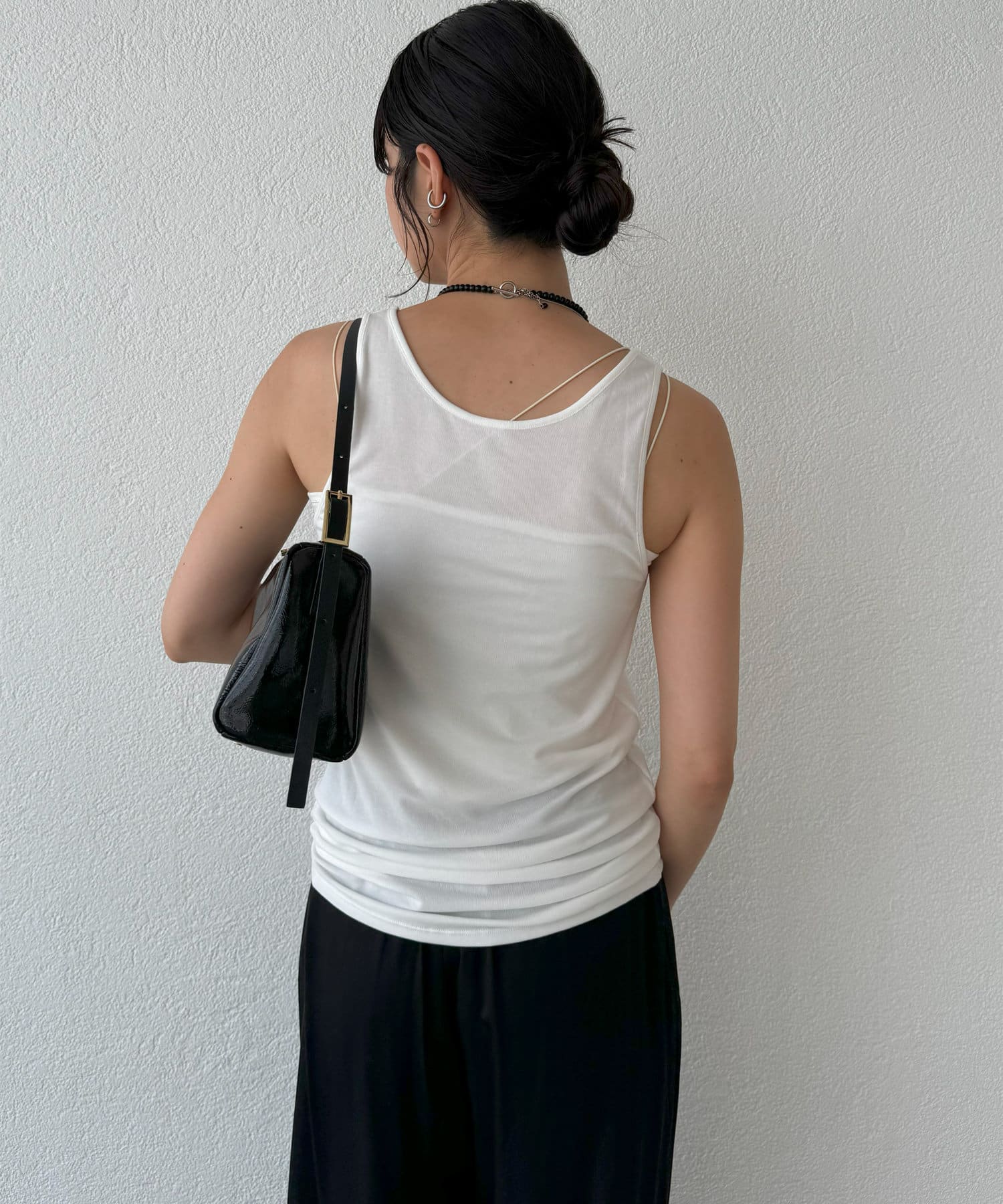 ユーカリの木を原料とした再生繊維リヨセルを使用し、柔らかくなめらかな肌触りの生地を使用したタンクトップ。