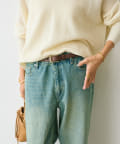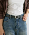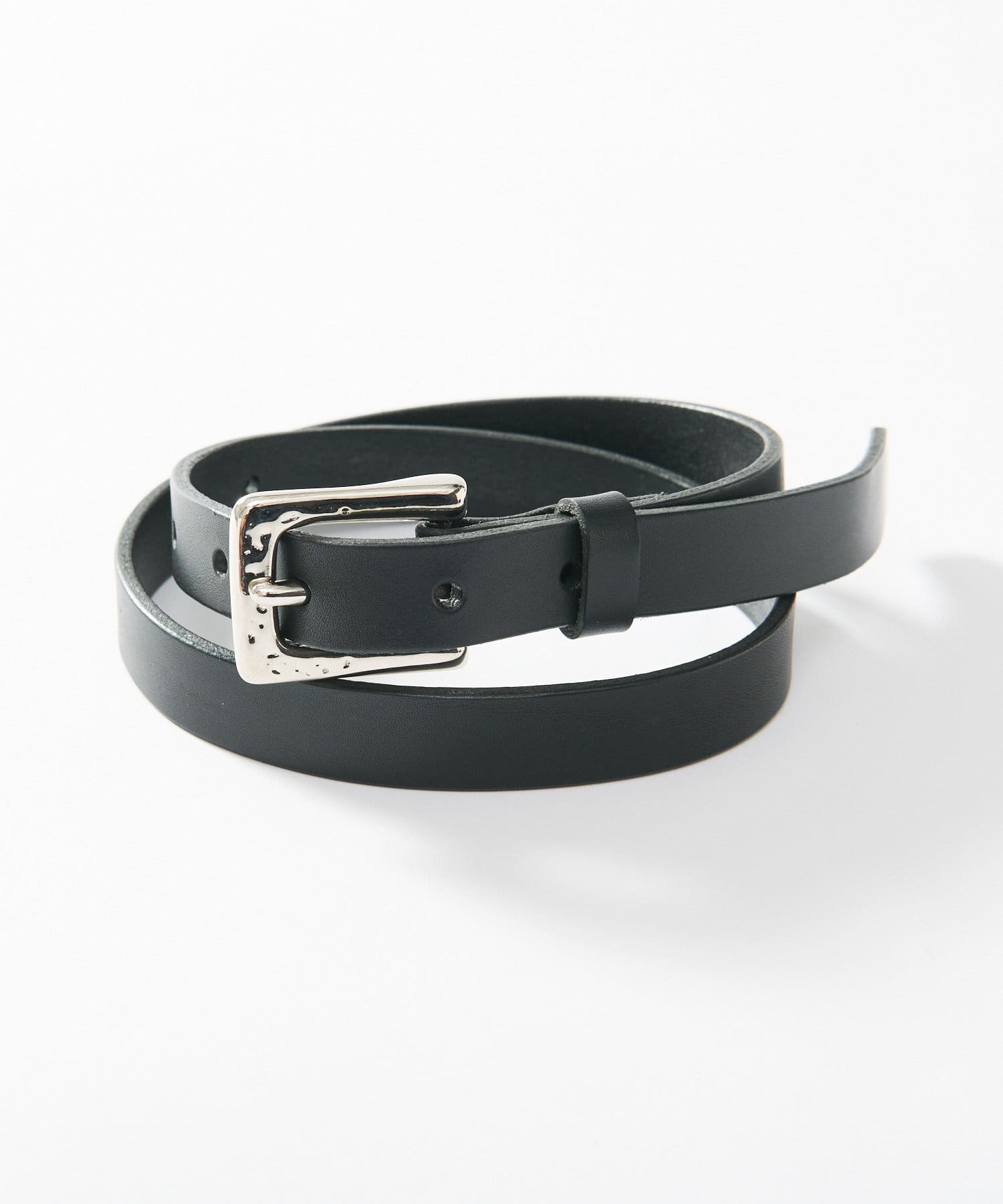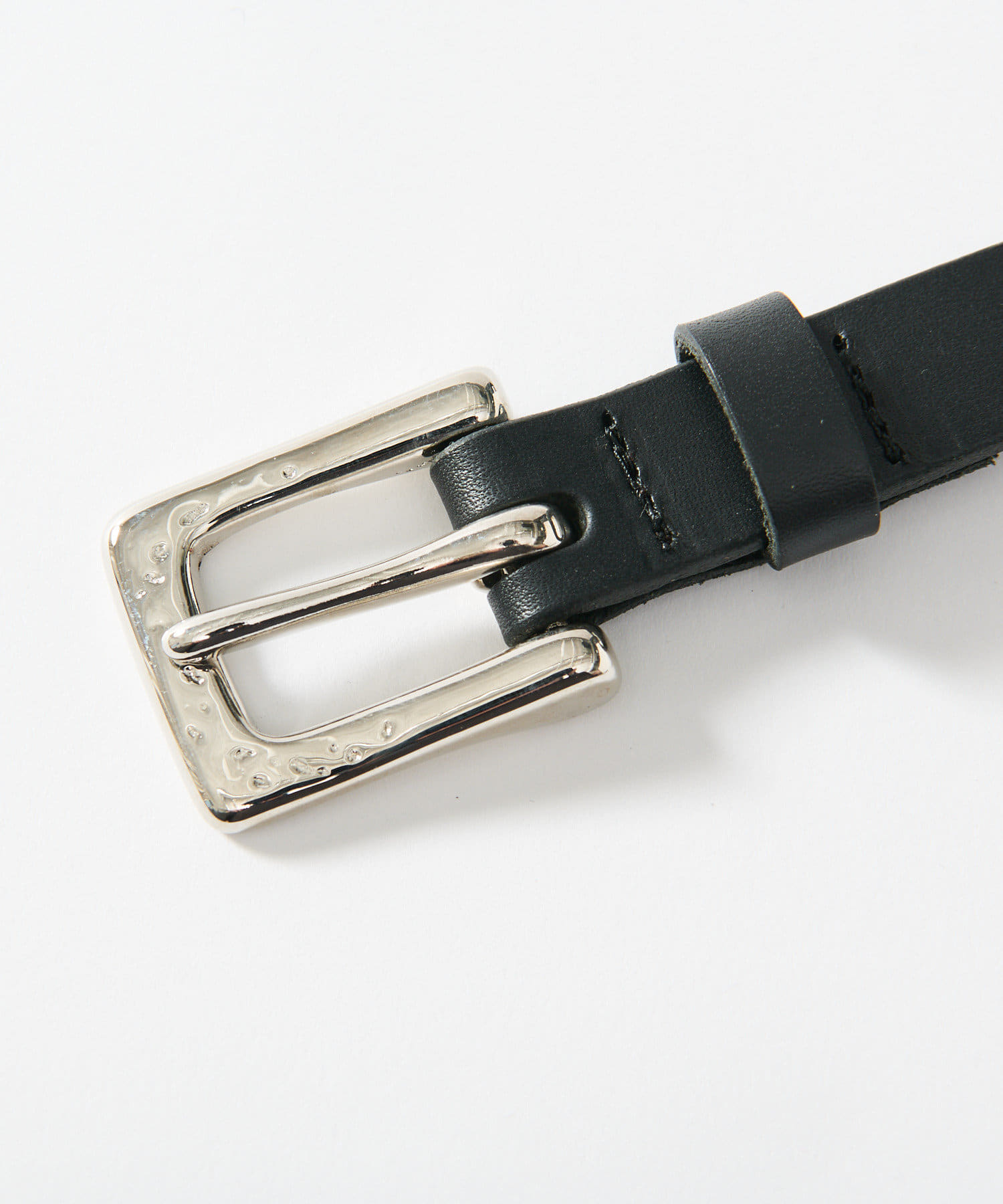 程よく存在感があるスクエアシルバーバックルがポイントのベルト。