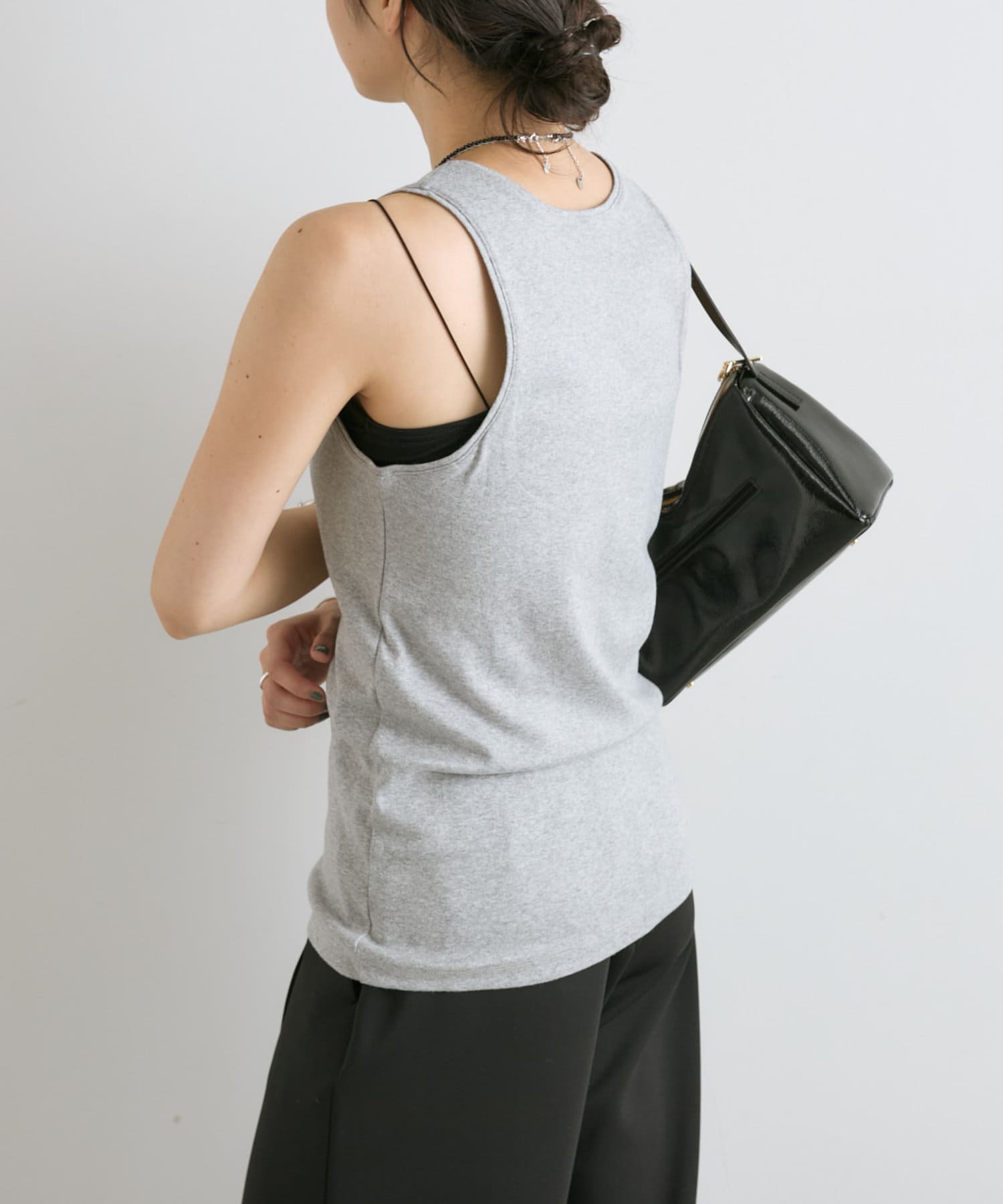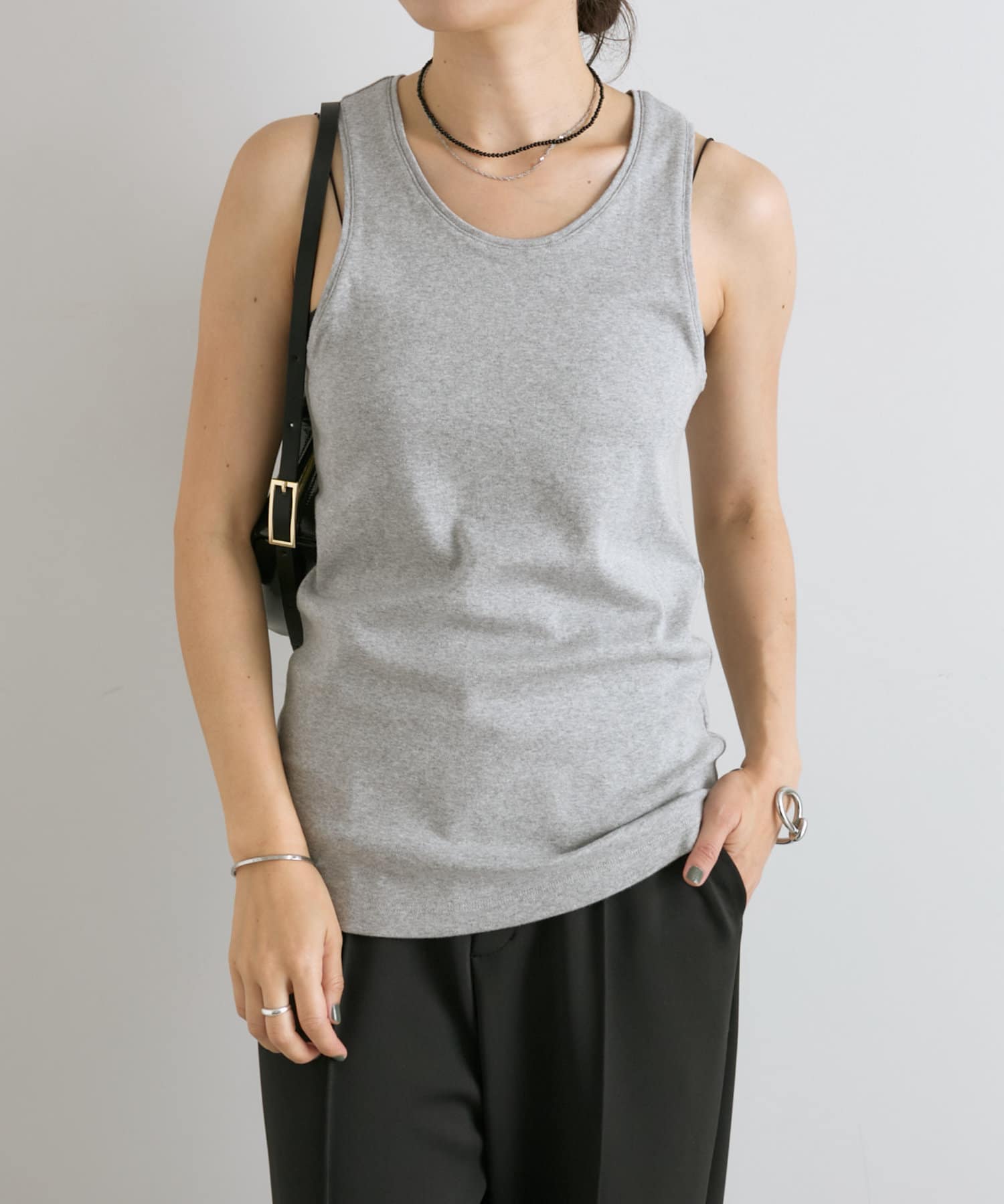 タンクトップはロンTeeとは対称的に長め丈に。窮屈感ないサイズ感ですが、すっきりとしたシルエットが◎