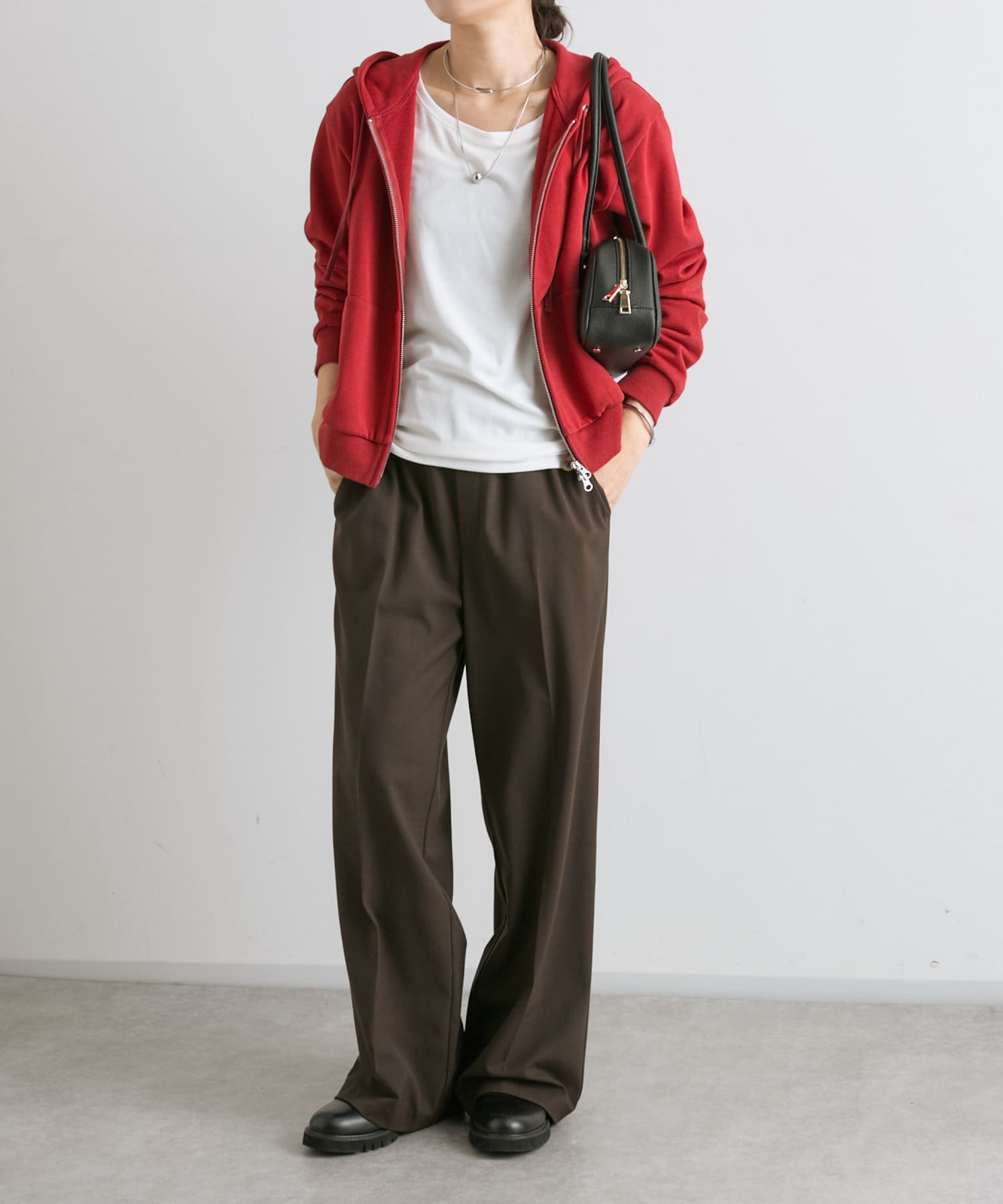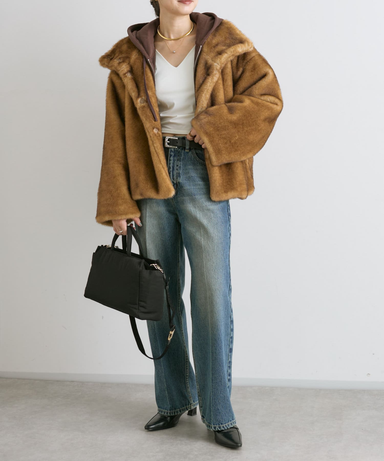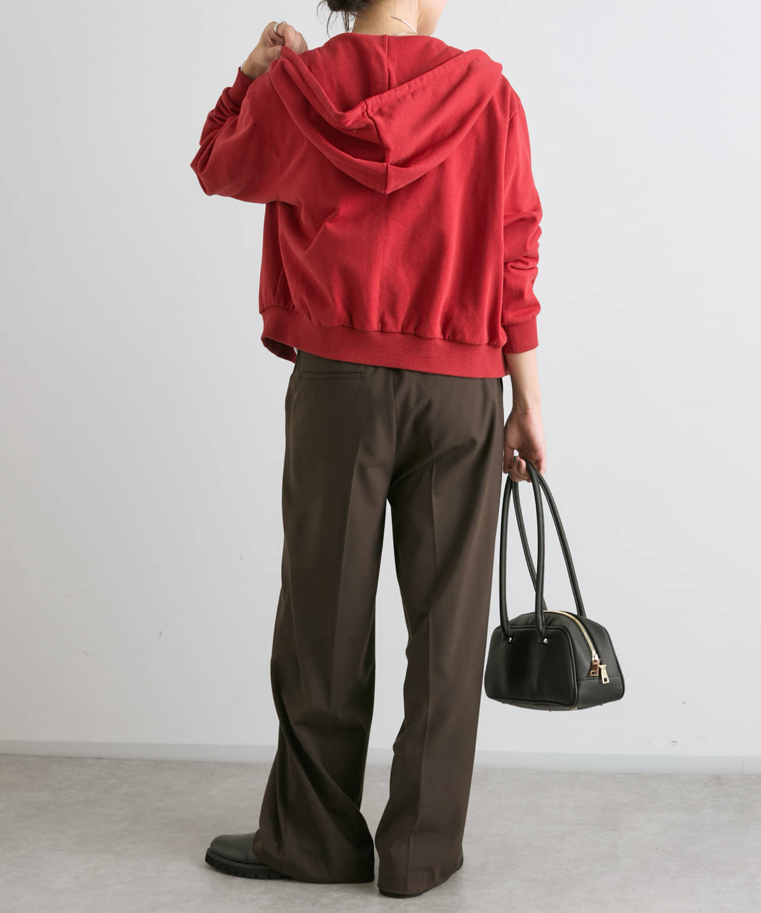 フードは大き目のサイズ感で、後ろ姿もポイントになります。