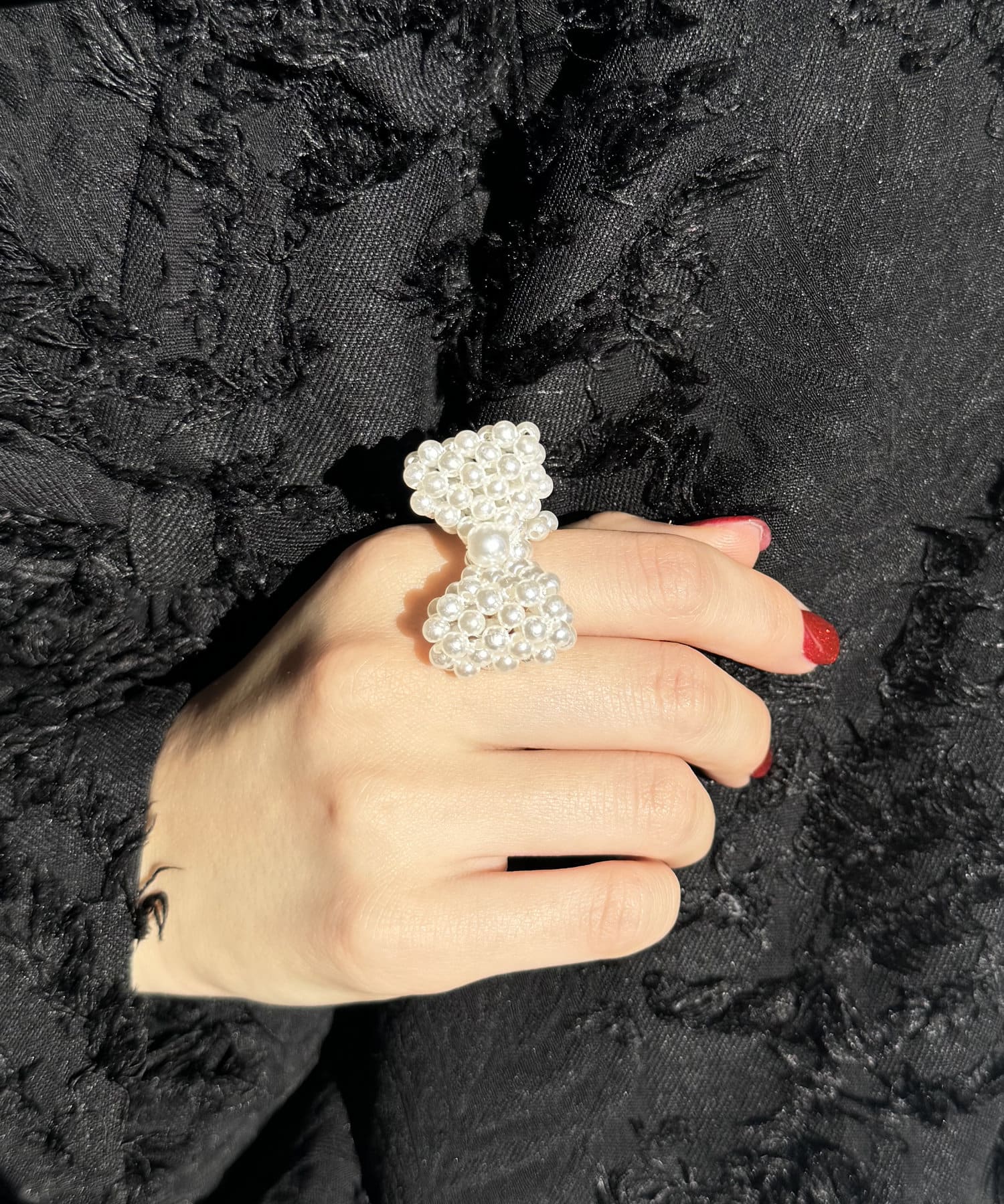 パールとリボンでガーリーだけどリングぐらい大人でもつけてもいいよね?😊