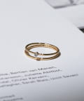 指元で繊細な輝きを放つ、2連風デザインのストーンリング。