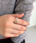 2本のラインがゆるやかに交差するデザインは、まるでリングを重ね付けしているかのよう。これひとつで手元にニュアンスと立体感が生まれます。