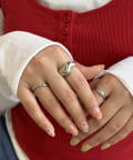 3つ全部を重ね付けしてボリューム感を楽しんだり、別々の指につけてバランスをとったり。