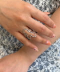 大ぶりながらも抜け感があり、指をきれいに見せてくれます。