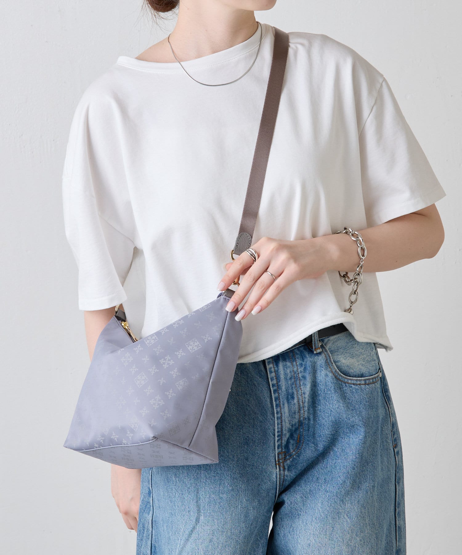 肩掛けでも斜め掛けでも持ちやすく、気分やスタイルに合わせて持ち方を変えられます。