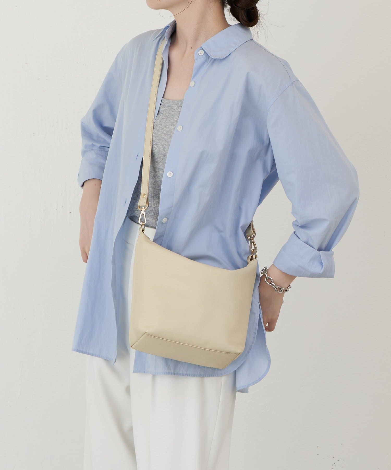 ナイロンverも購入し仕様や使い勝手の良さが気に入り、レザーのこちらも購入しました。届いて開封し触った感触は間違ってナイロンの商品が届いたかと間違う程の滑らかで柔らかいものでした。斜めがけや肩がけもでき便利ですが、最近は手持ちで使用するのが気に入っているので、手持ち使用を楽しみたいと思います。本当に素敵なバッグです。