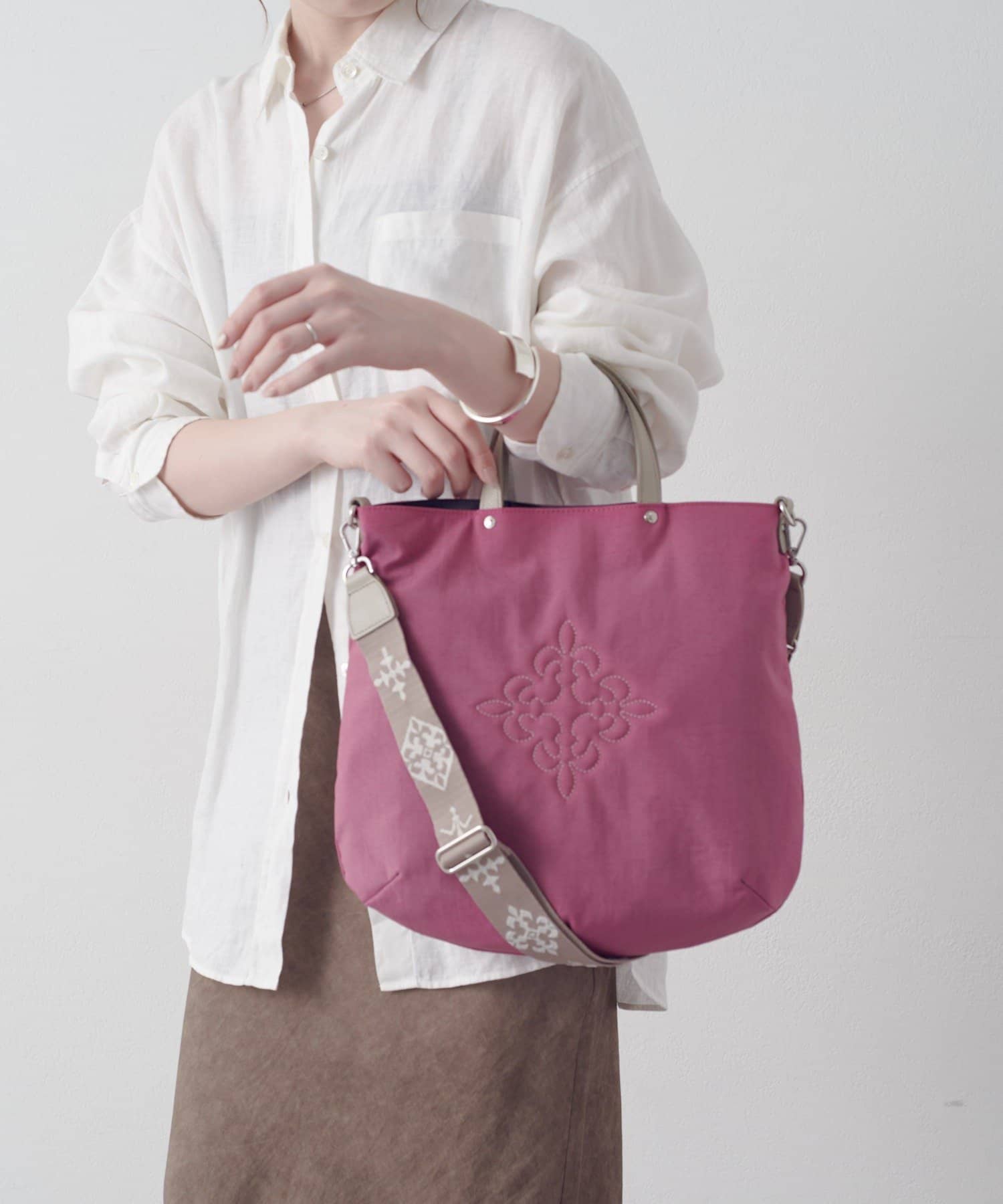 ハンドルとショルダーの2WAY仕様で、シーンに応じた使い分けが可能です。