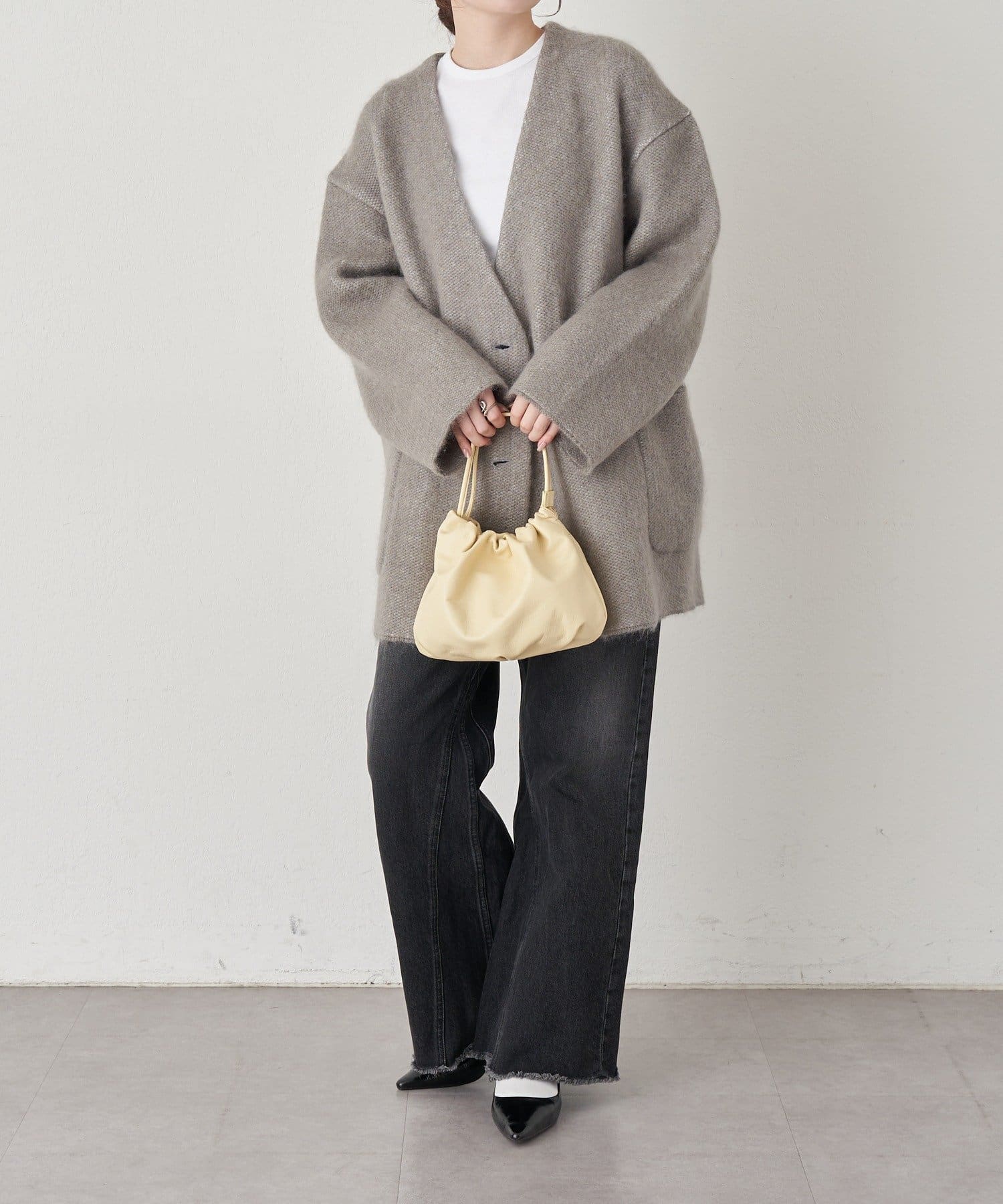 購入場所:パルクローゼット最後まで黒とグレージュで迷って、グレージュにしました。秋冬はダークカラーを着がちなので、グレージュがポイントになって結果、大正解でした!