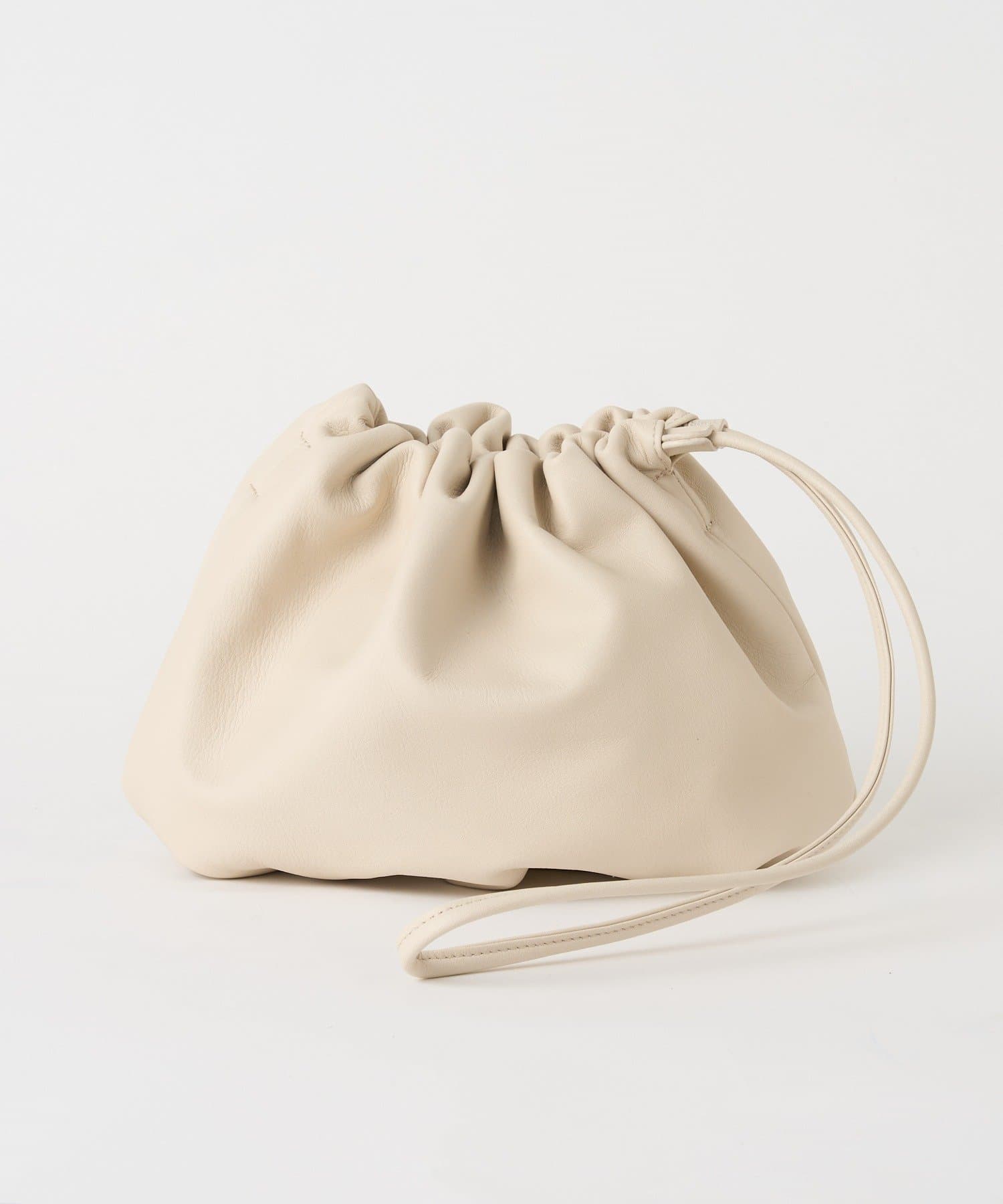 購入場所:パルクローゼット最初ブラックを予約したのですが、インスタライブなどをみているうちにグレージュにも惹かれ色違いで購入しました。グレージュ、巾着を絞ってくしゃっとさせるととてもかわいいです、思い切って色違い購入してよかったです!使っていくうちに柔らかくなって馴染んでいくのが楽しみです。