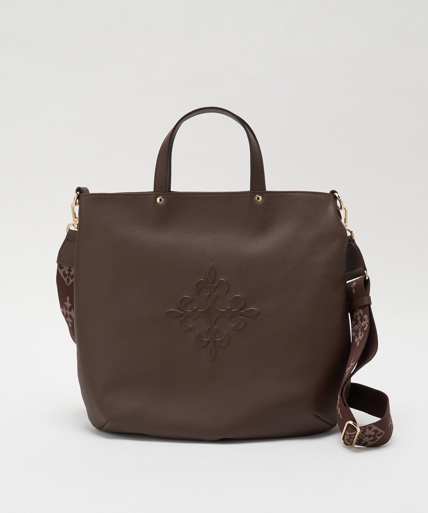 ・シンプルながらもモチーフのエンボスやショルダーストラップで上品な華やかさをプラス。