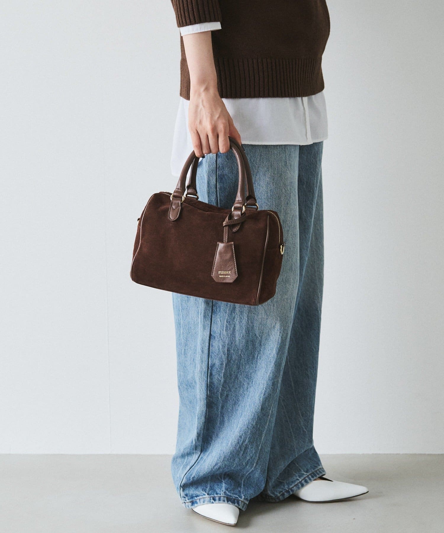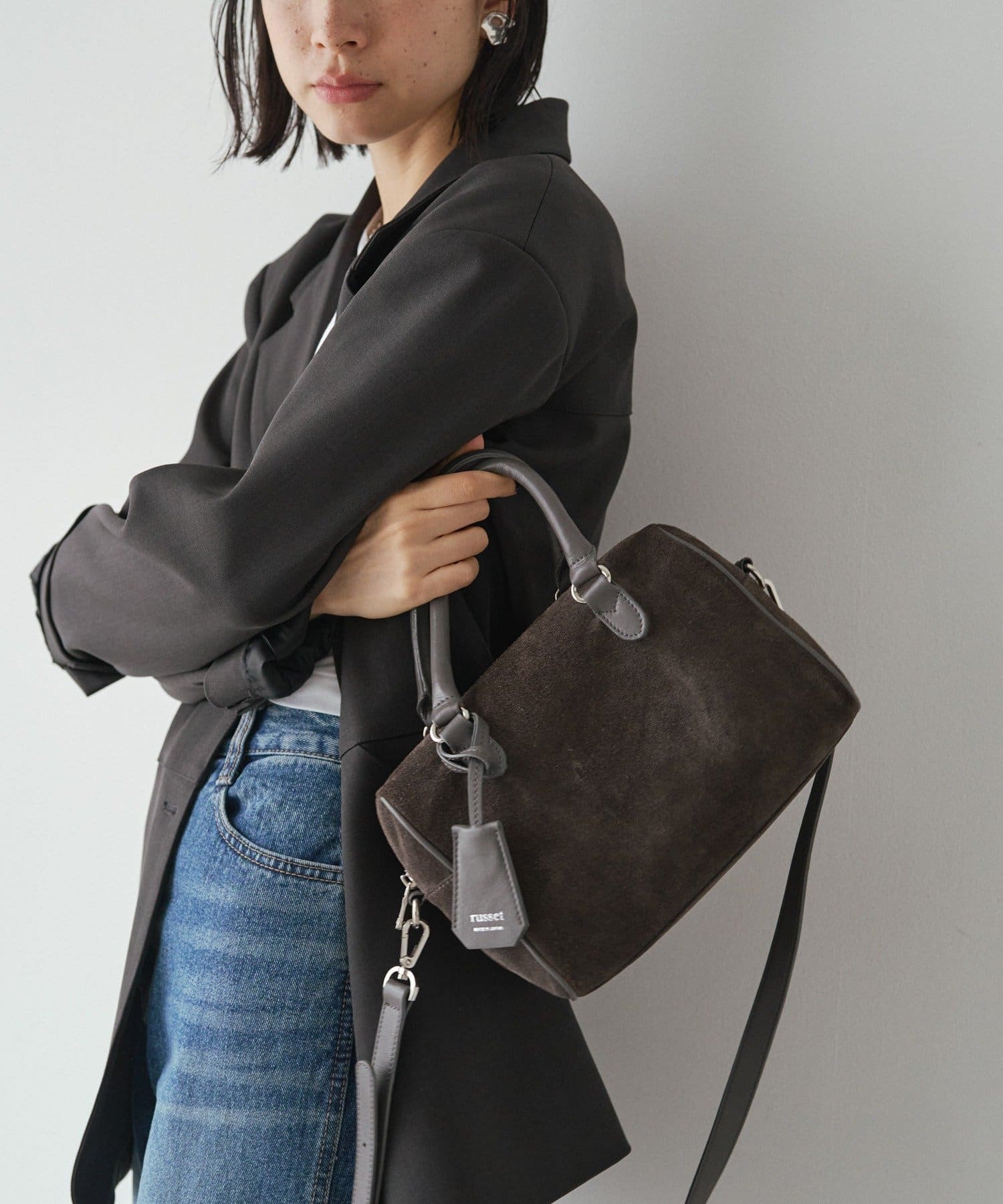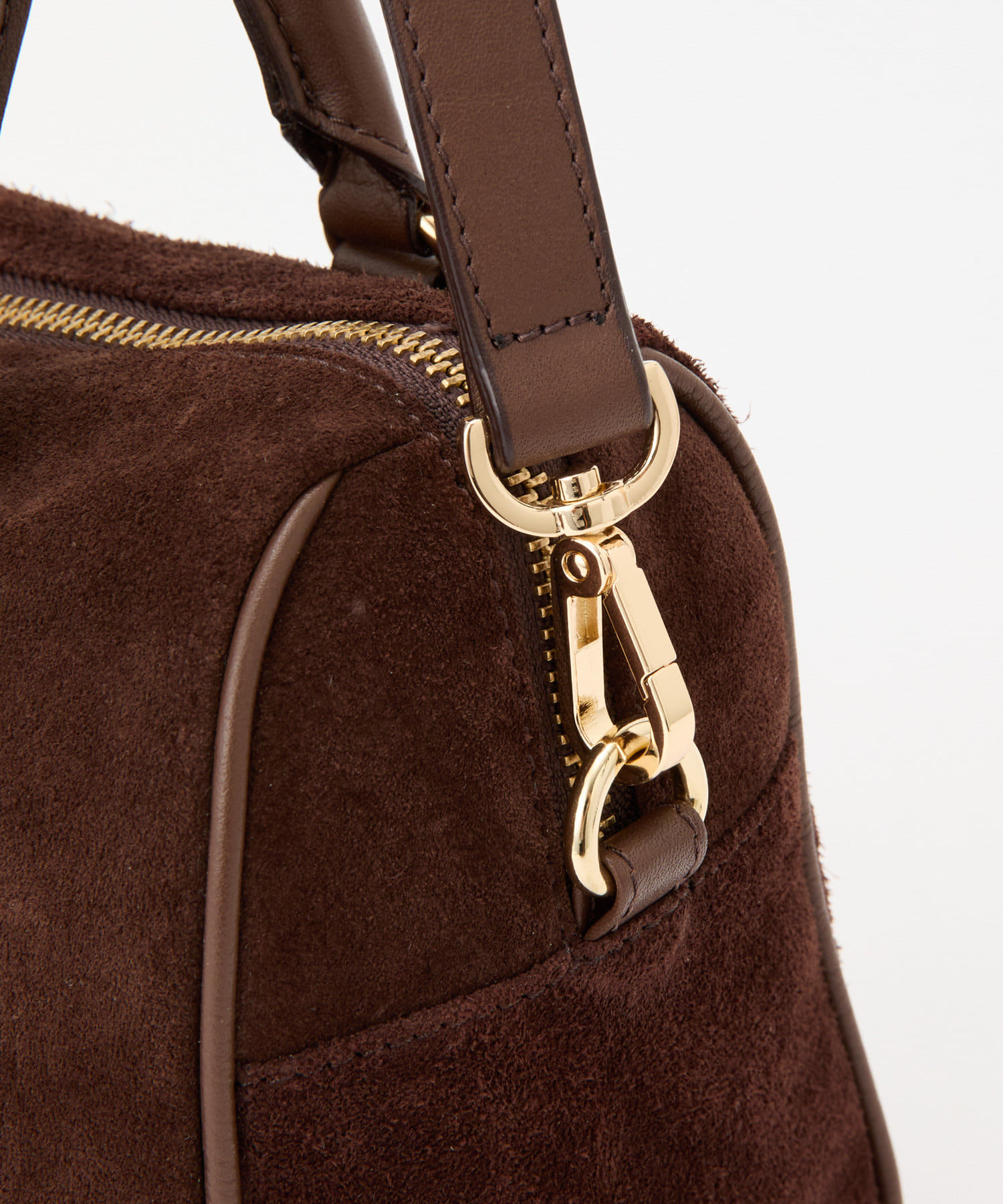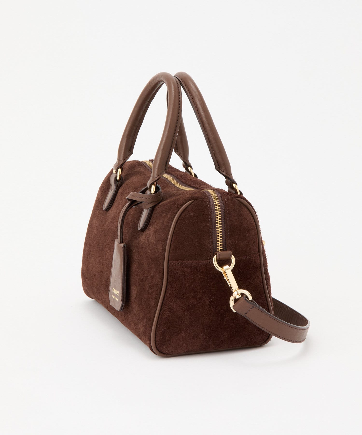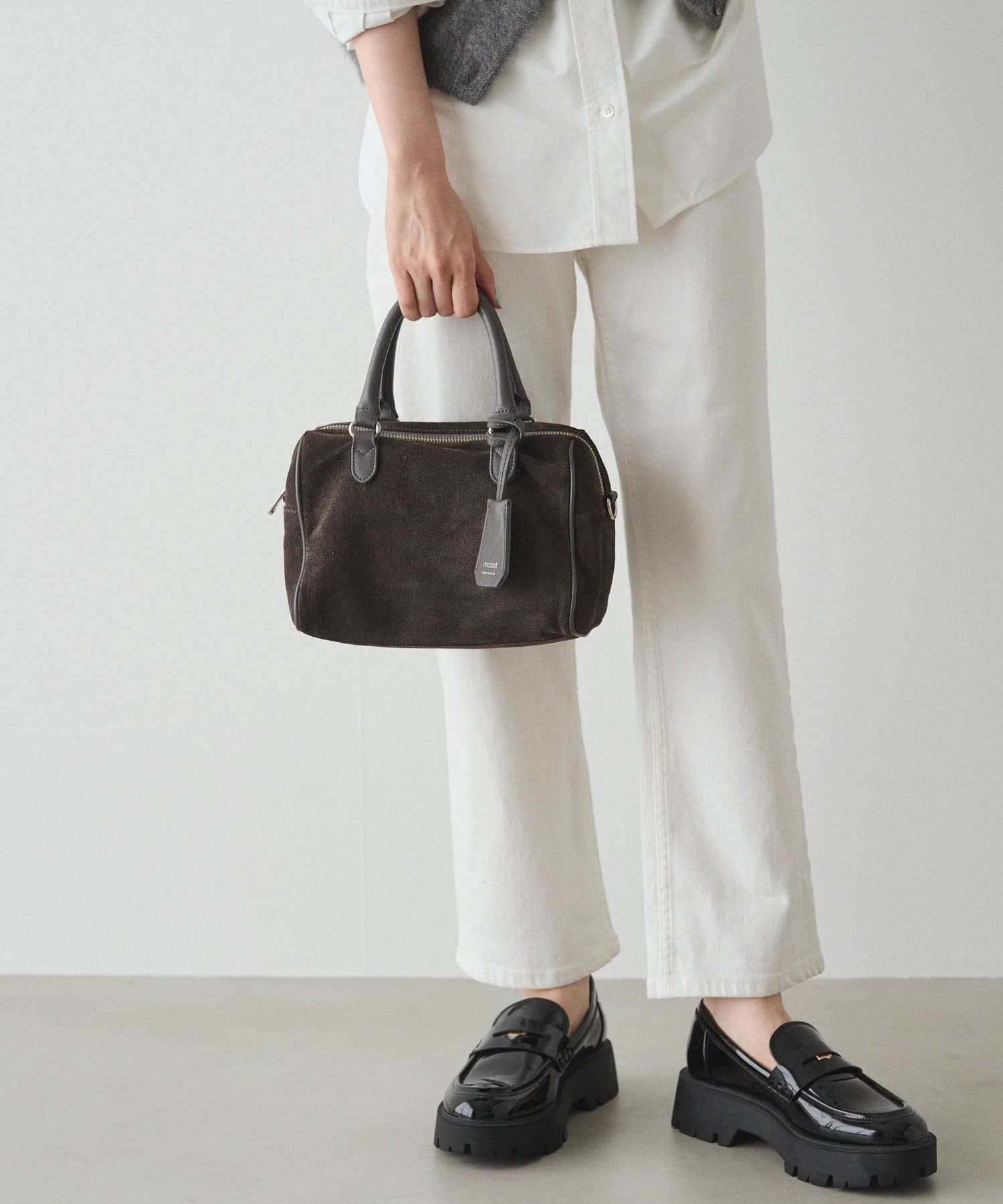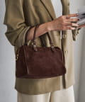 クラシカルなフォルムとスエードの質感が、上品さとモード感を両立する2WAYミニボストン。