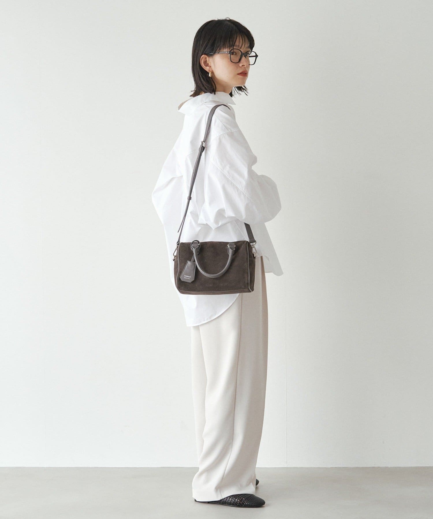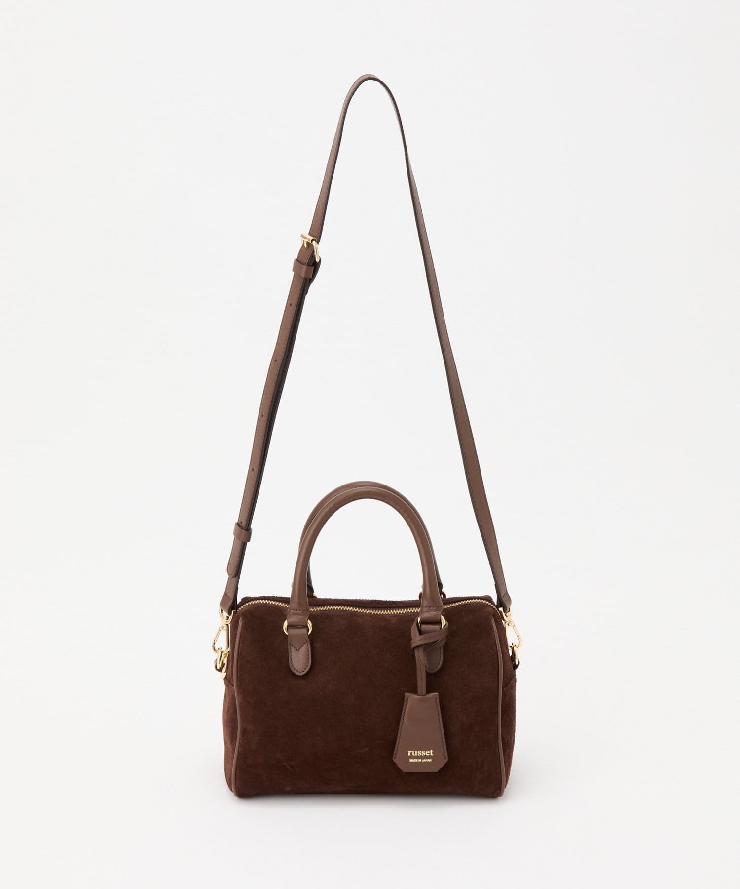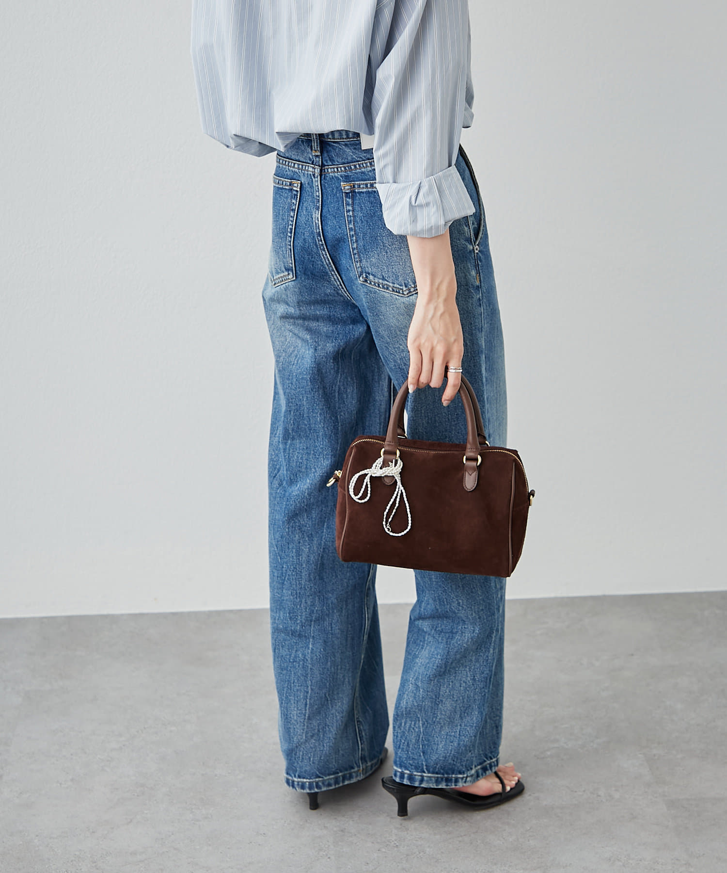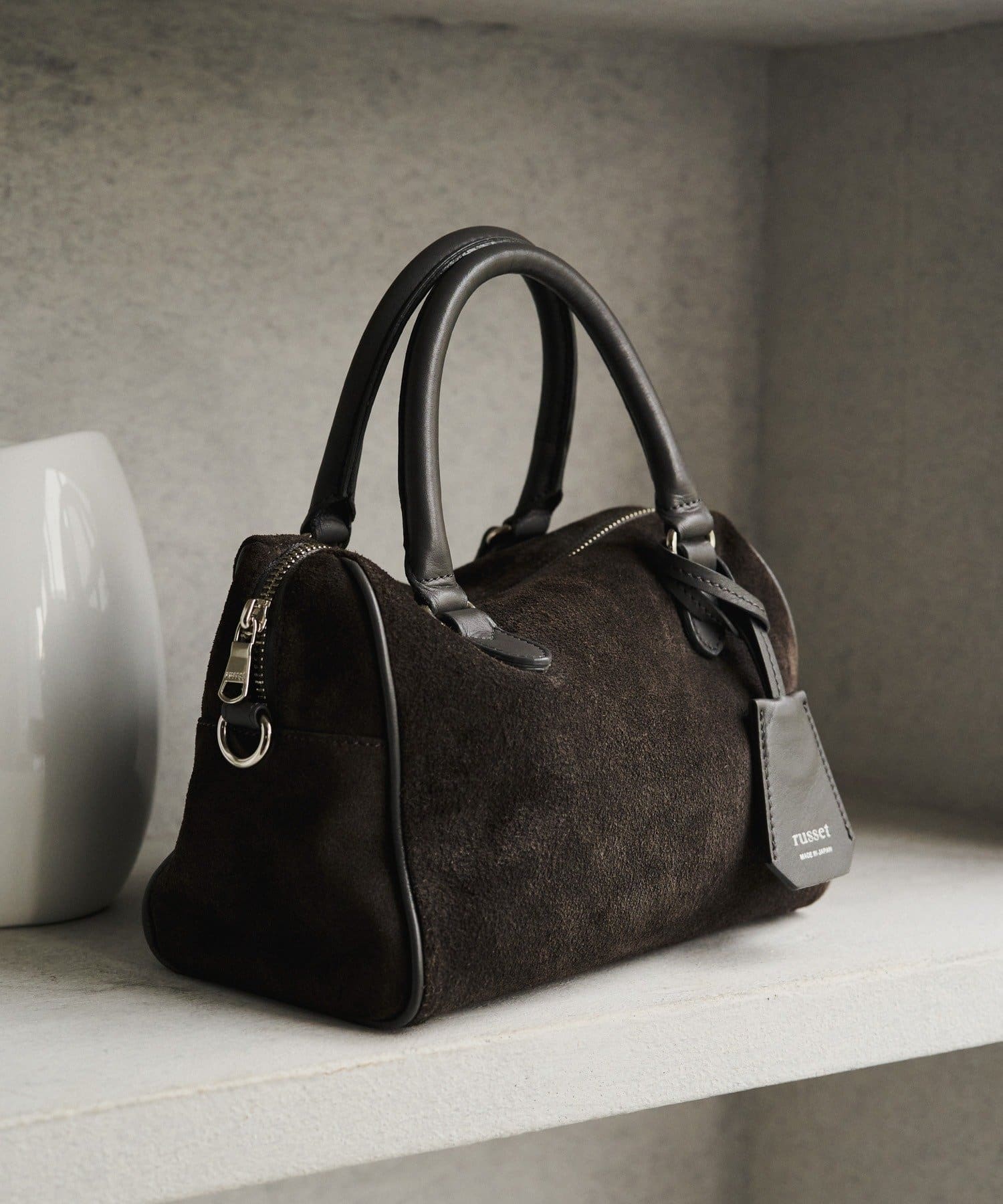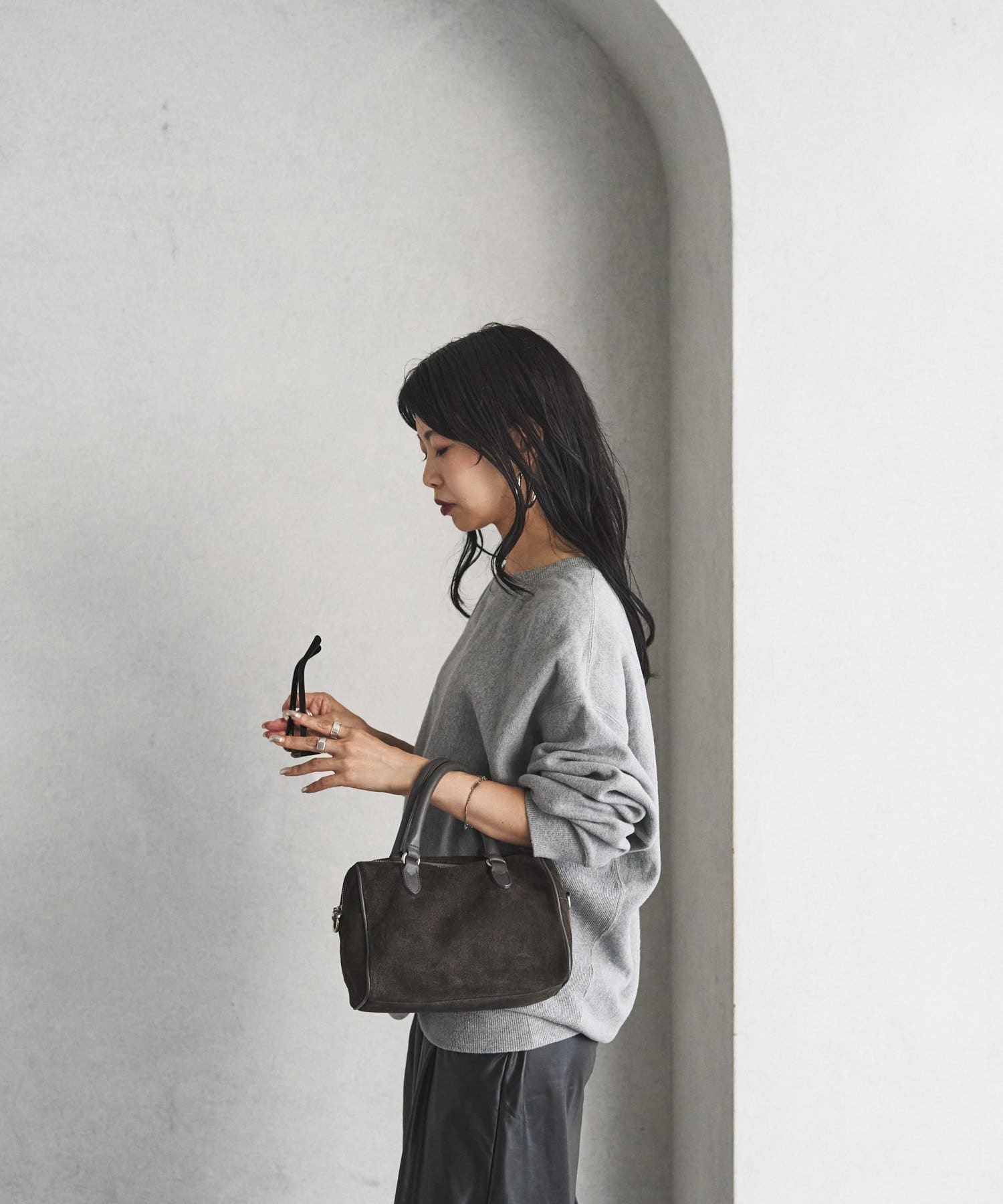 クラシカルなフォルムとスエードの質感が、上品さとモード感を両立する2WAYミニボストン。