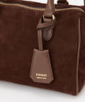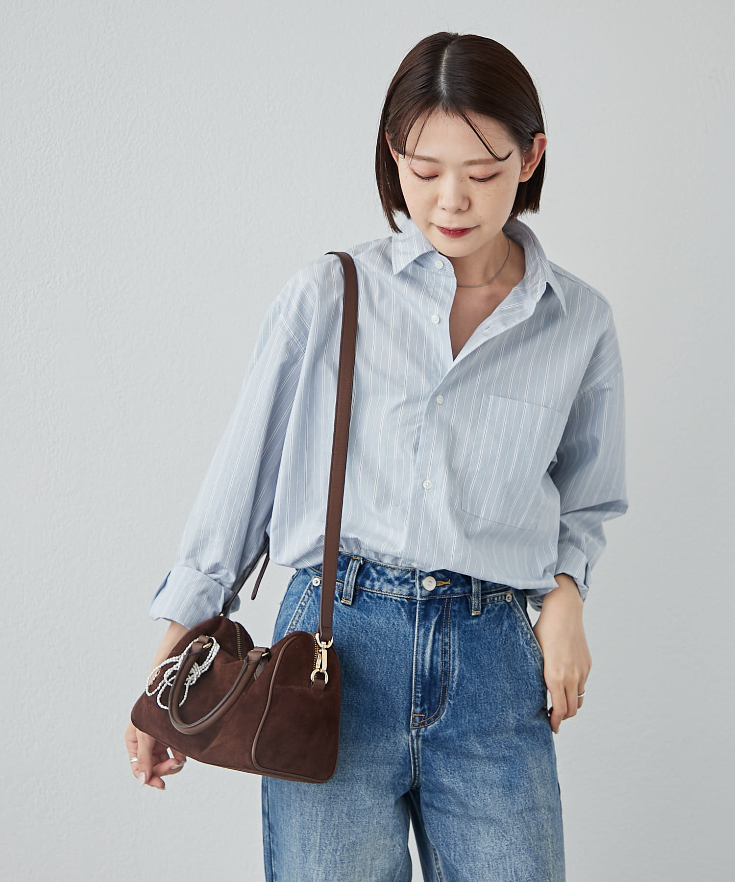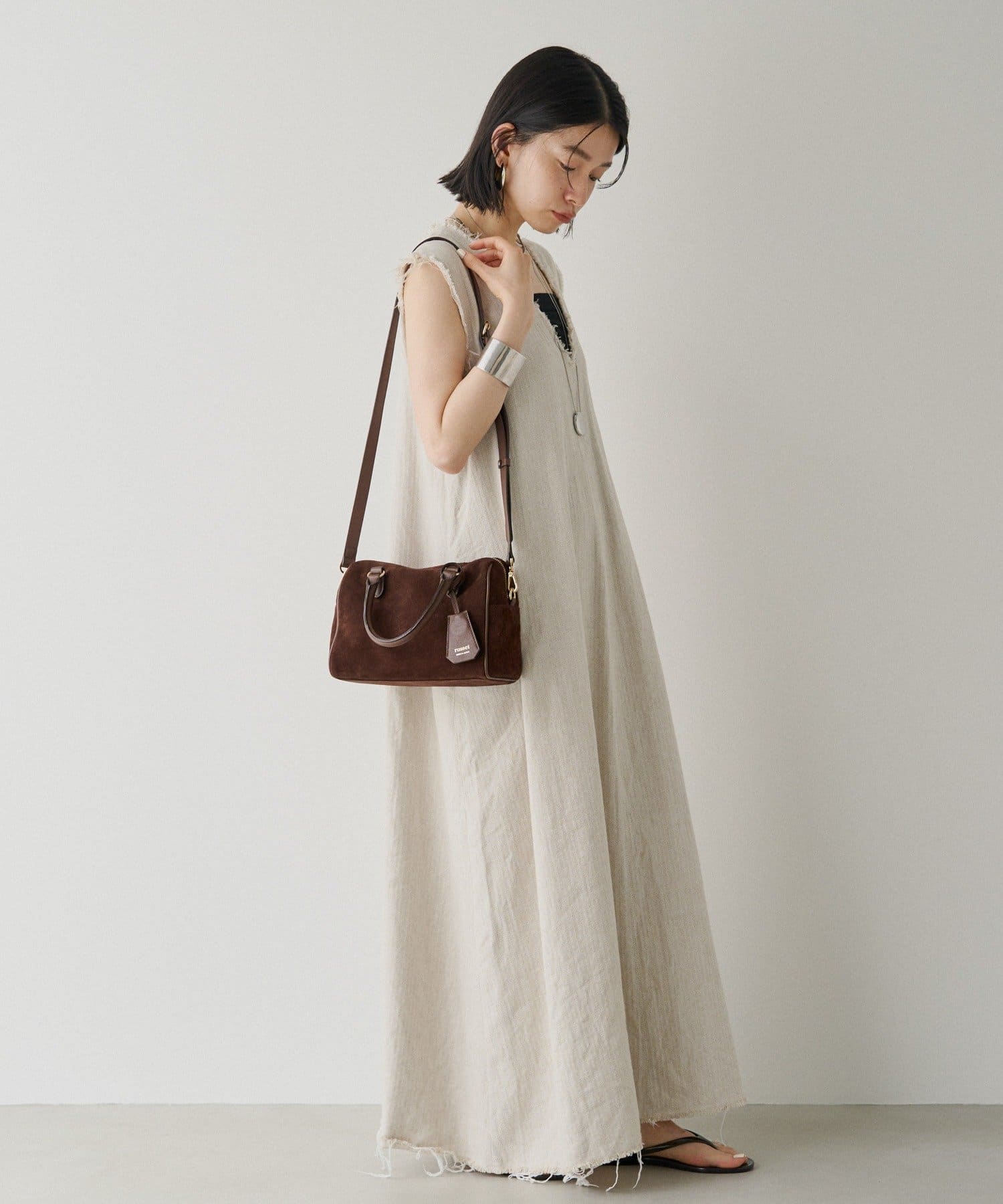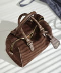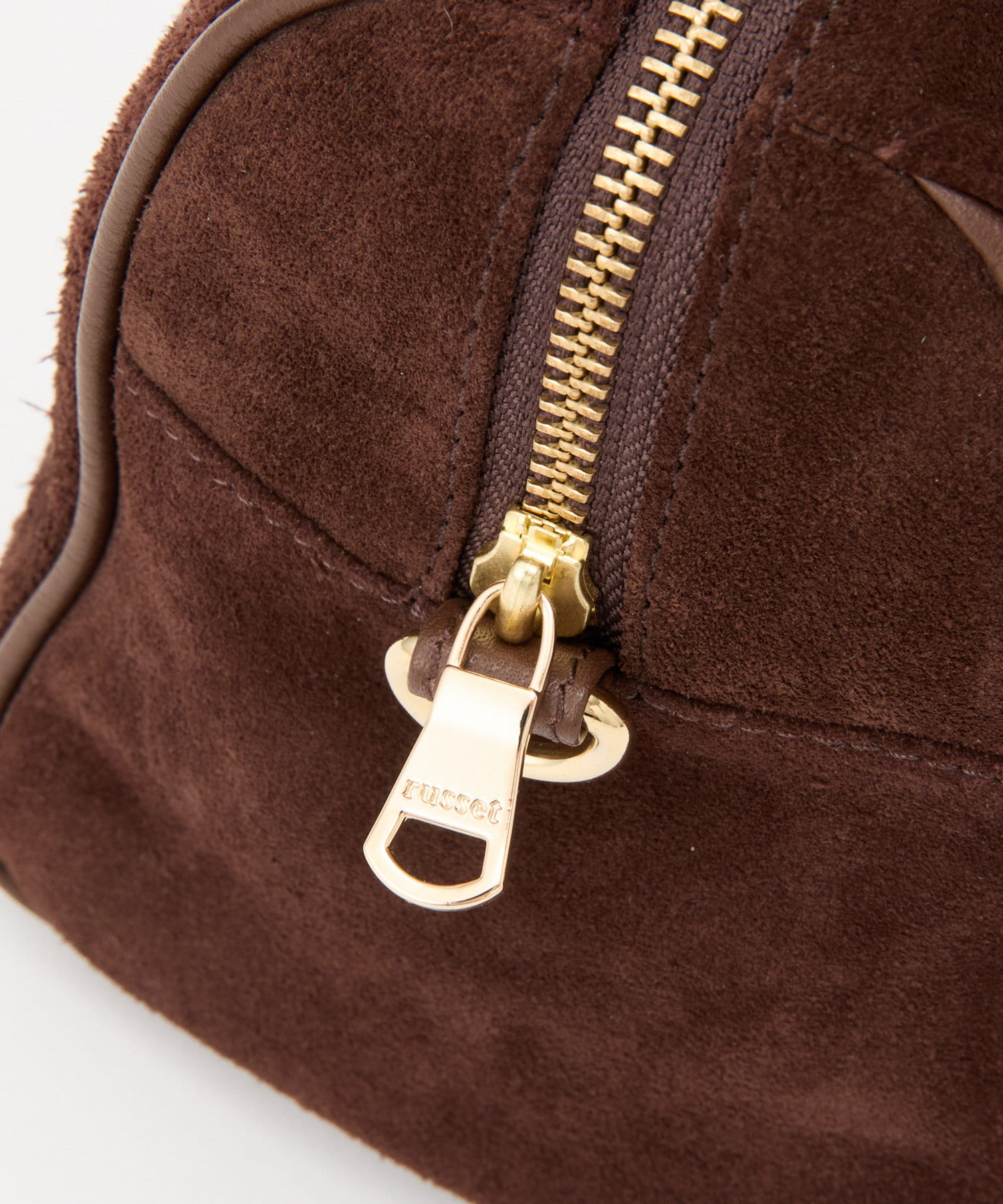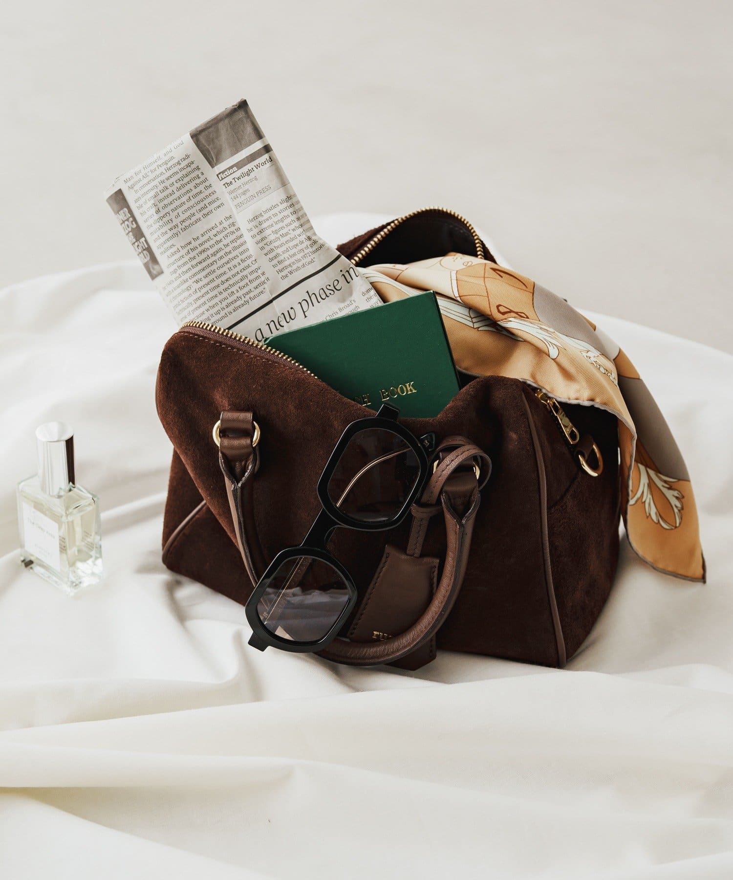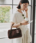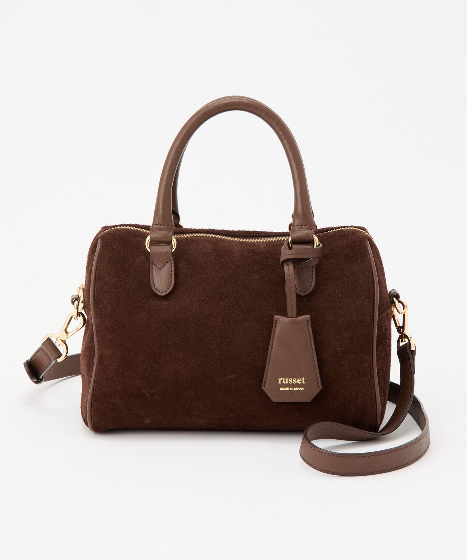 クラシカルなフォルムとスエードの質感が、上品さとモード感を両立する2WAYミニボストン。