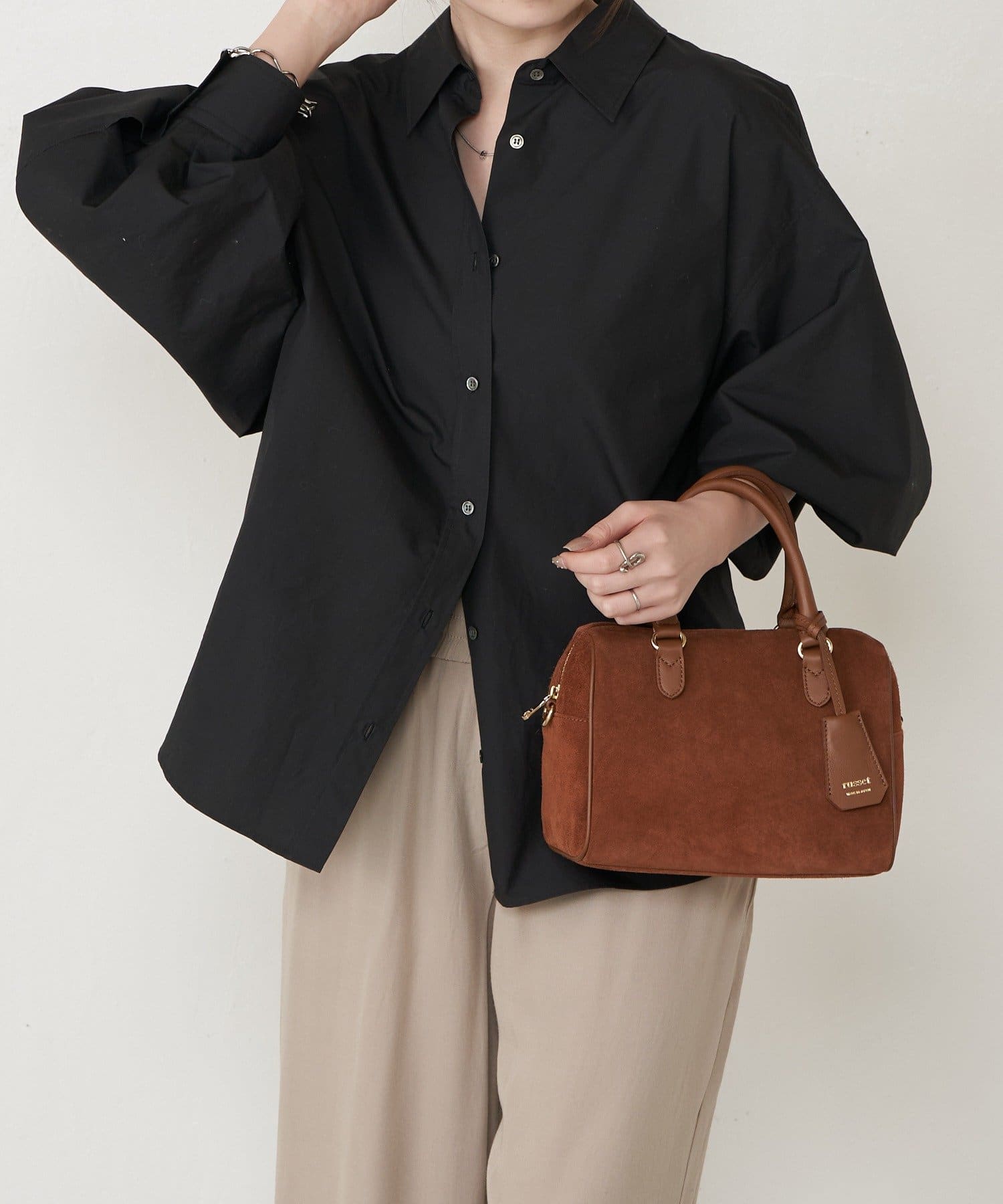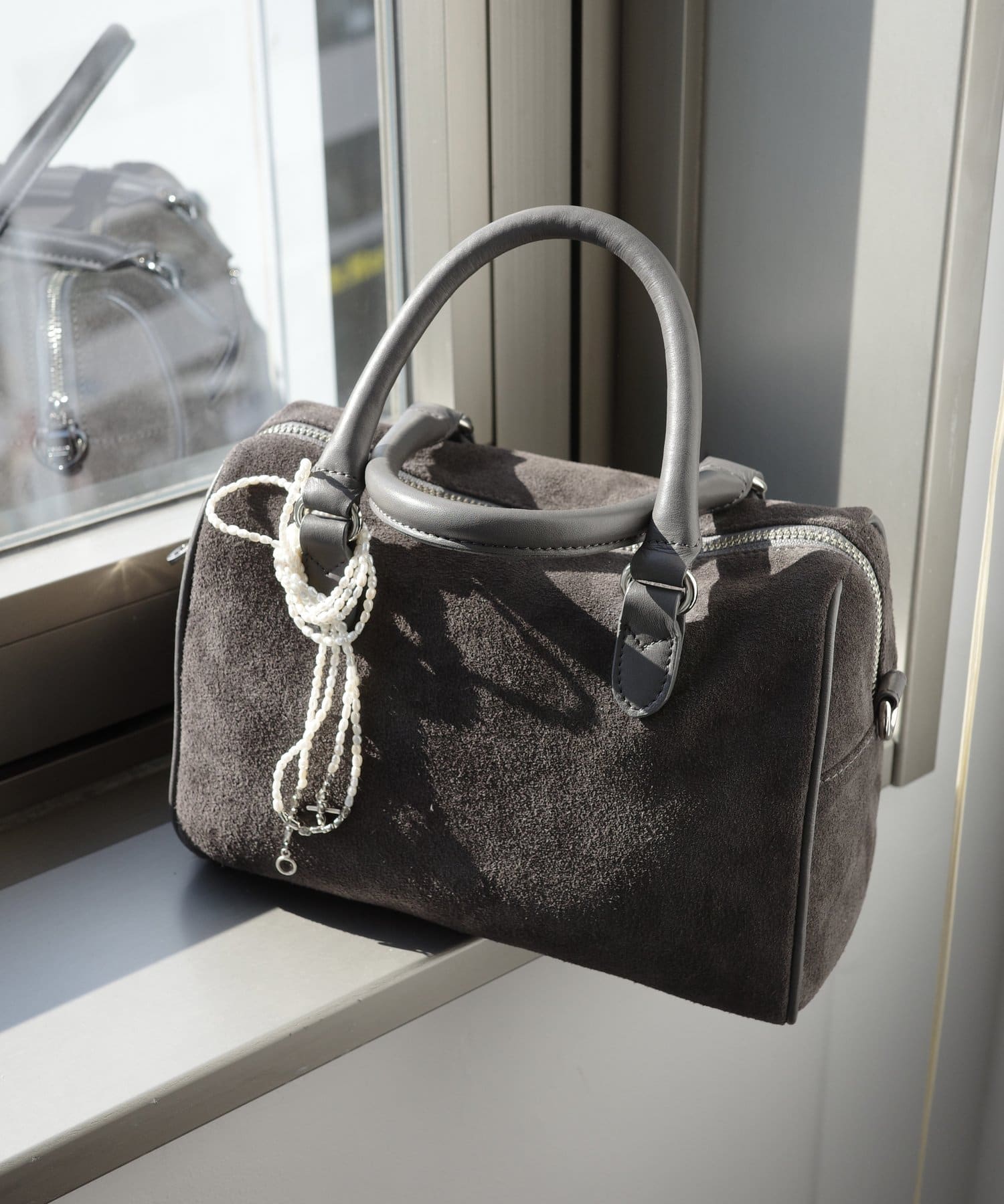 クラシカルなフォルムとスエードの質感が、上品さとモード感を両立する2WAYミニボストン。