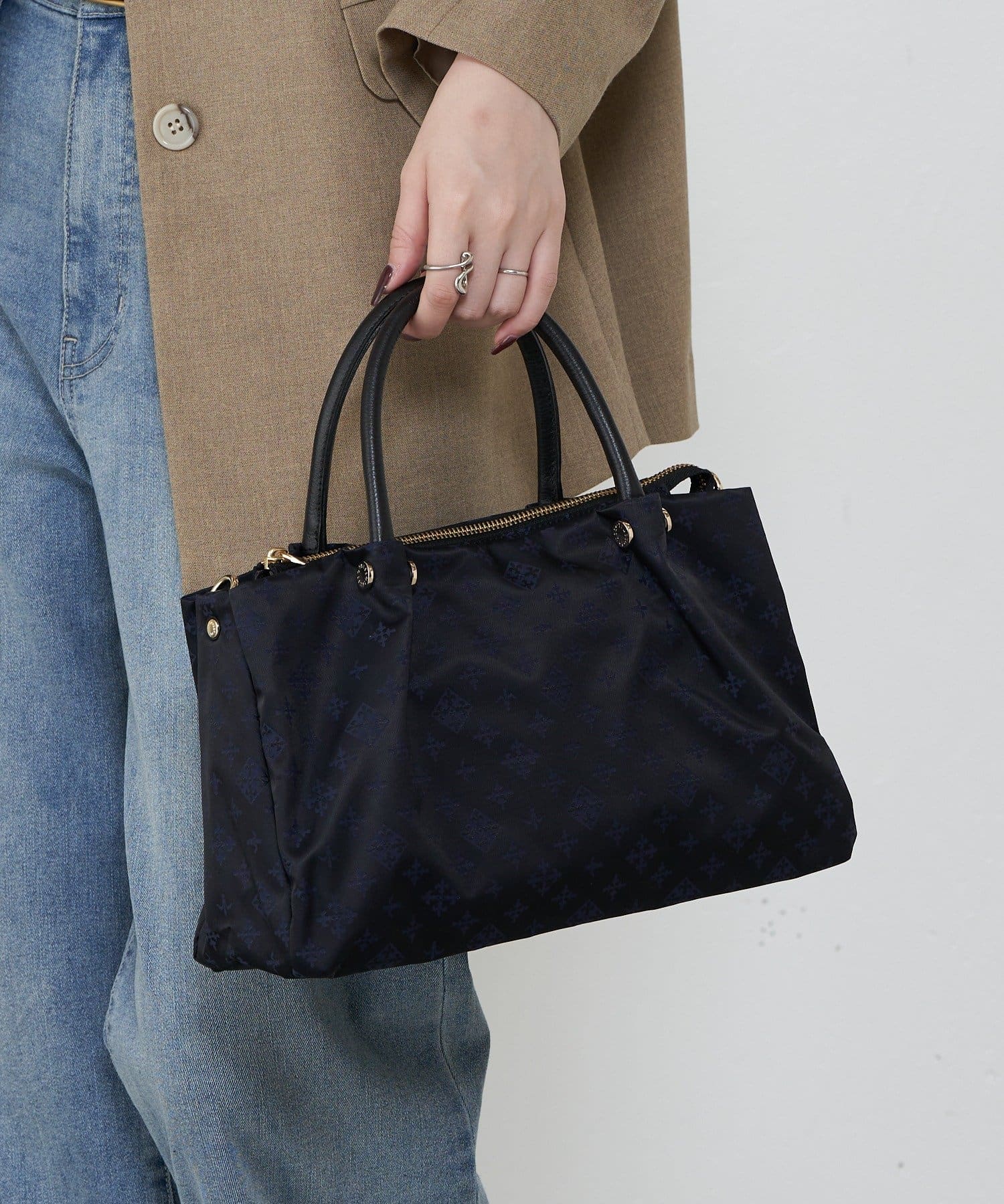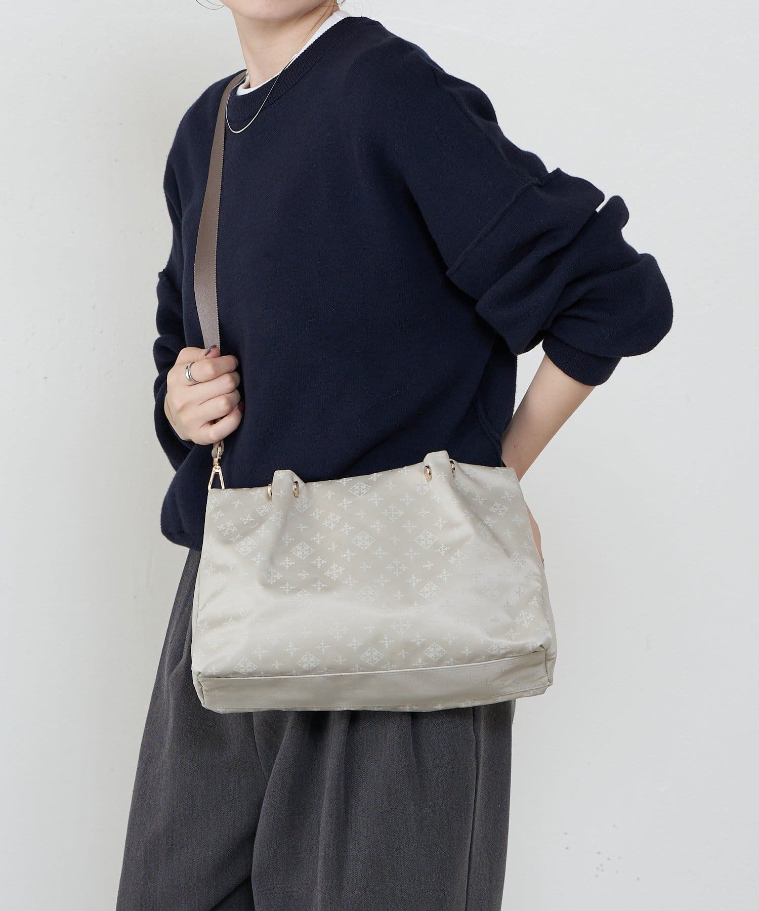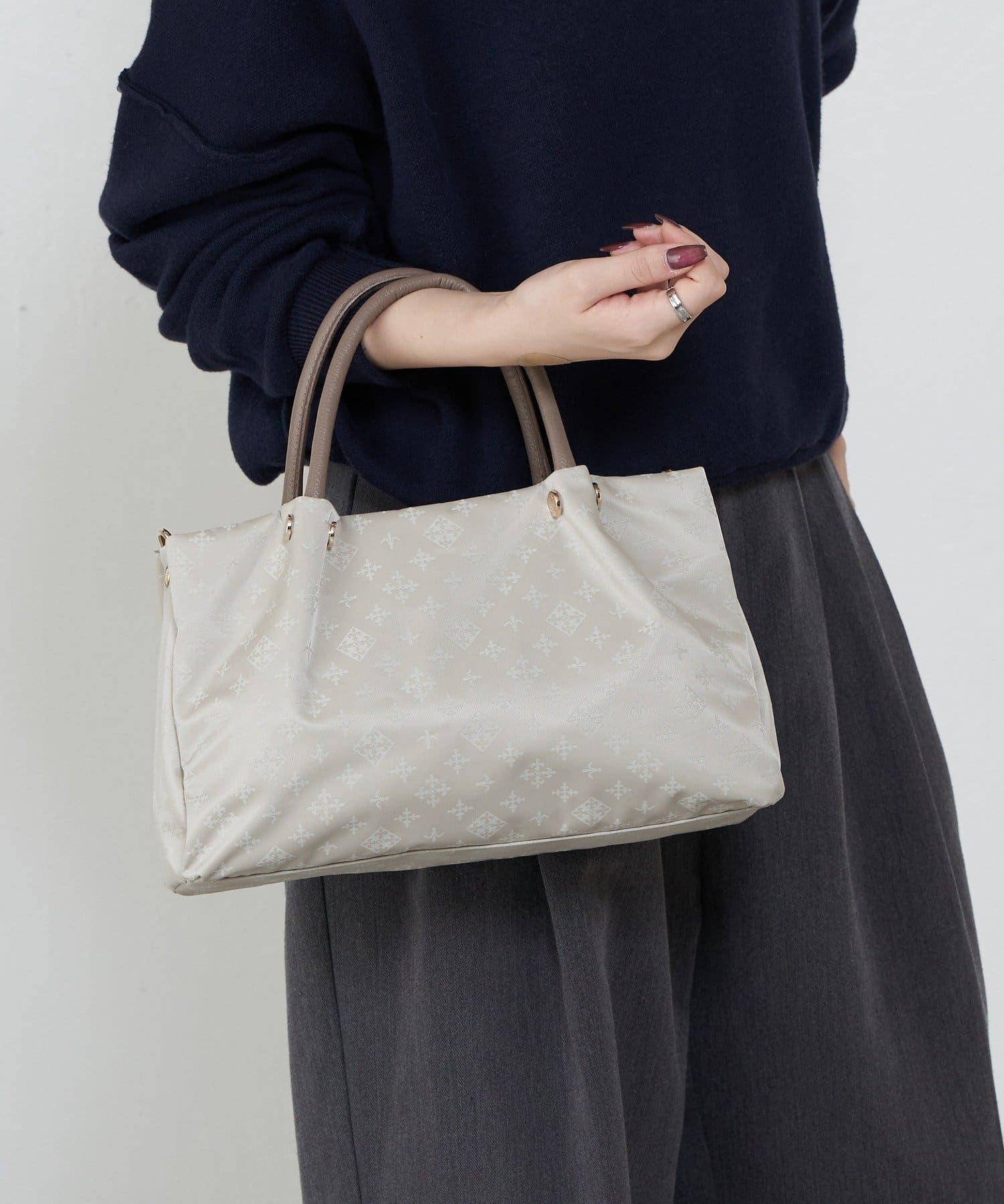 上品な光沢と繊細なモノグラム柄が魅力のナイロンジャガード。