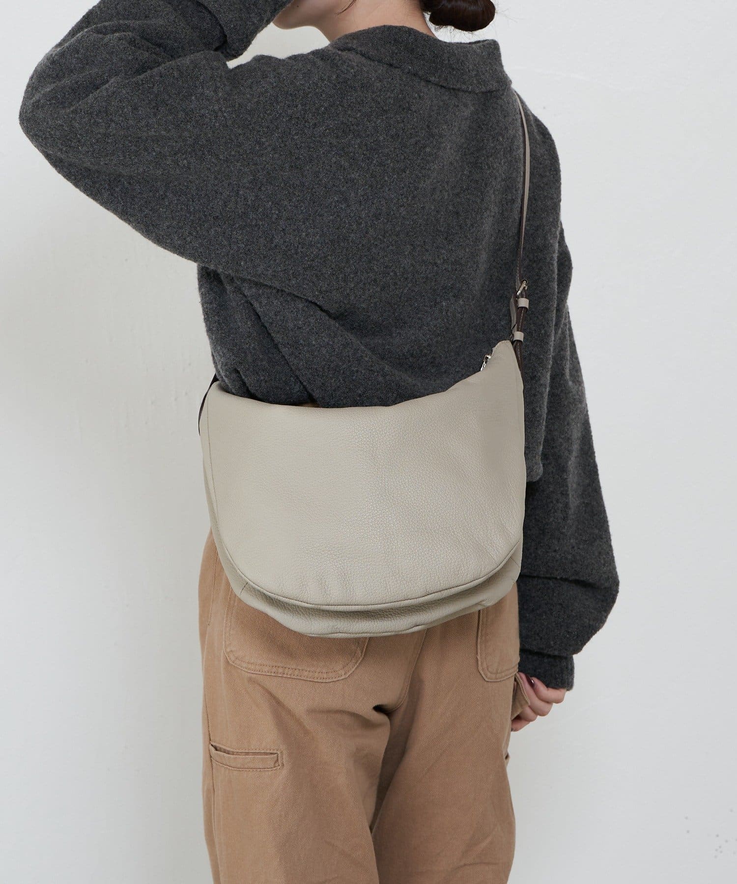 ふっくらとしたレザーの質感が、自然体な上品さを引き立ててくれるショルダーバッグ。