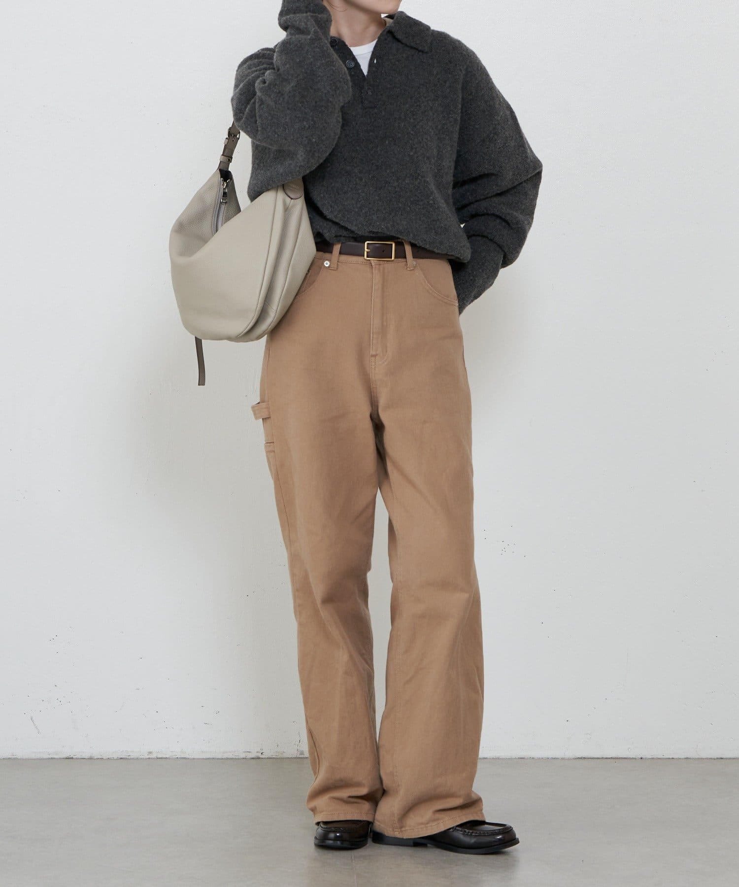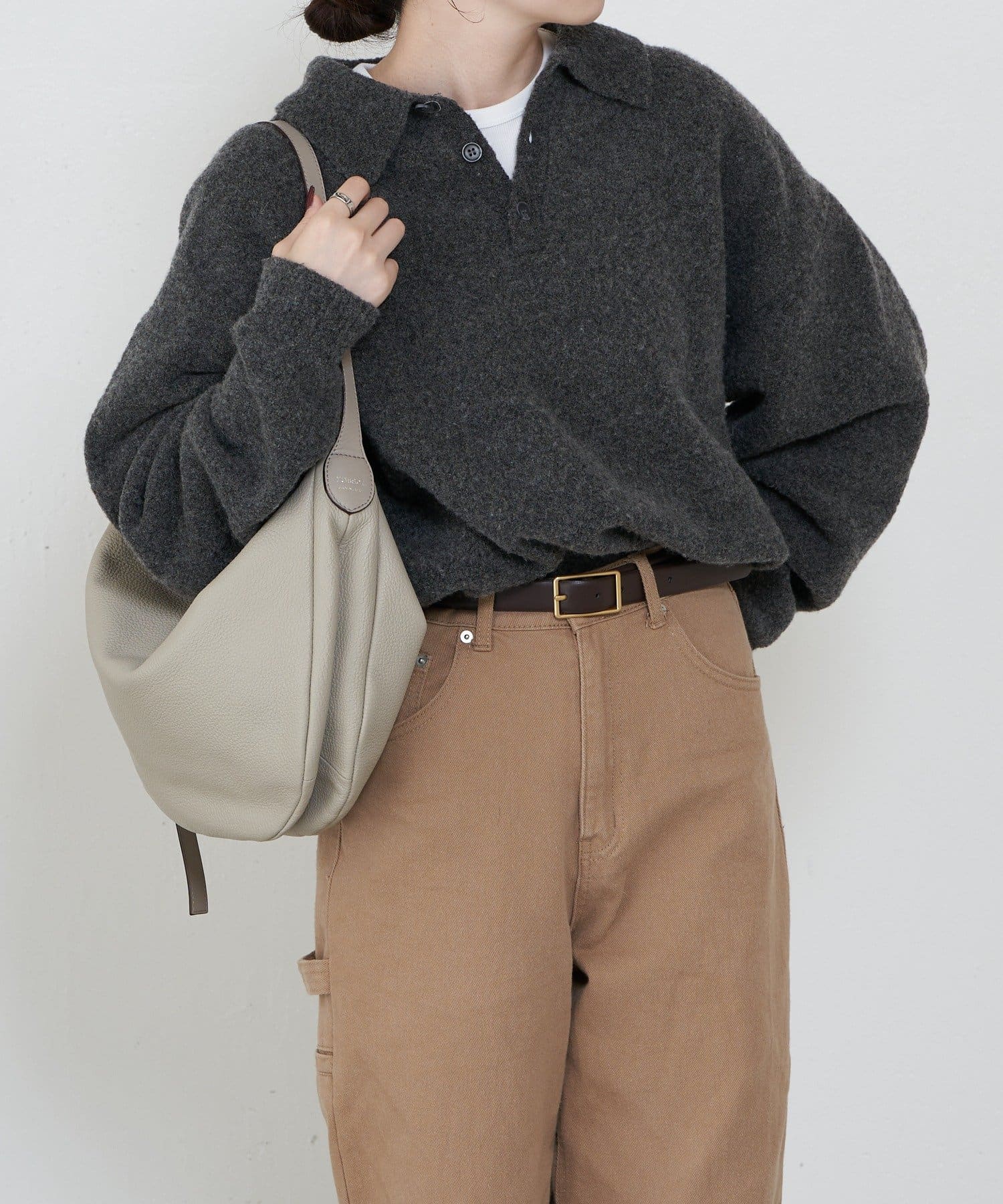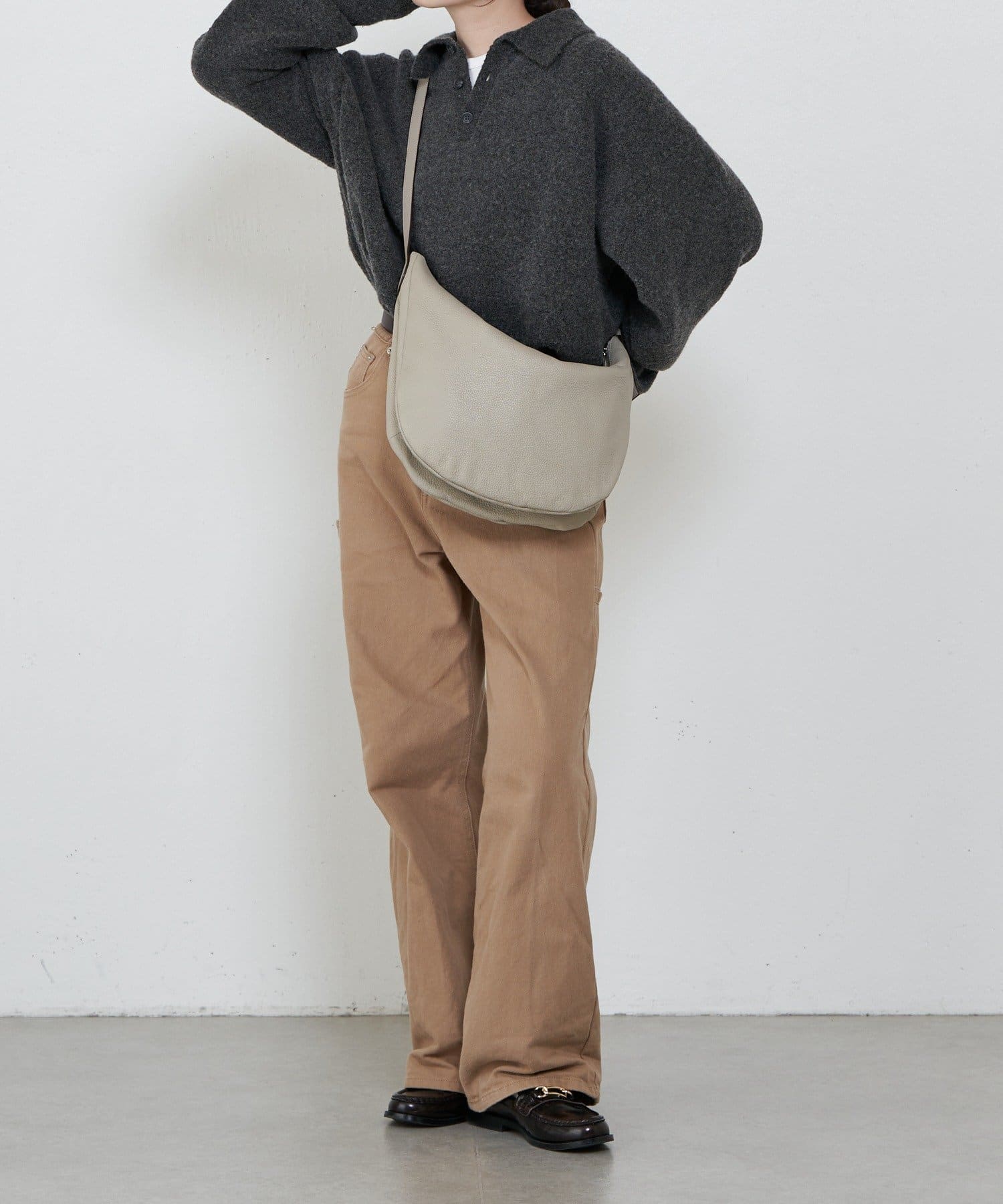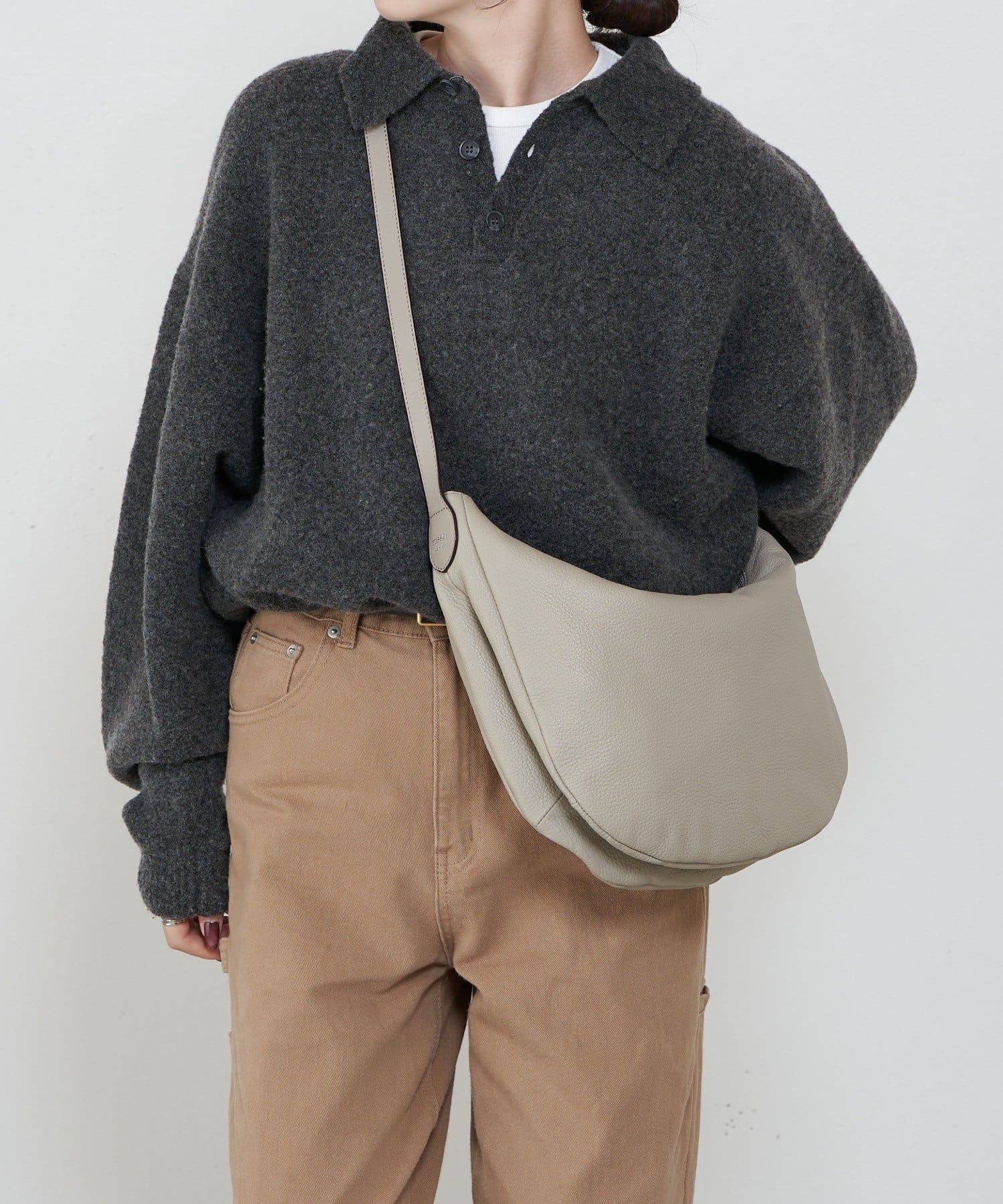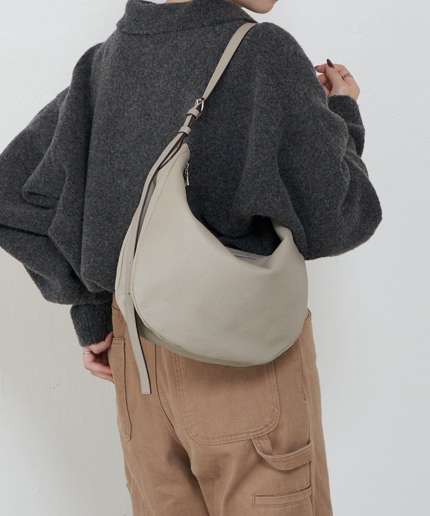 ・柔らかく、くったりとした風合いのシボ感のあるレザーが、こなれた印象に