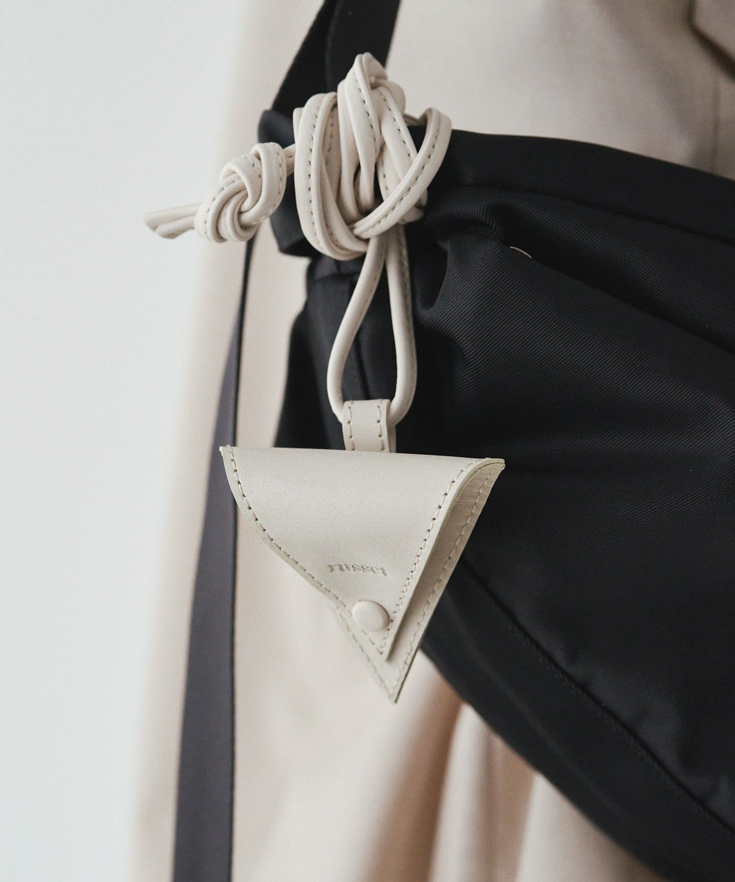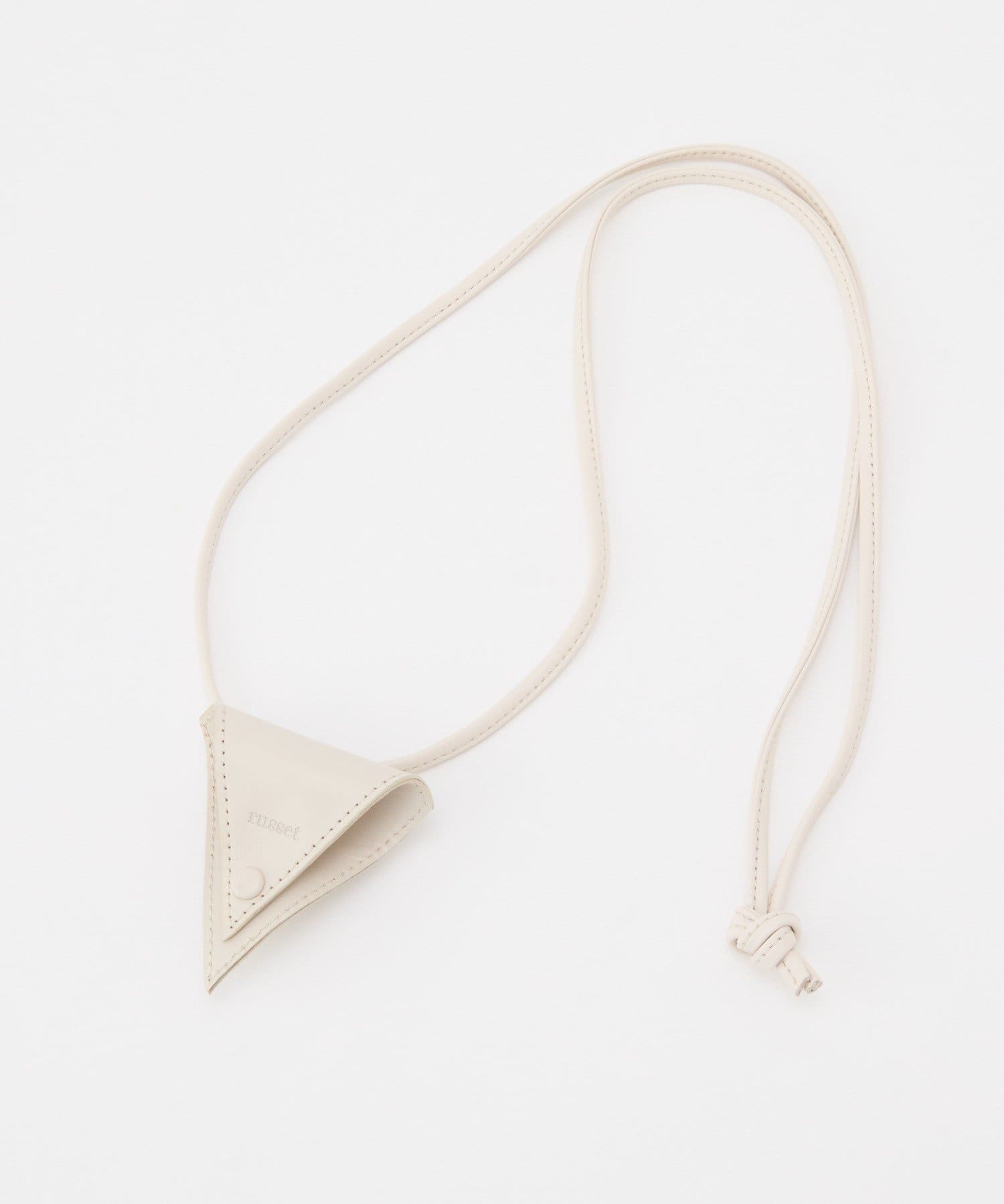スタイリッシュな三角形デザインと、首にかけられるレザーストラップで、アクセサリー感覚で取り入れられるアイテムです。