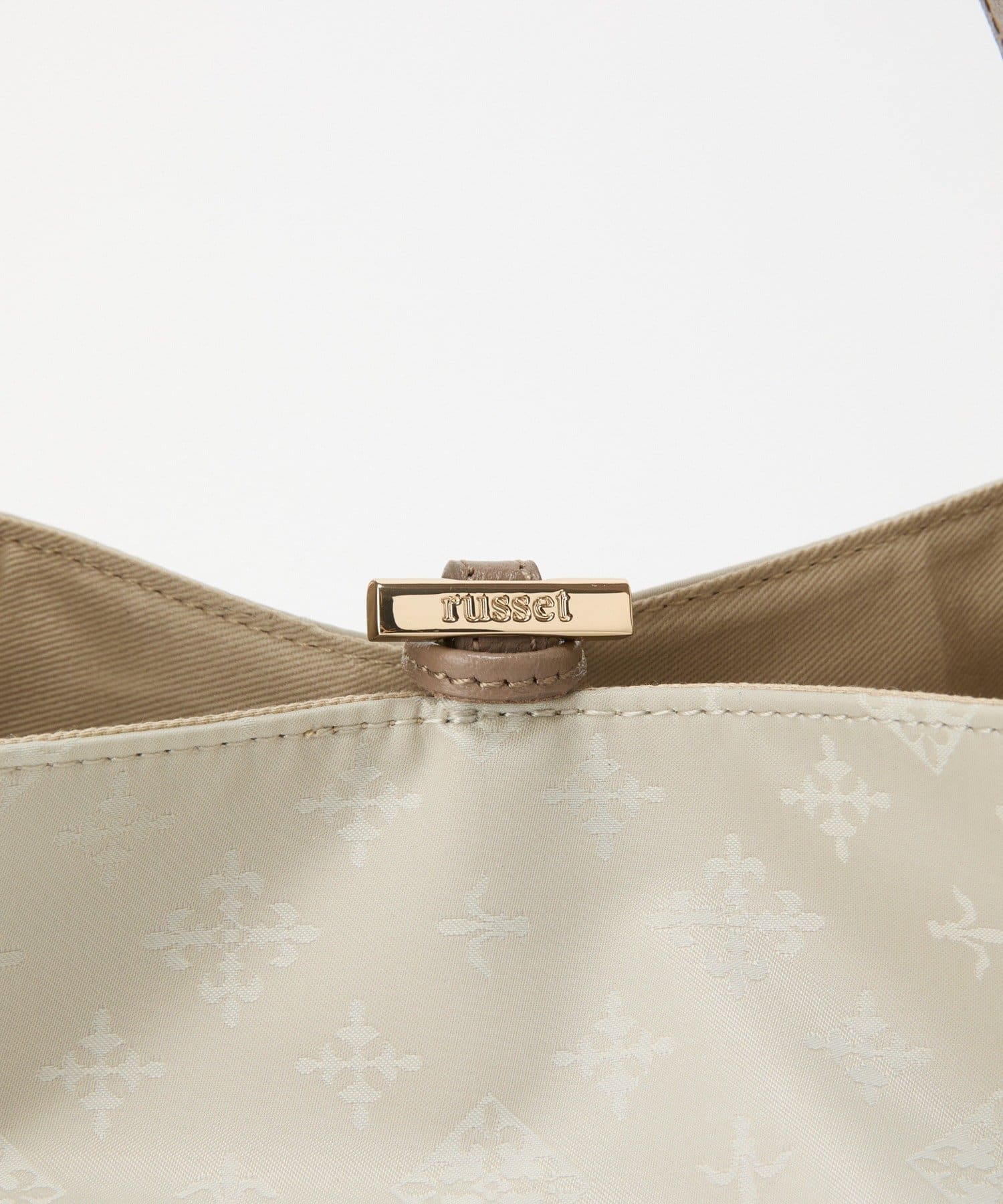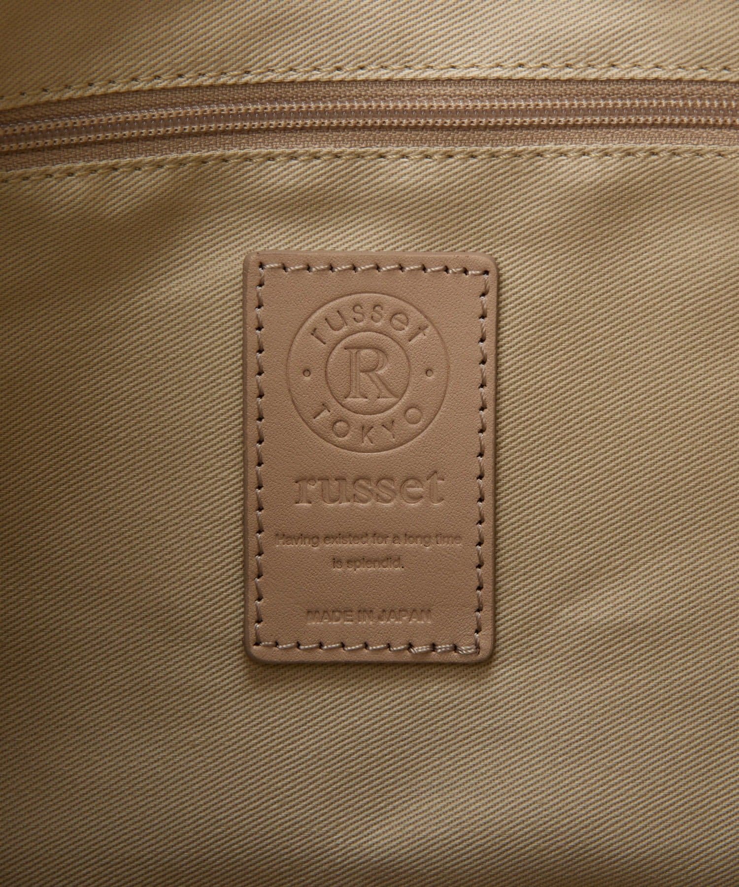 開口部にはrussetのロゴが入ったゴールドのプレートパーツを使用。