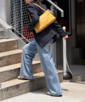 ・すっきりとした横長のスクエアシルエットは、スタイリングを選ばず活躍