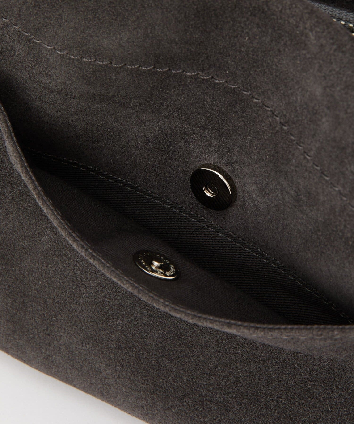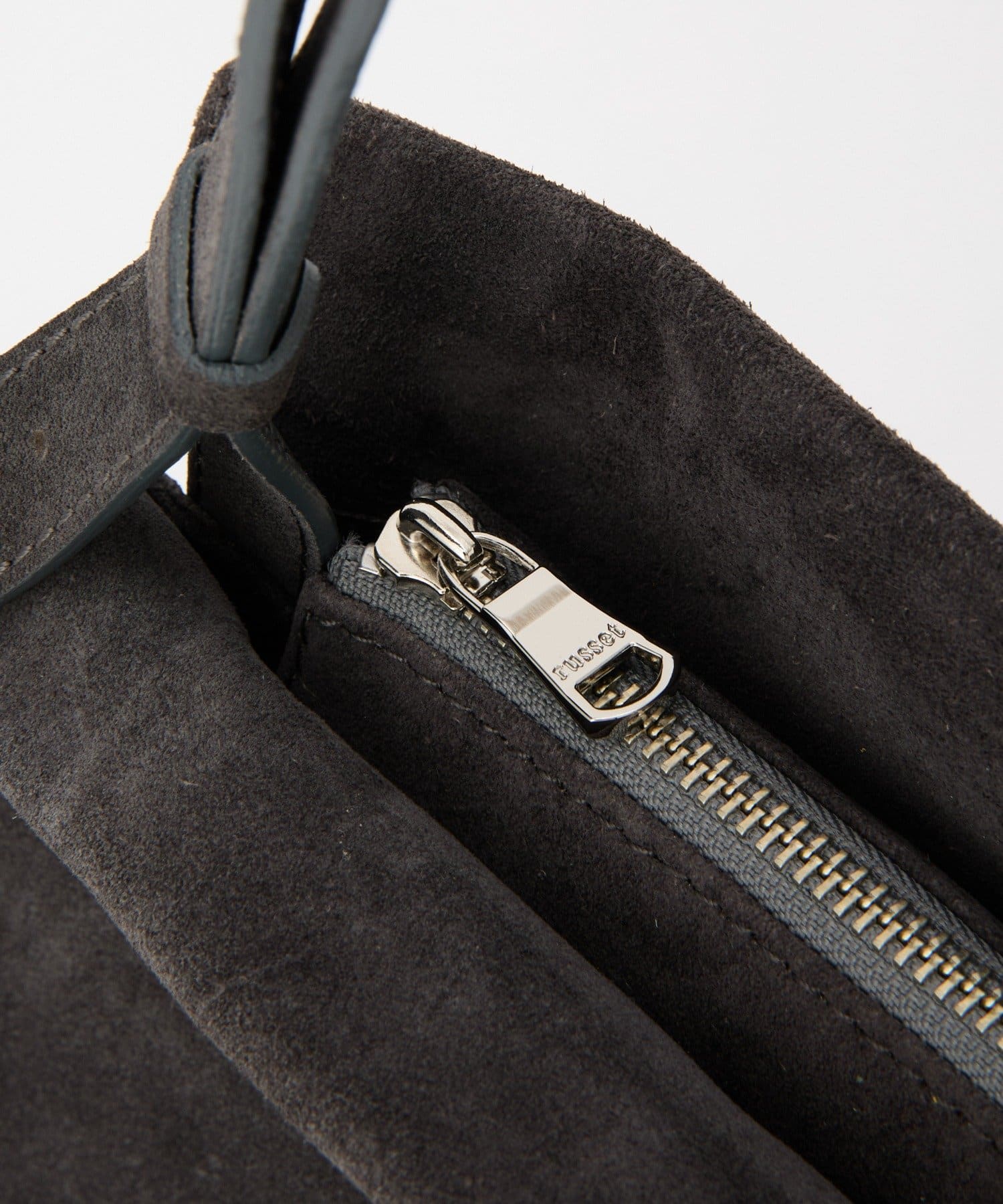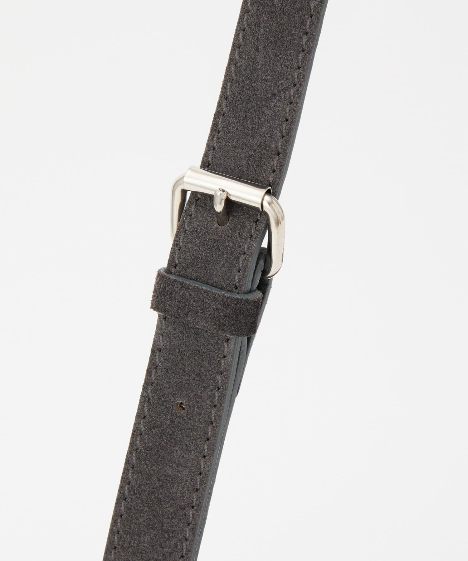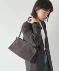 しっとりとしたスエード素材と、すっきりとしたスクエアフォルムが美しく調和した一品。