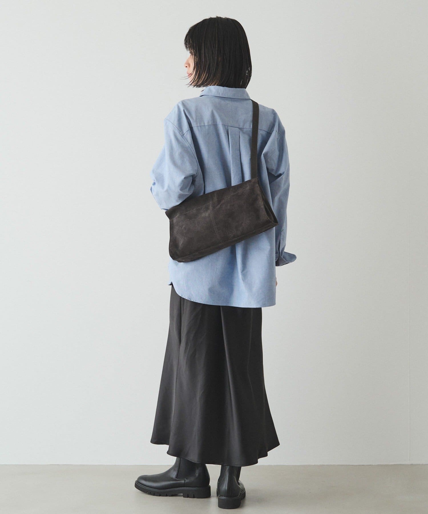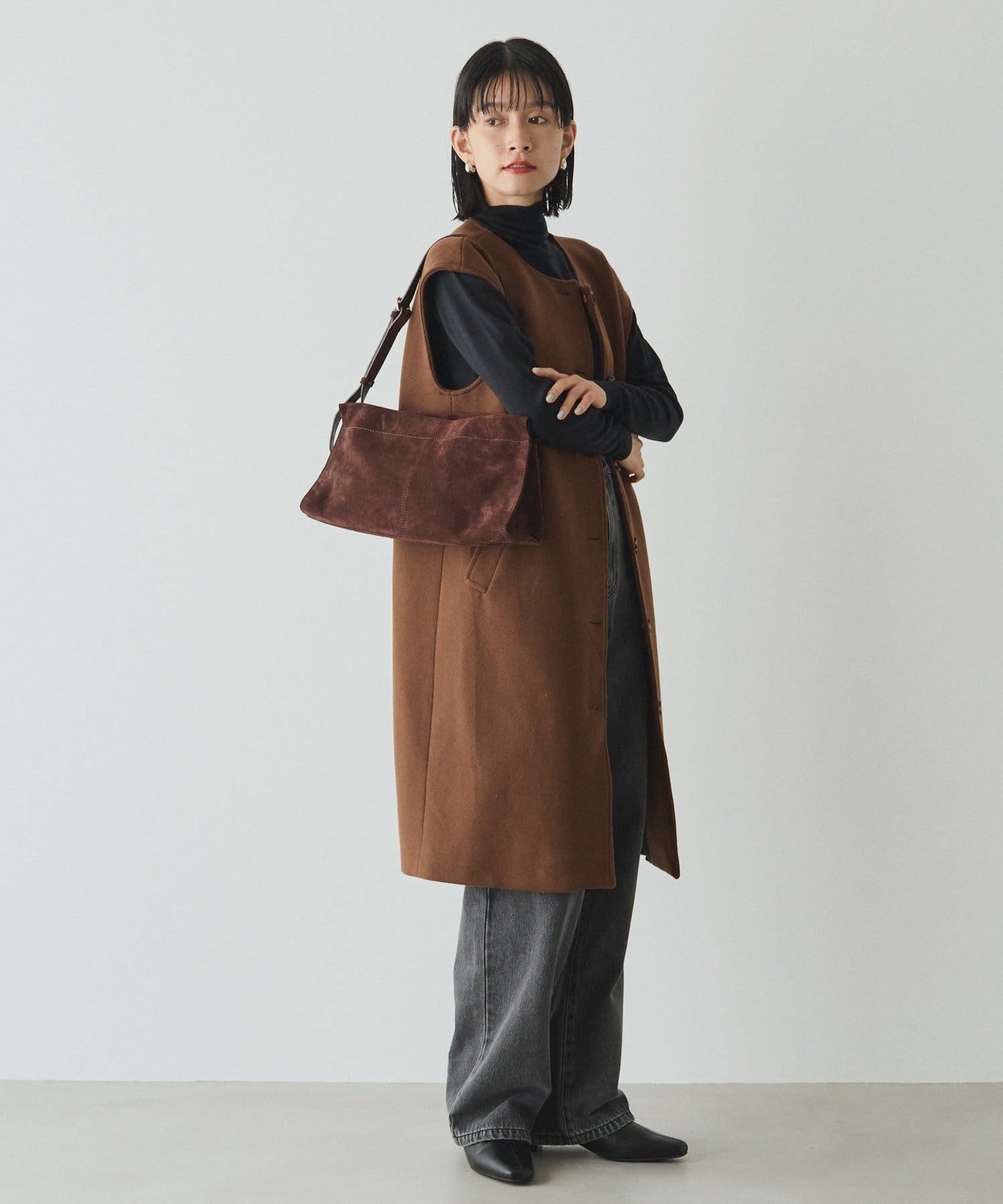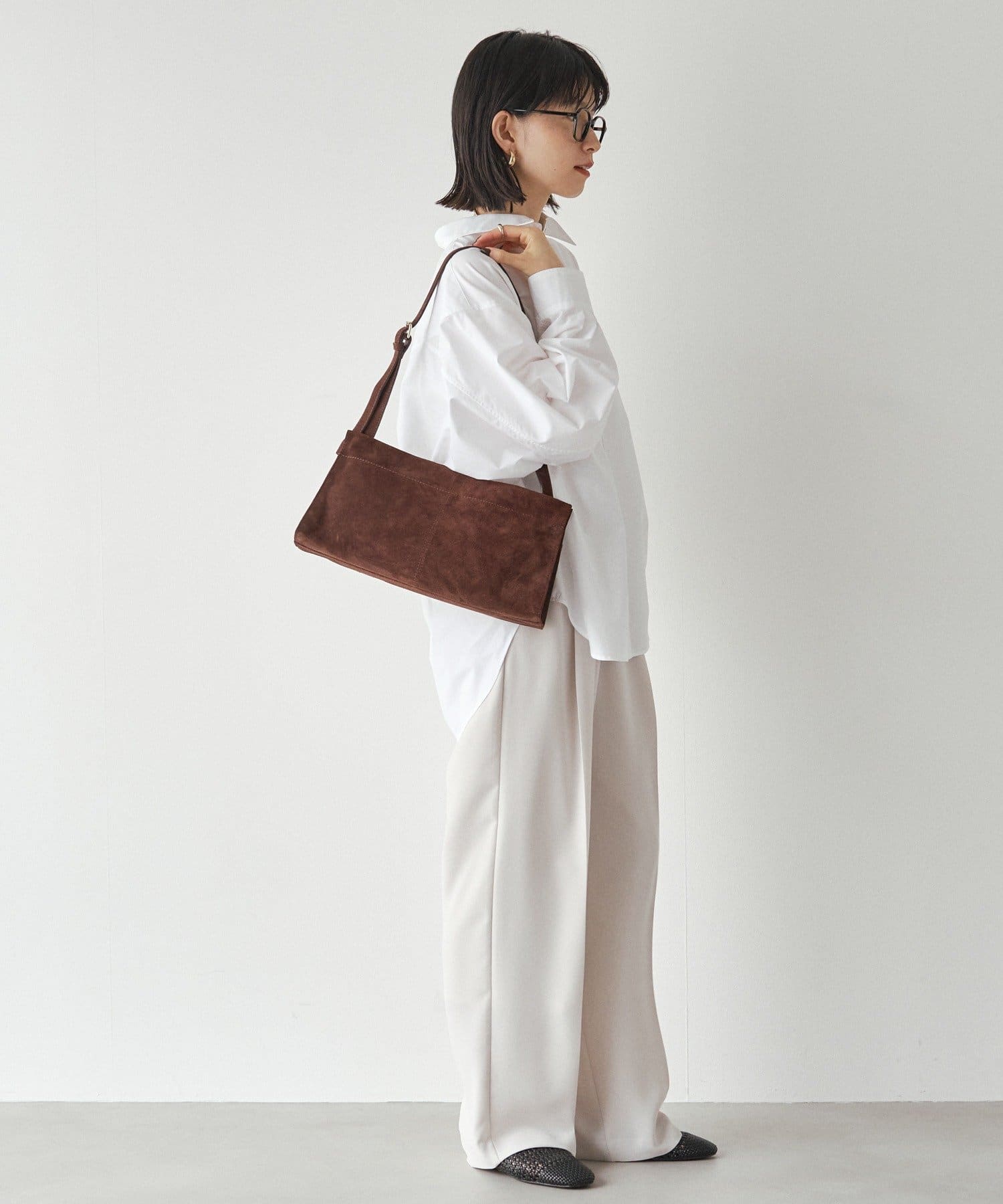 装いに深みを添える、スエードショルダーバッグ。