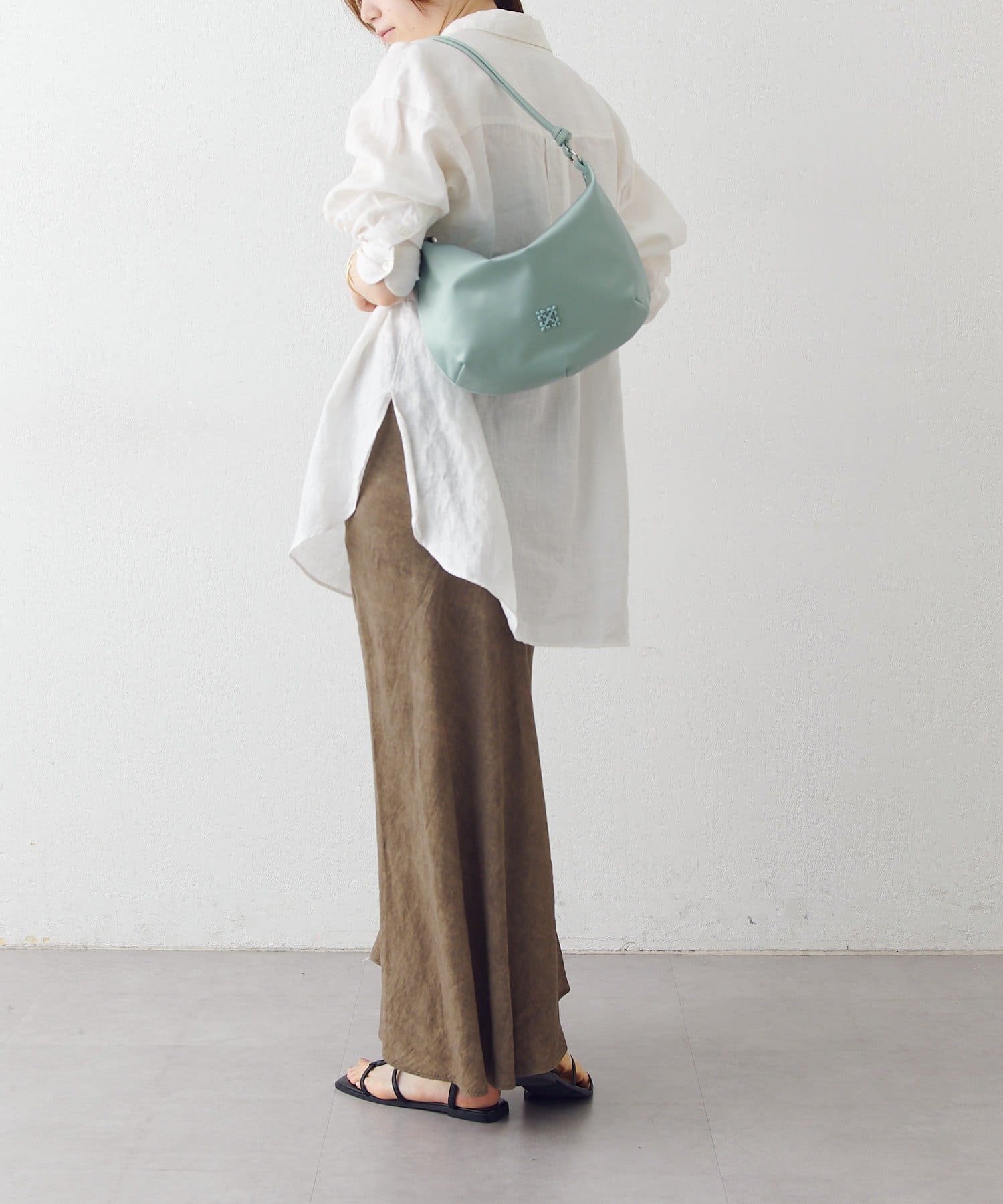 ・レザーベルトの結び目ディテールが、ベーシックな中にさりげない個性をプラス
