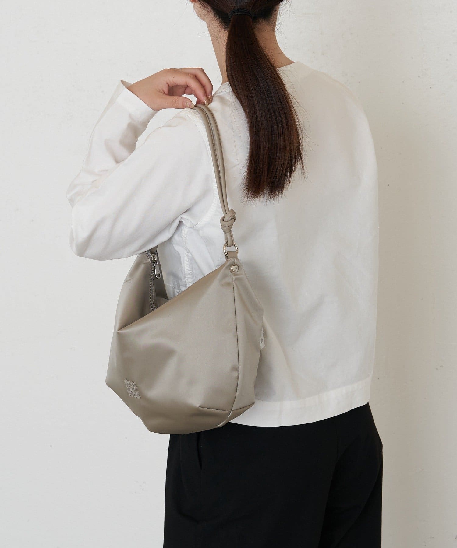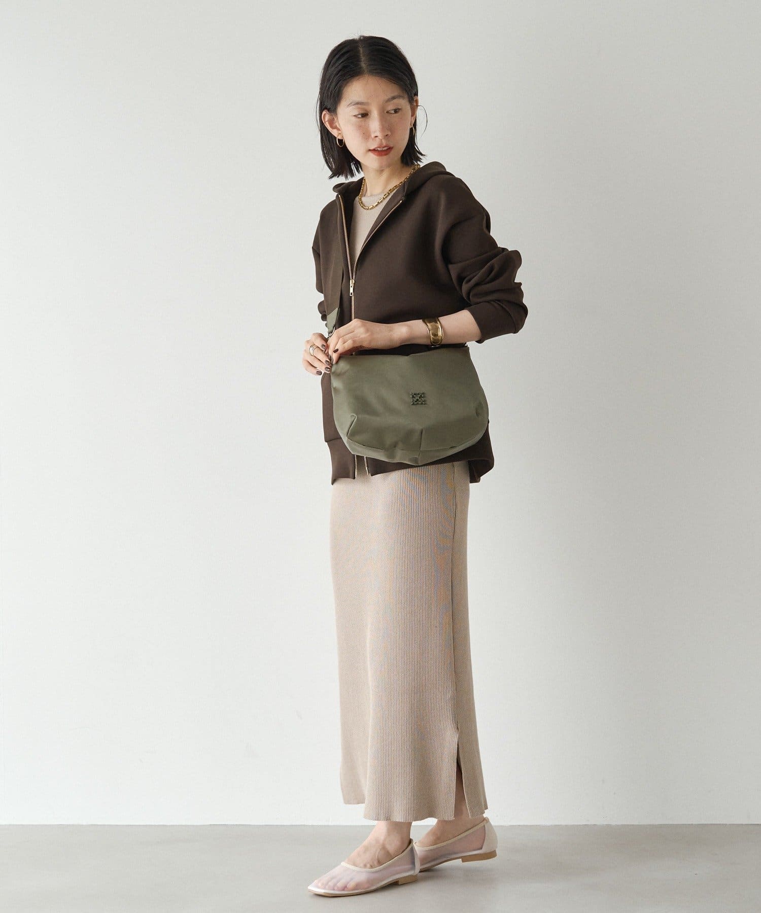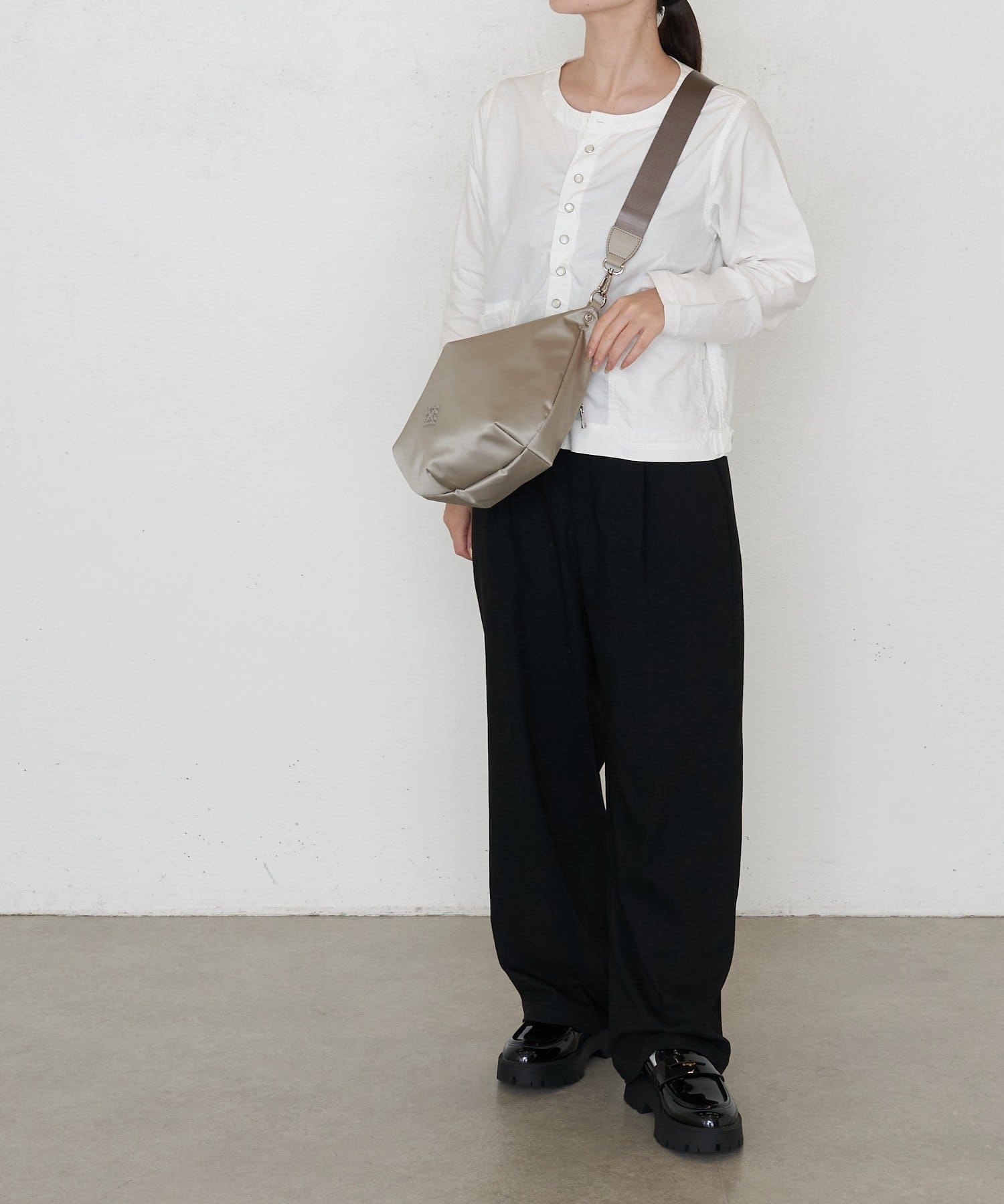 ツヤ感のあるナイロン素材が上品な印象をプラスし、きれいめスタイルにも馴染みます。