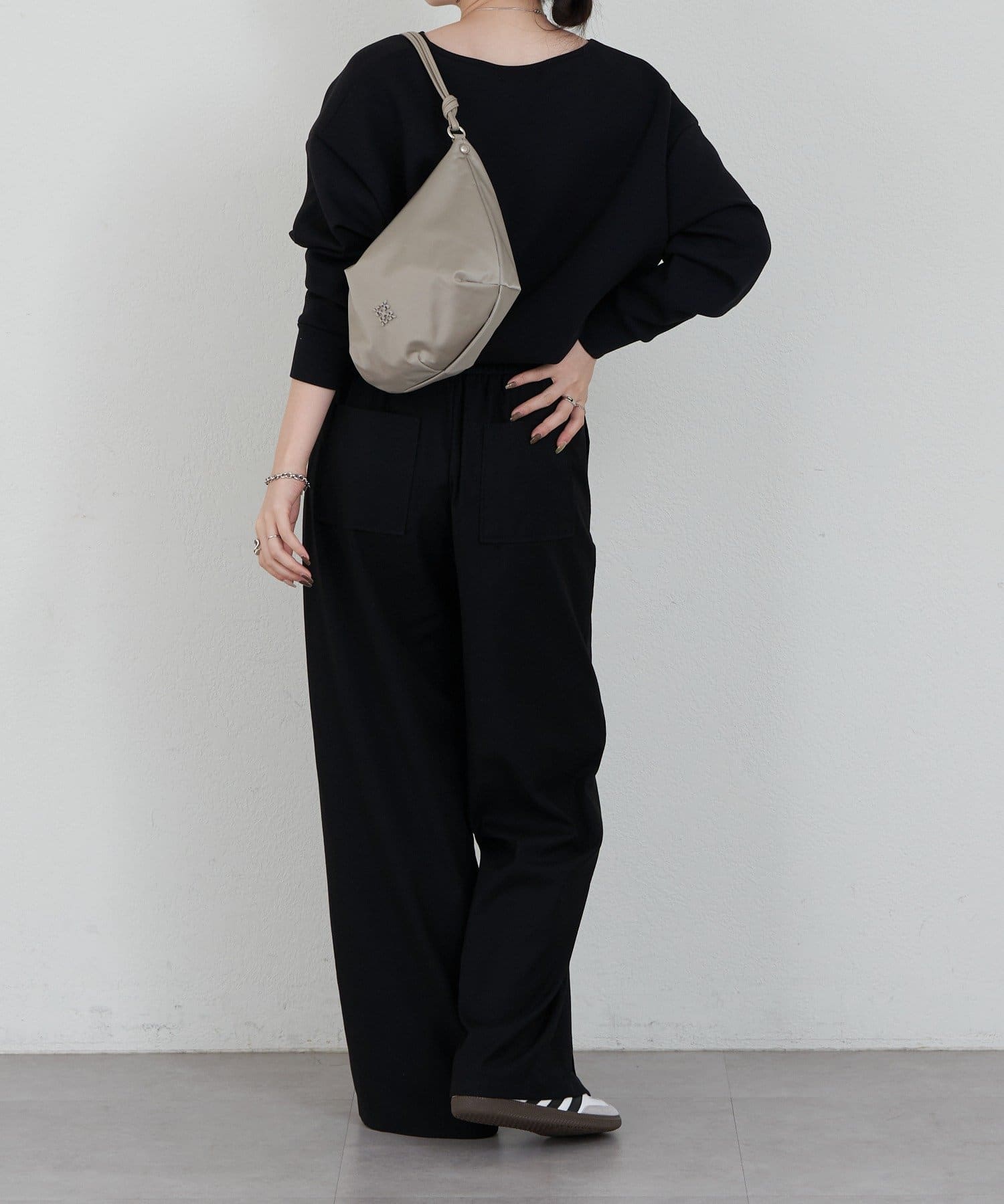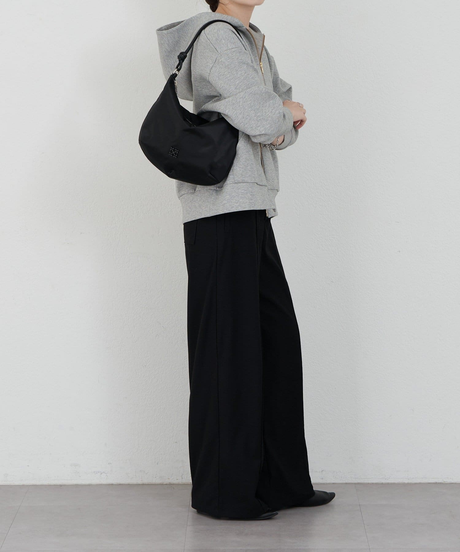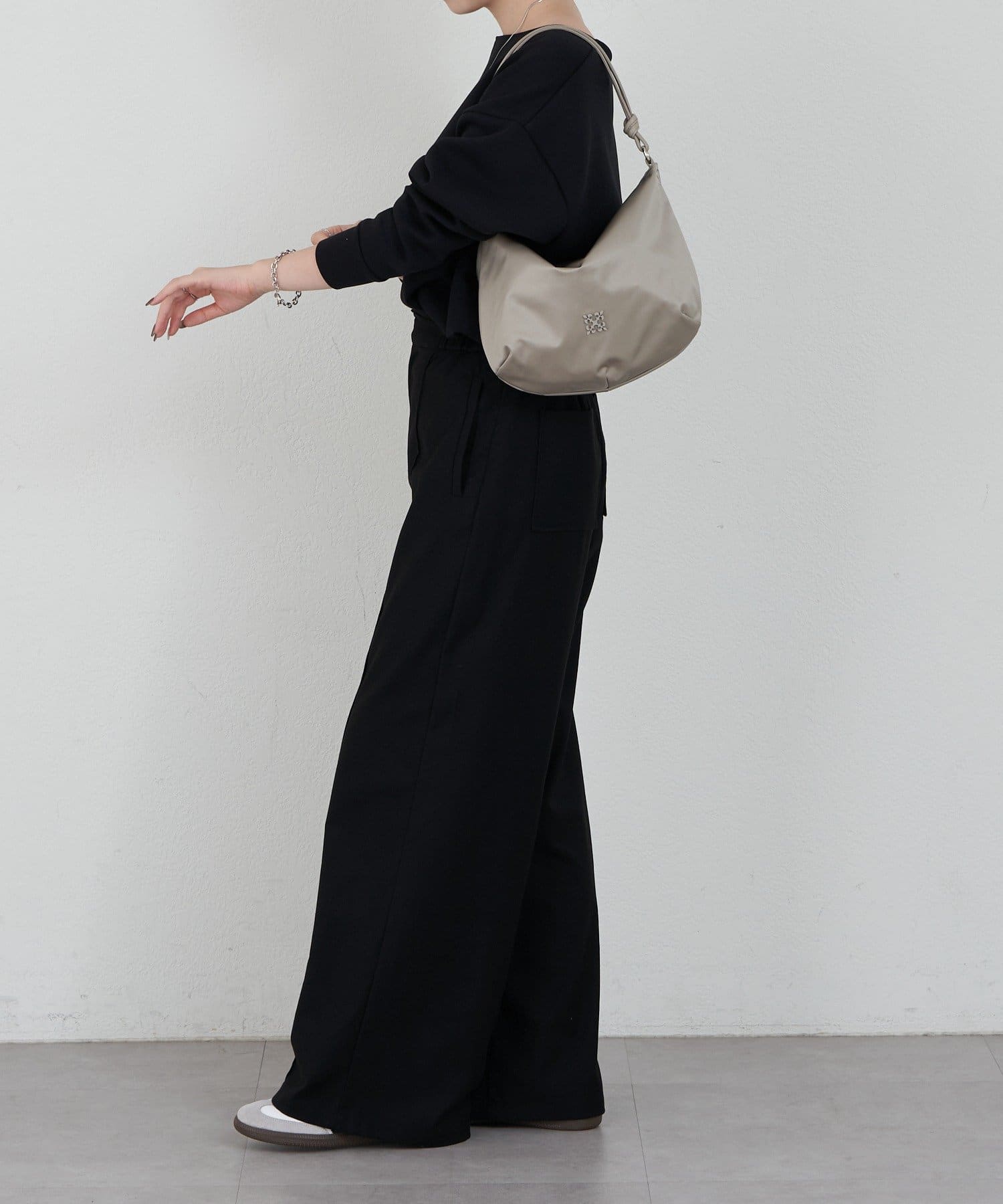 ツヤ感のあるナイロン素材が上品な印象をプラスし、きれいめスタイルにも馴染みます。