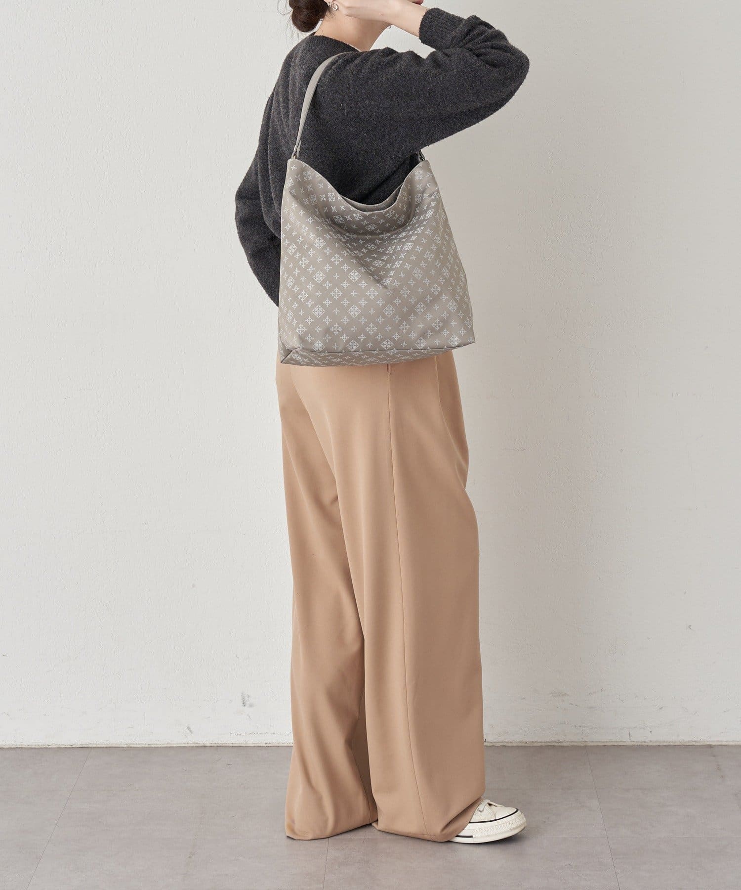 ・ブランドアイコンが映えるモノグラム柄で、カジュアルになりすぎず品よく決まる