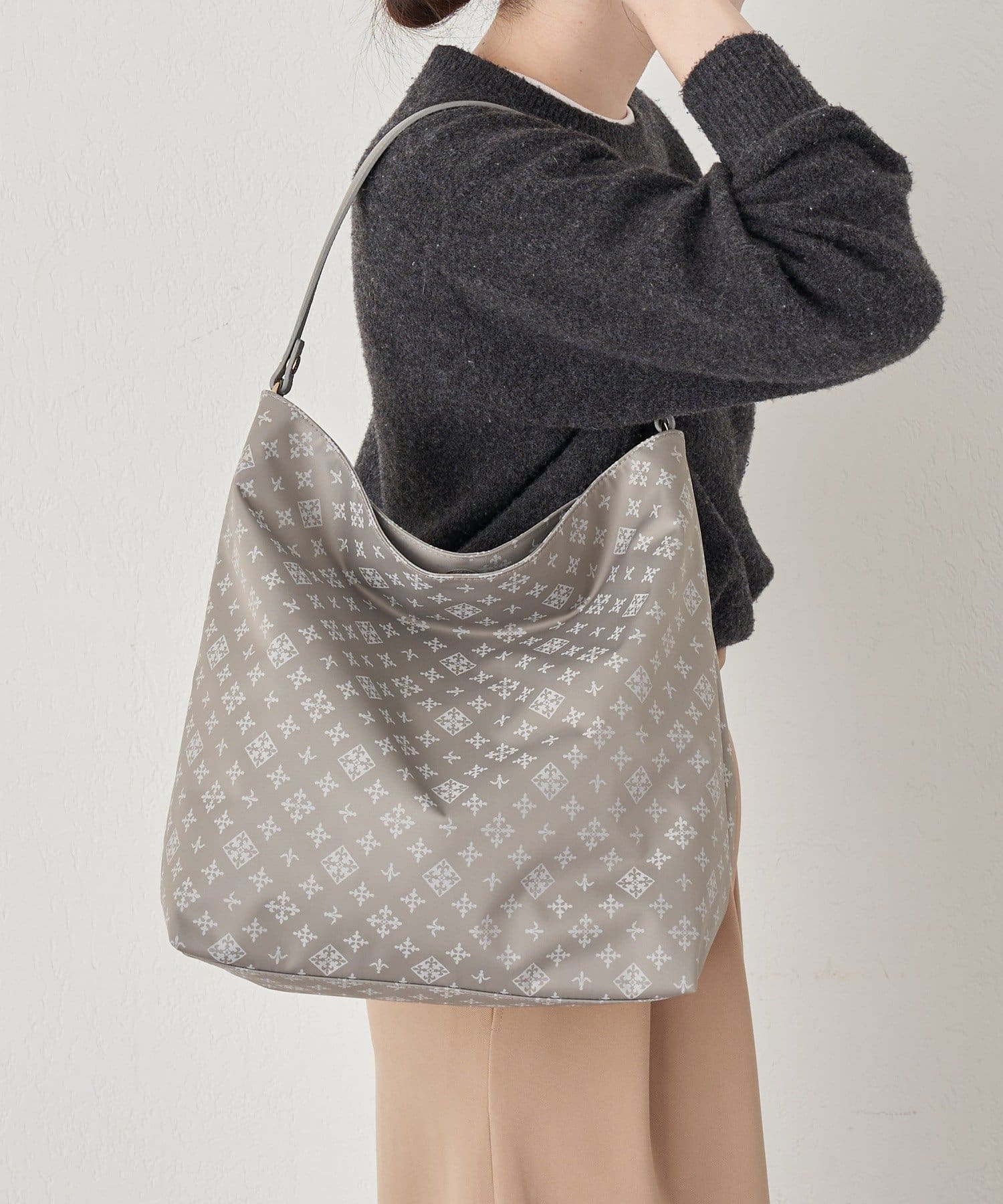 しなやかなナイロン素材にラシットのモノグラム柄が映える、洗練された印象のショルダーバッグ。