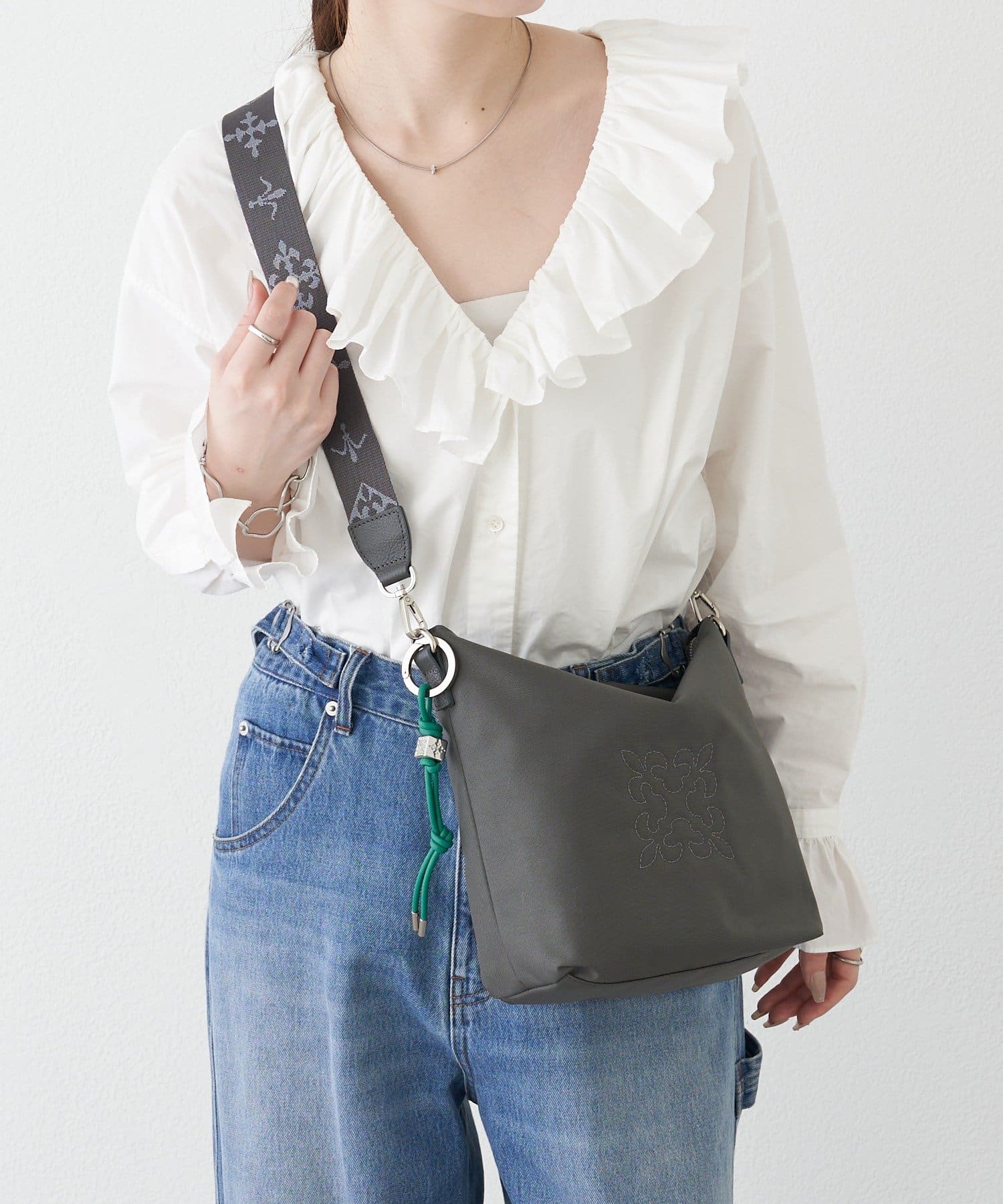 バッグに添えるだけで、シンプルな装いに表情をプラスします。
