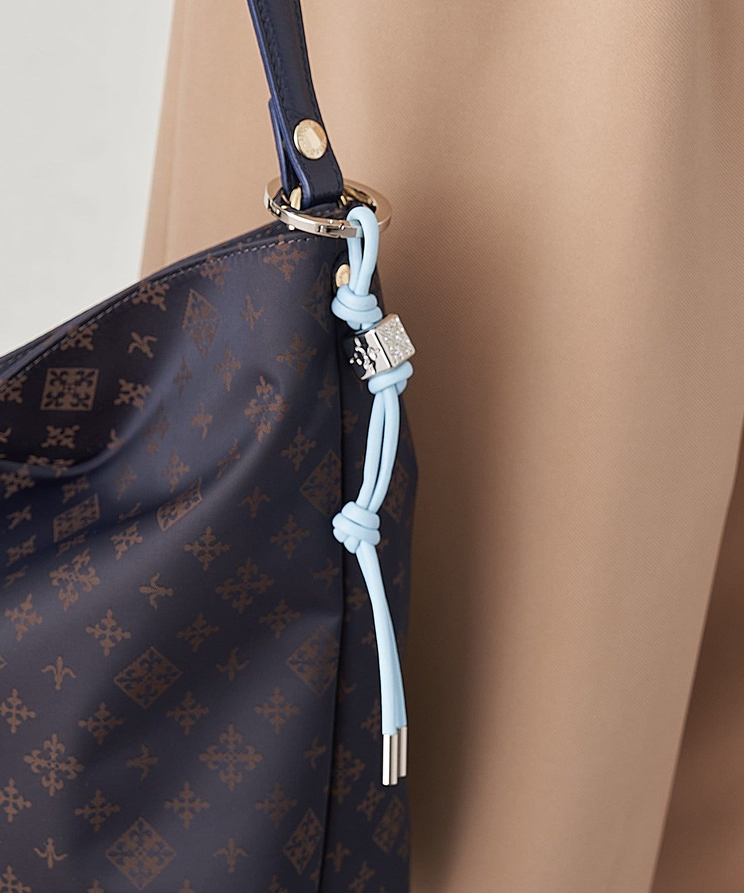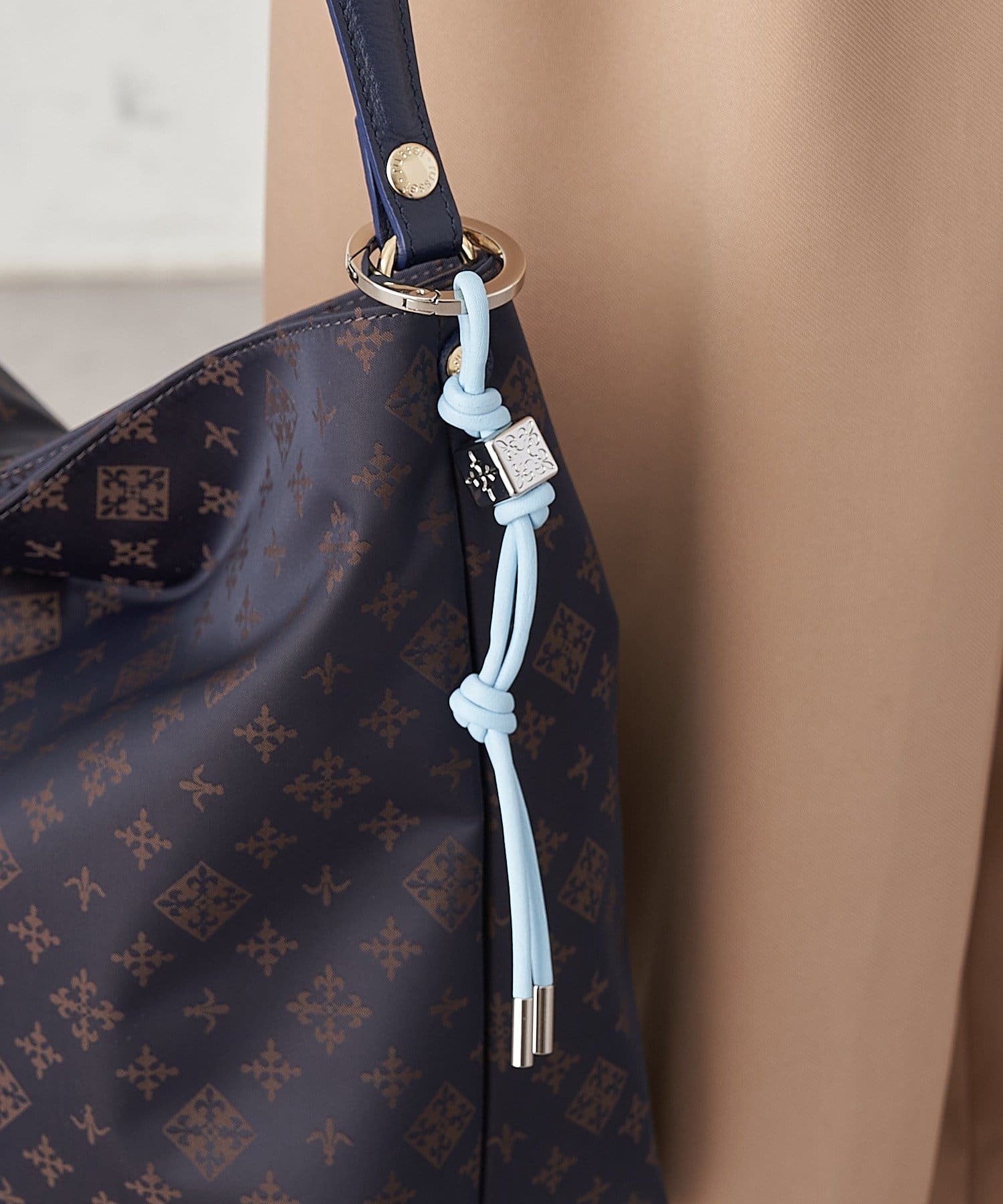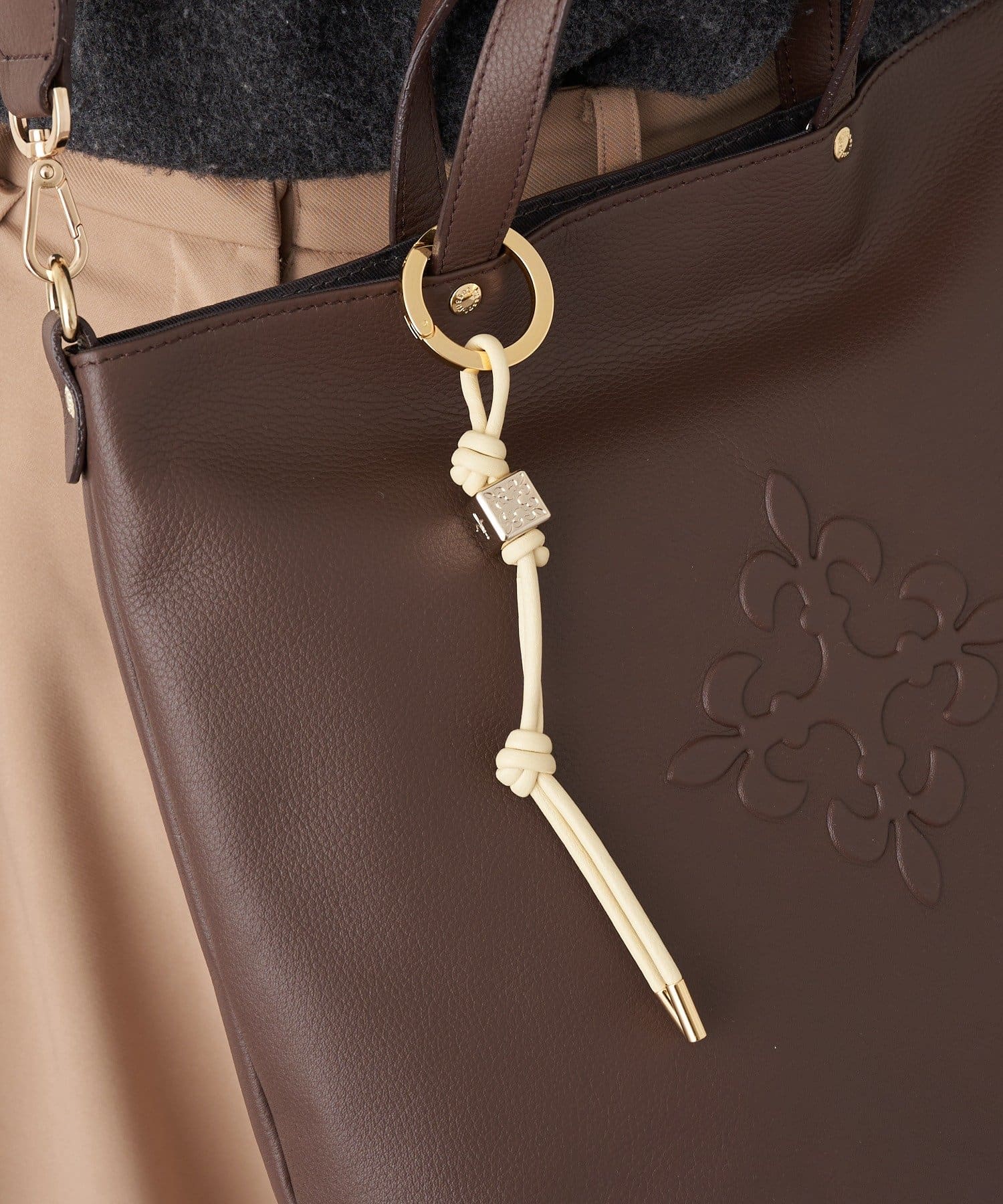 ノットモチーフとメタルパーツを組み合わせた、大人に似合うバッグチャーム。