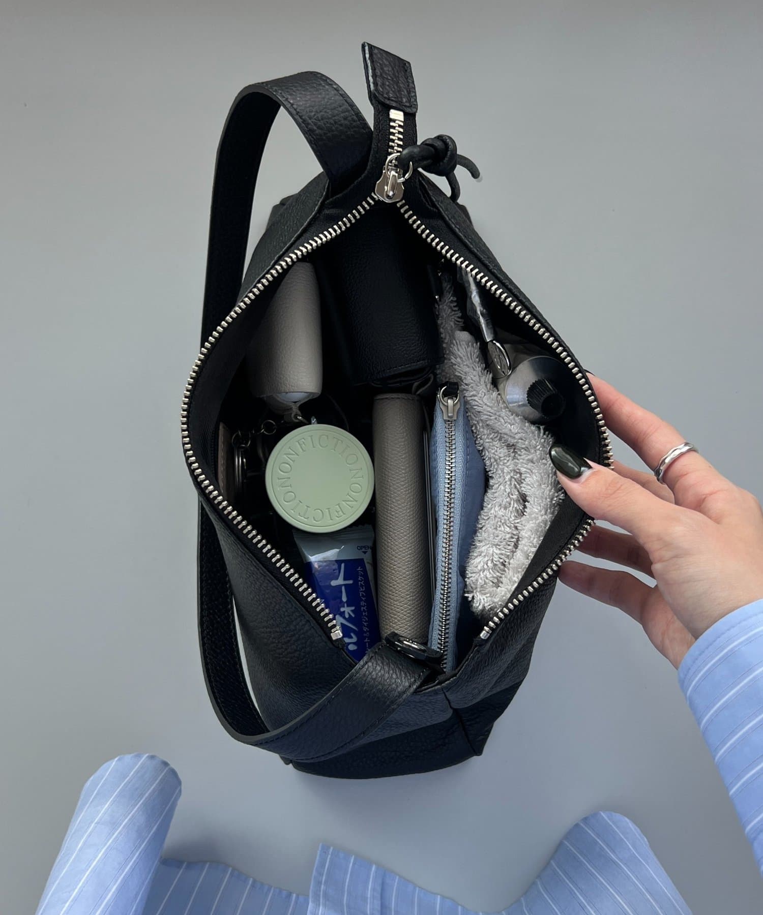 形をきれいに保ちながら、くったり持っても絵になる日本製バッグです。