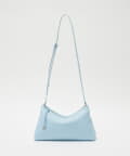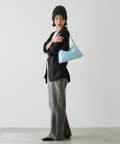 「日常に寄り添い、装いを引き立てるショルダーバッグ」横長シルエットと、結び目デザインのレザー引手がほどよくトレンド感を添えます。