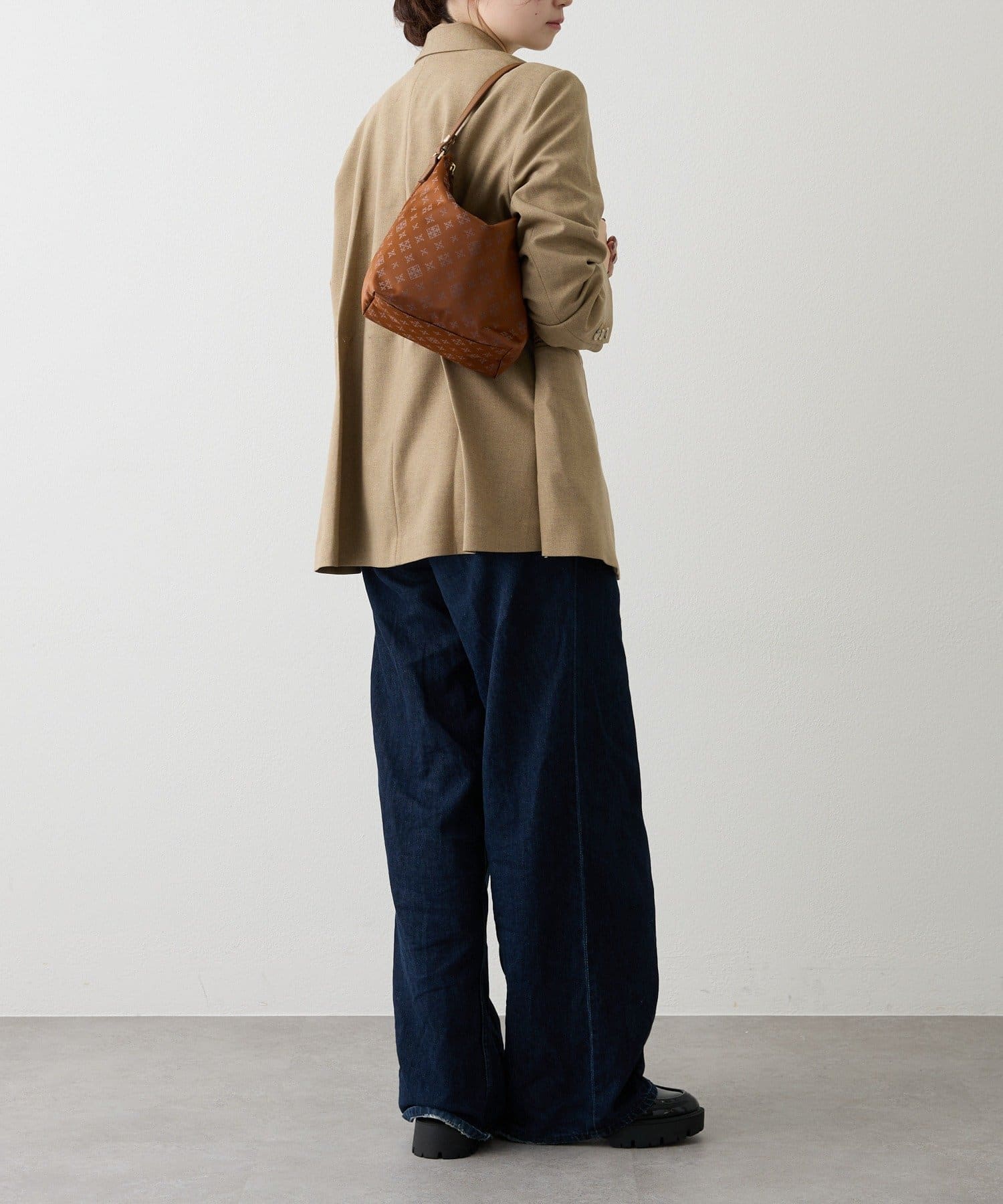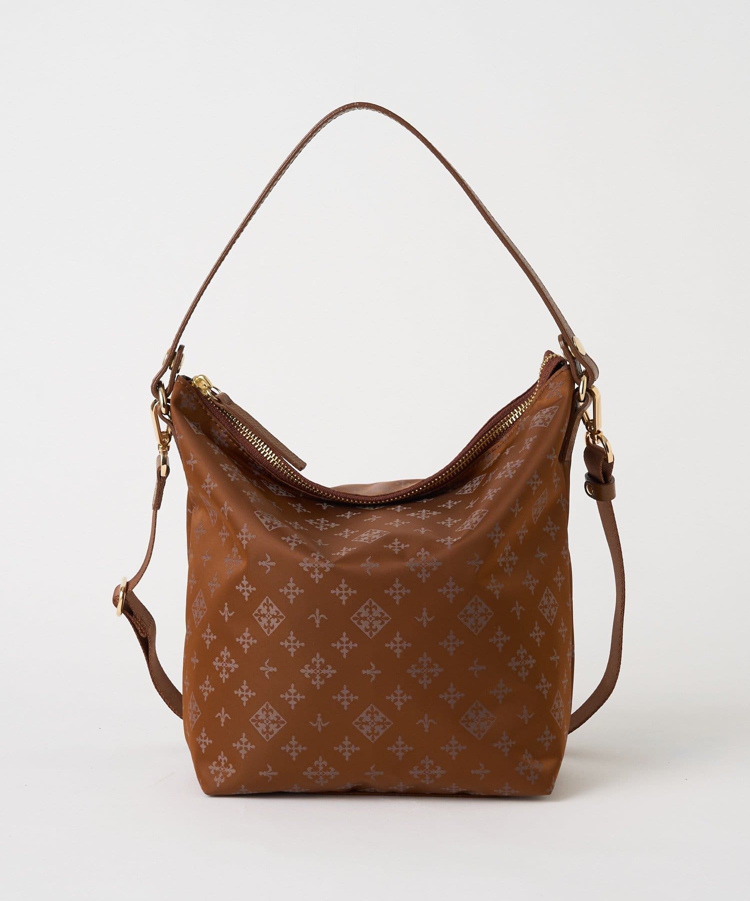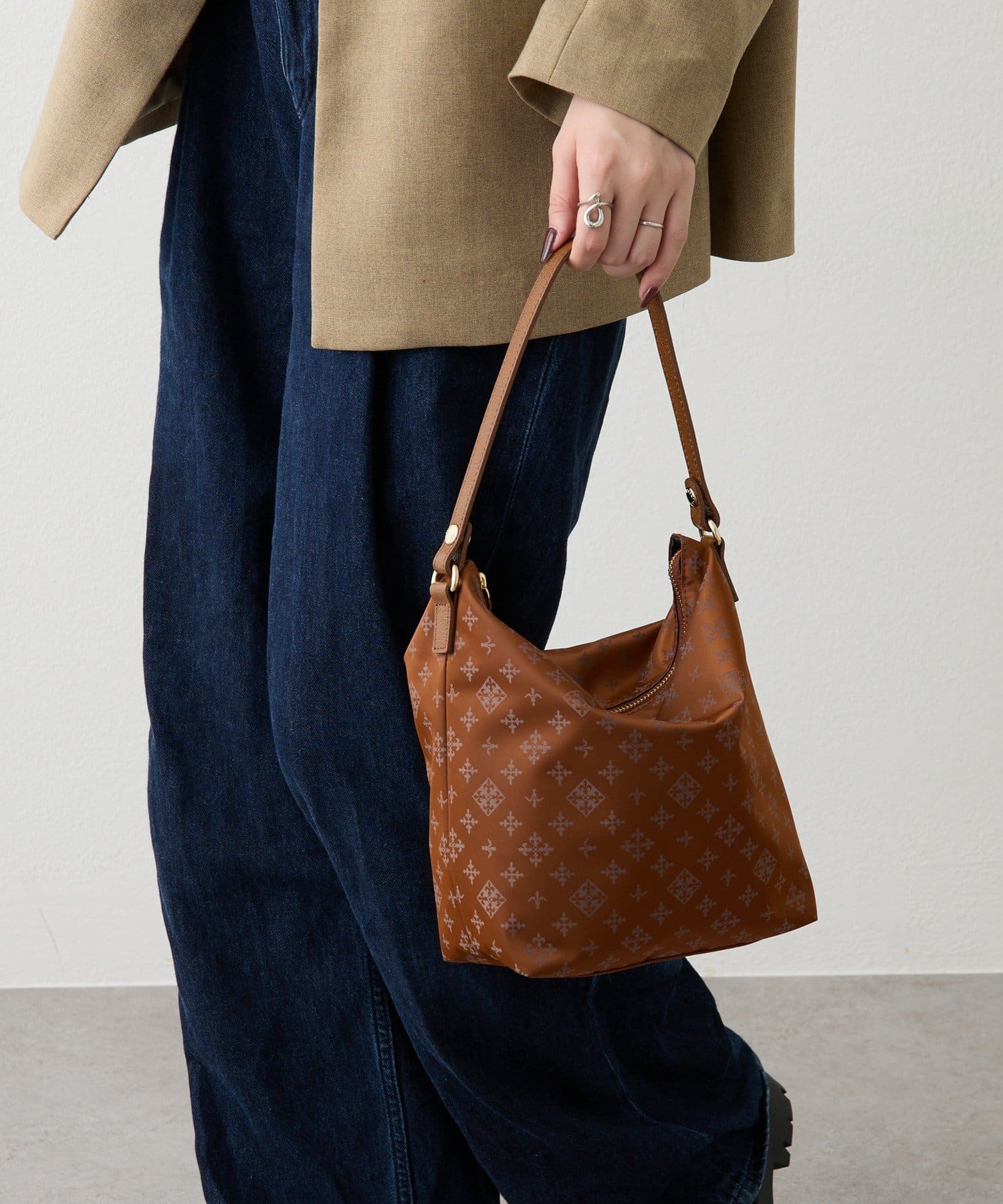 織りで表現したモノグラム柄が上品に映える、ナイロンジャガード素材のバッグ。