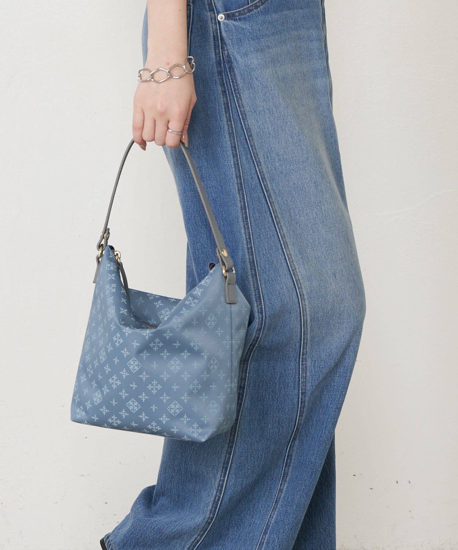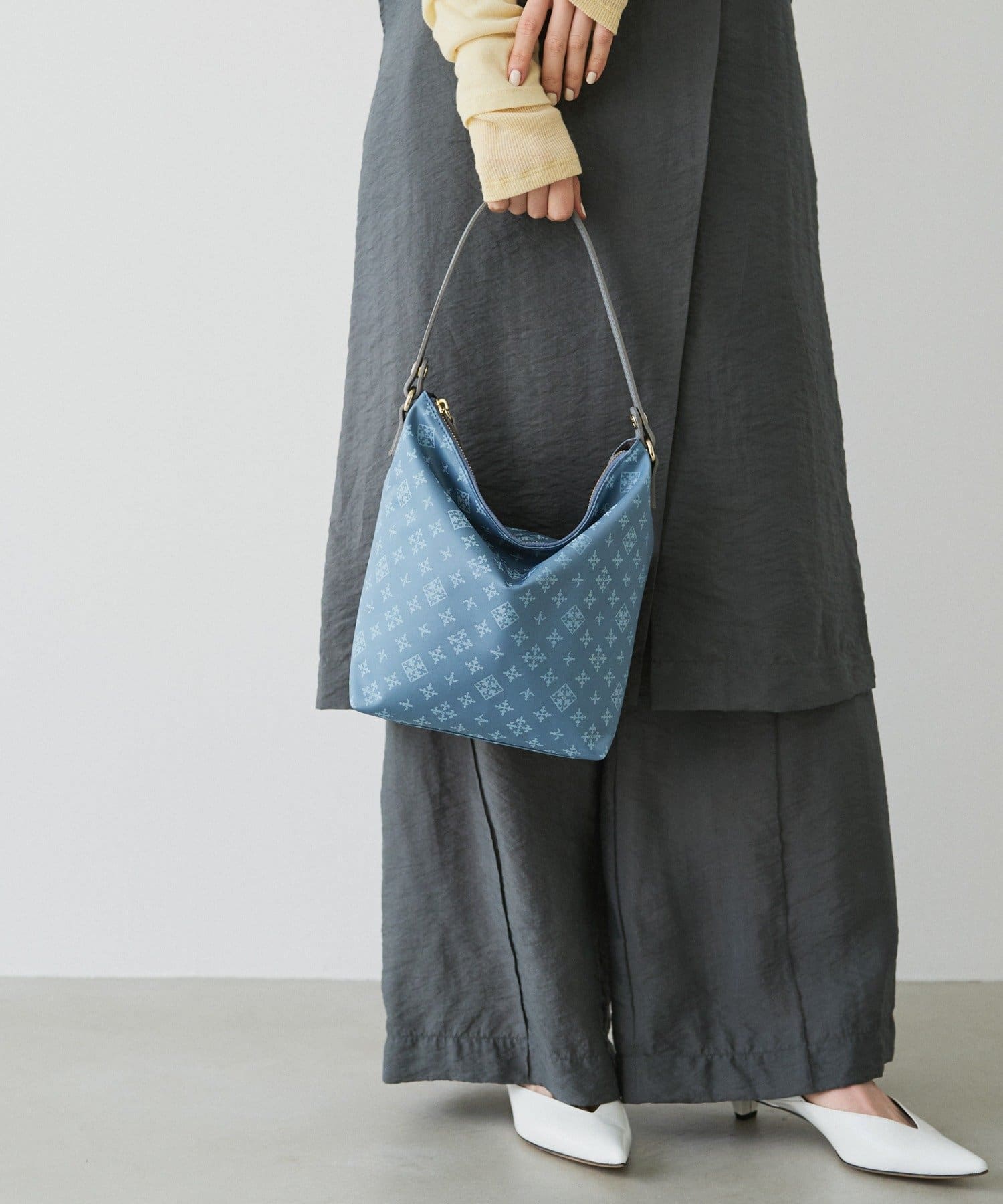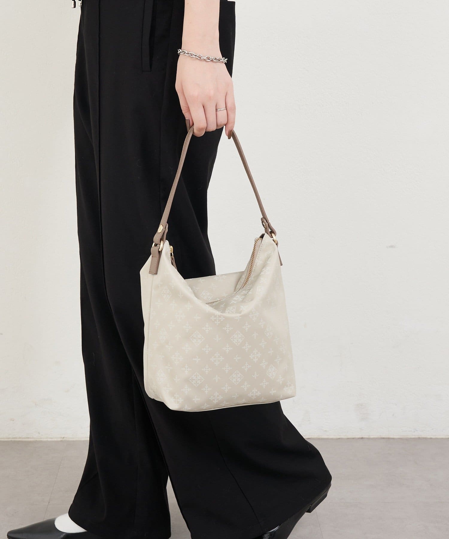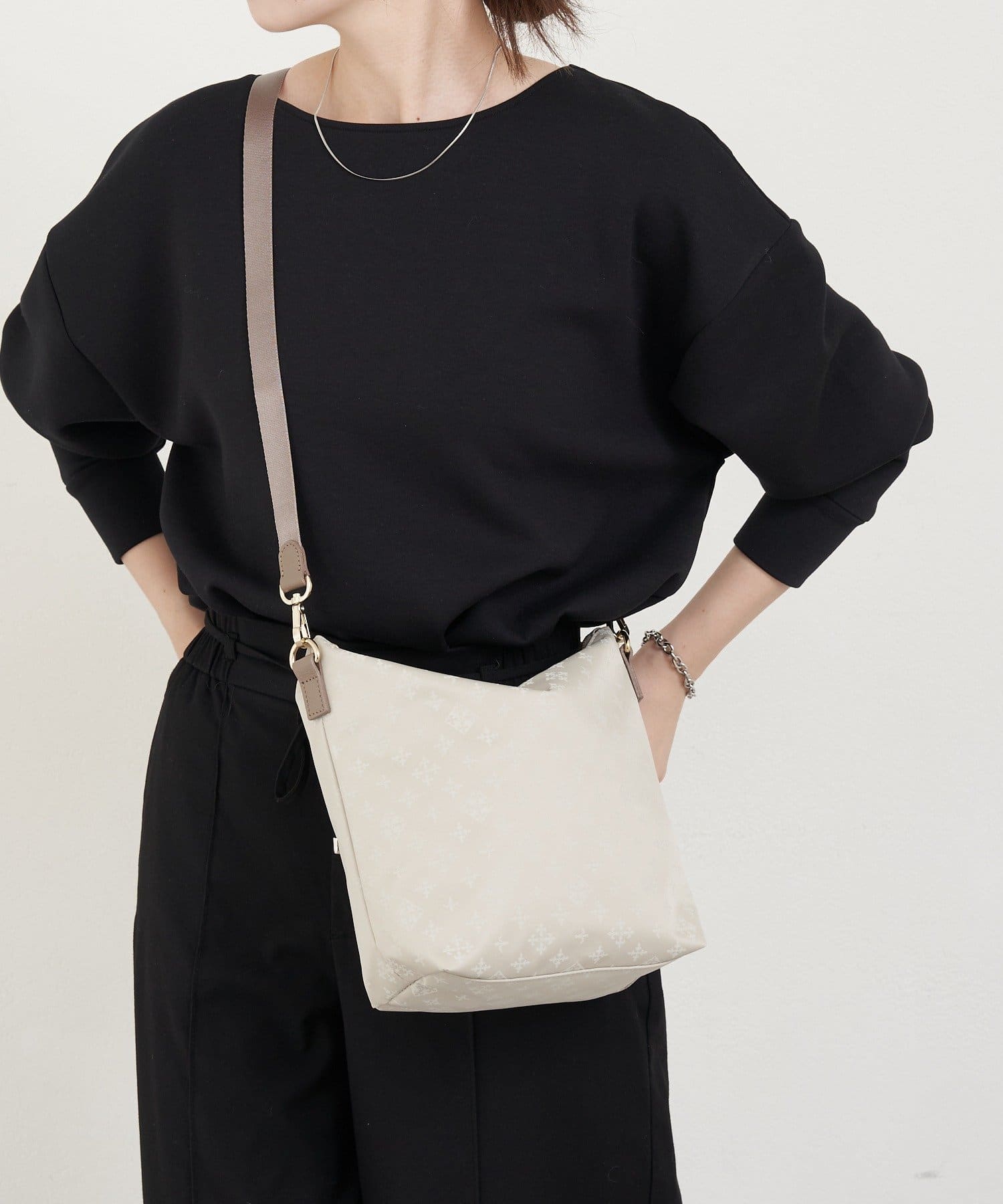 織りで表現したモノグラム柄が上品に映える、ナイロンジャガード素材のバッグ。