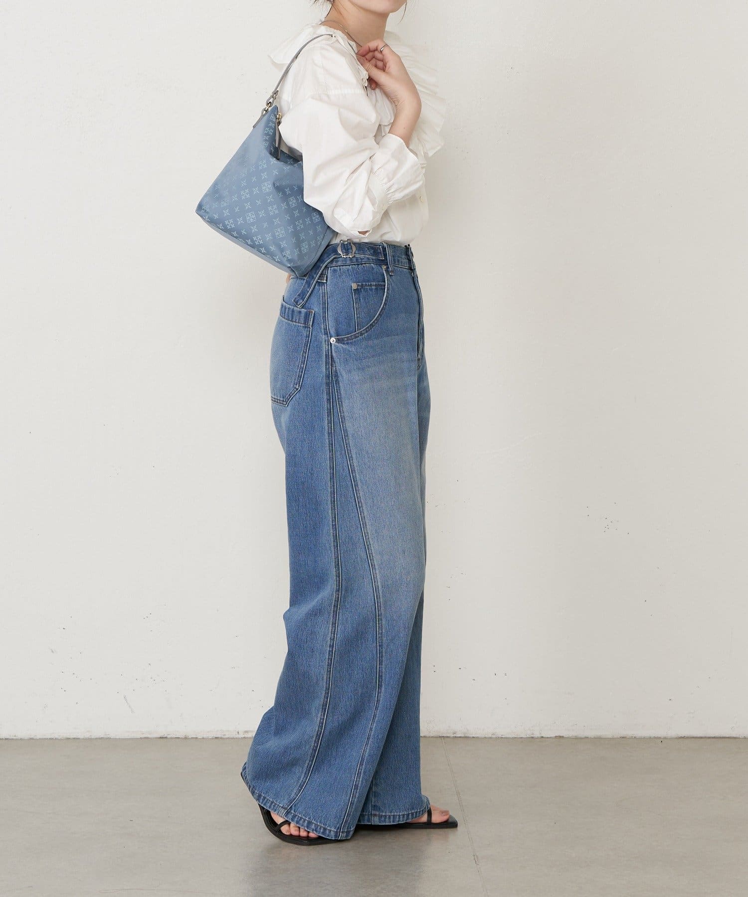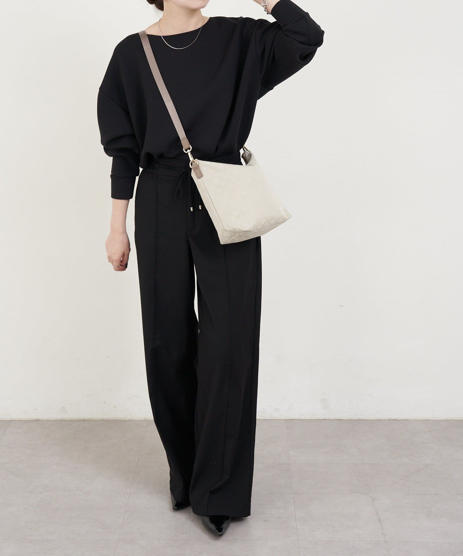 細身のショルダーベルトが全体をすっきり見せ、華奢な印象に仕上げています。