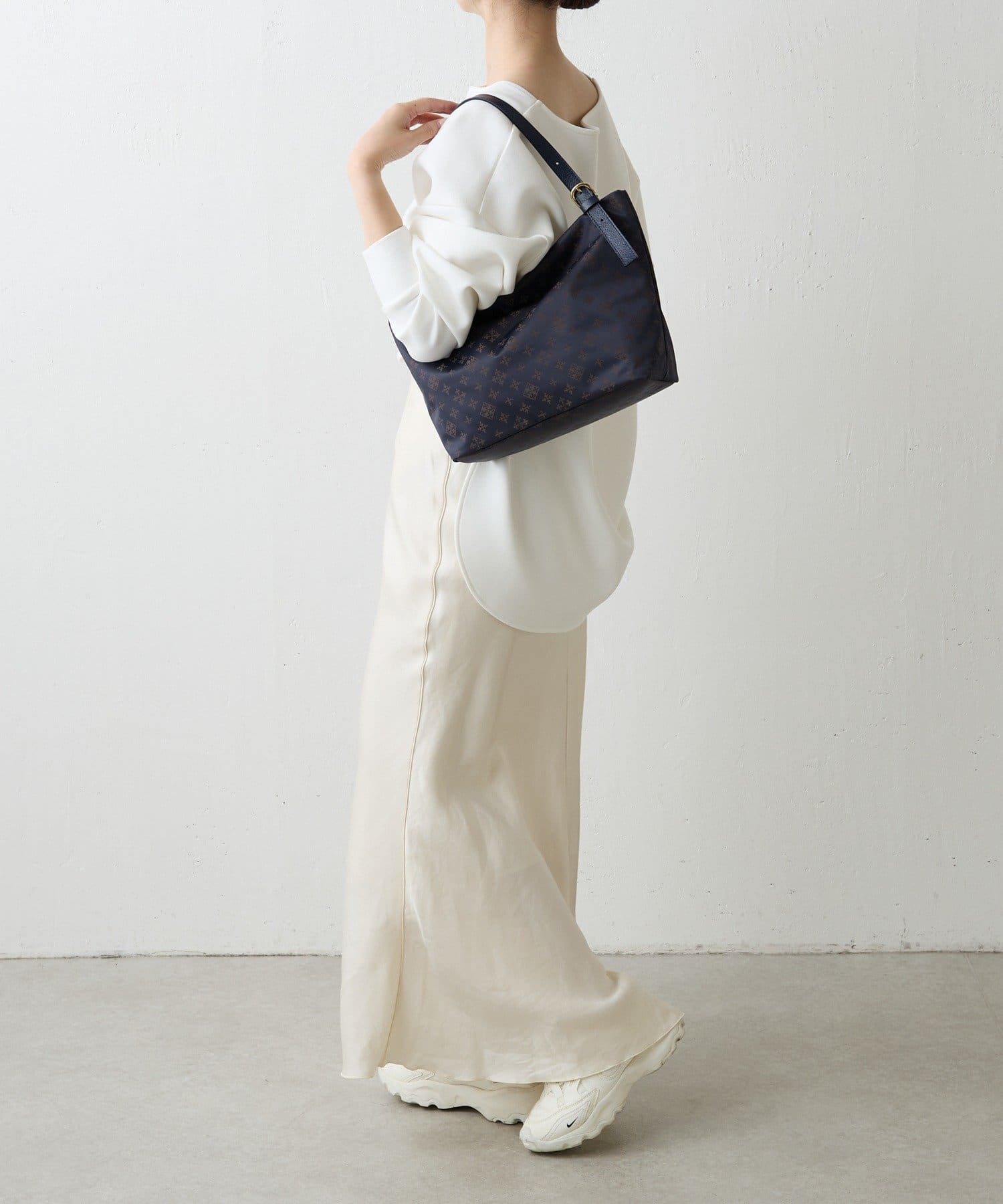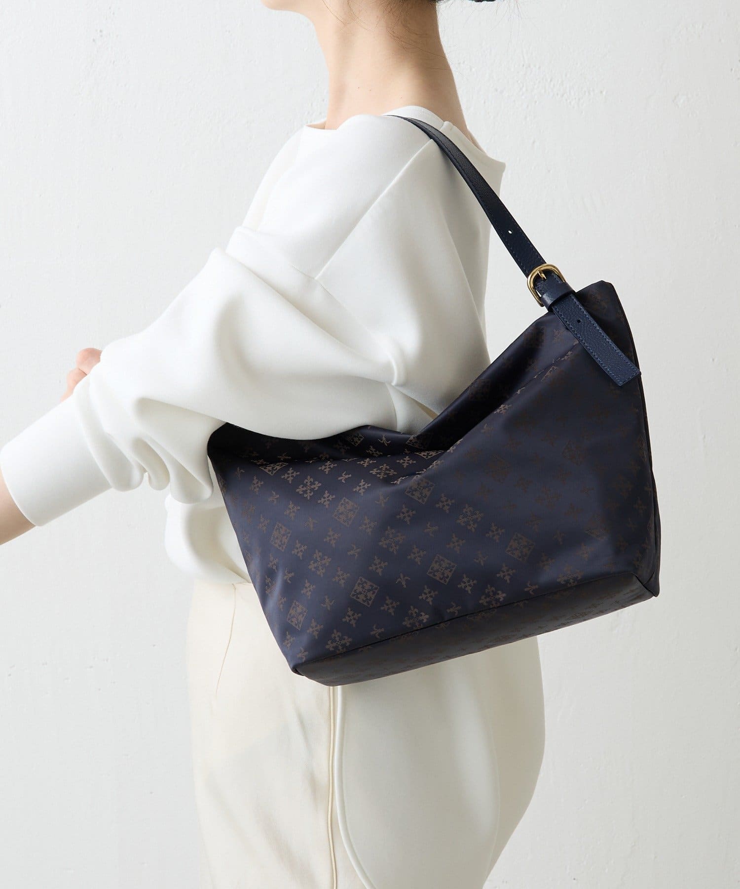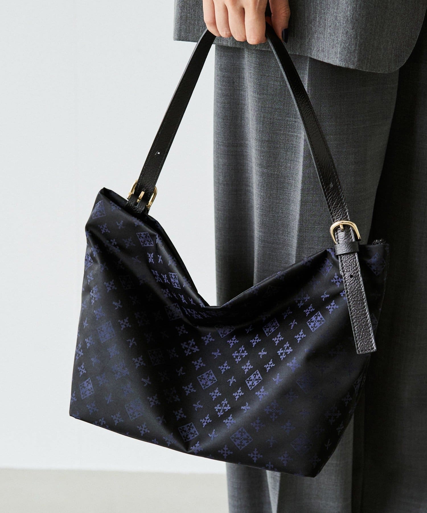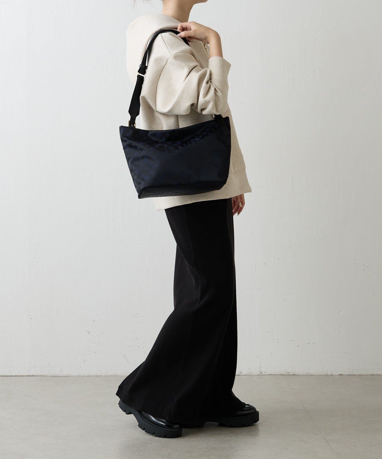 ナイロンジャガード素材に、上品な牛革ハンドルを合わせた2WAYトートバッグ。