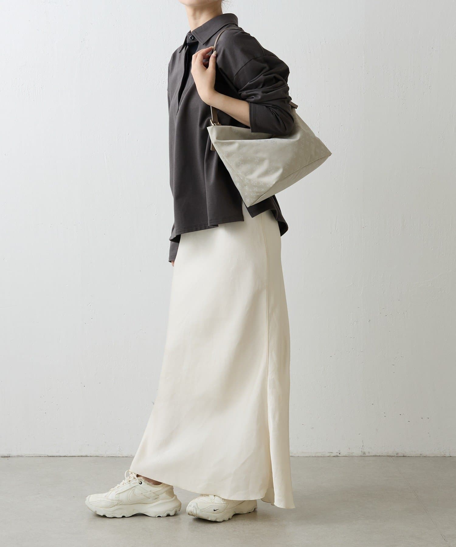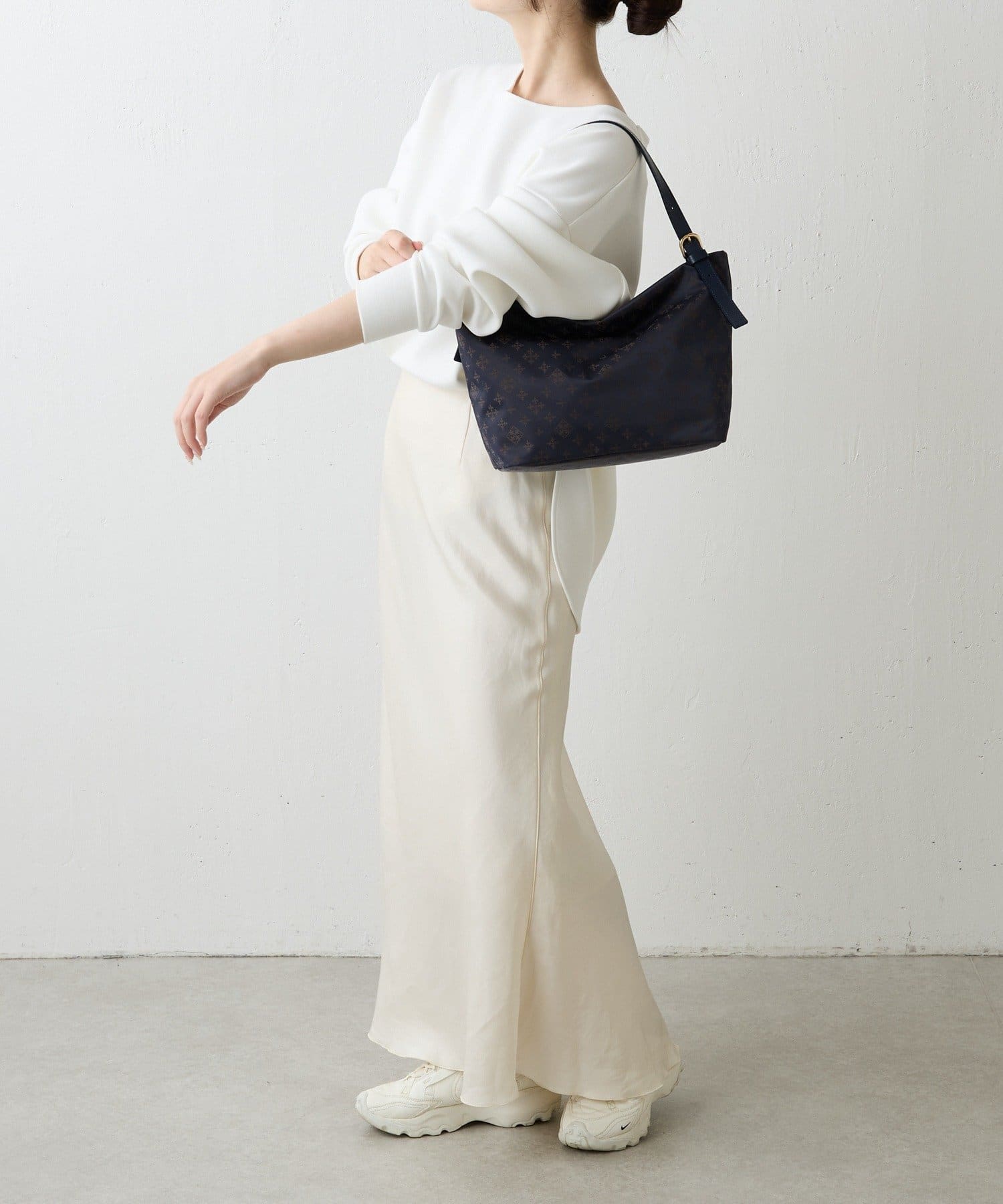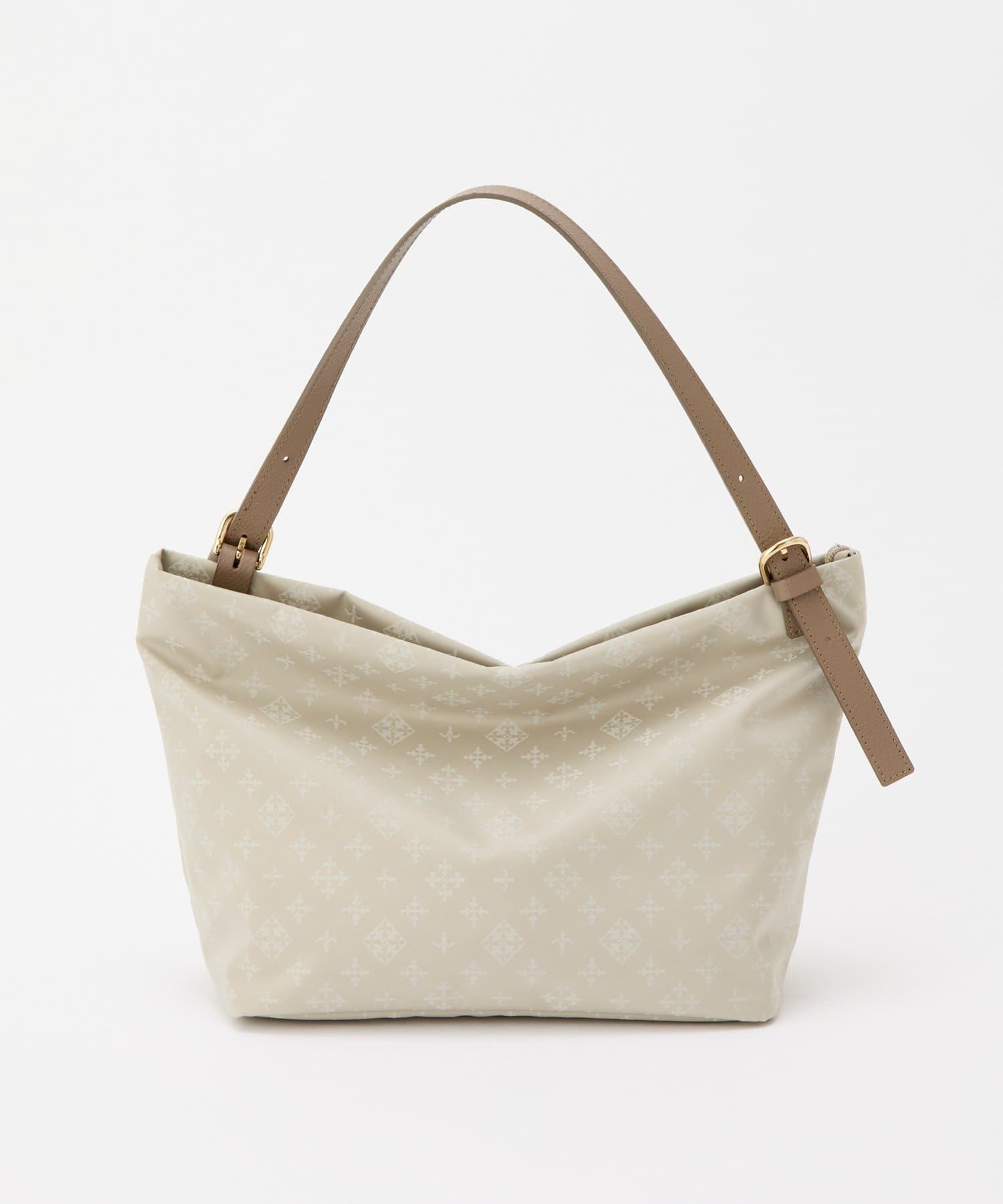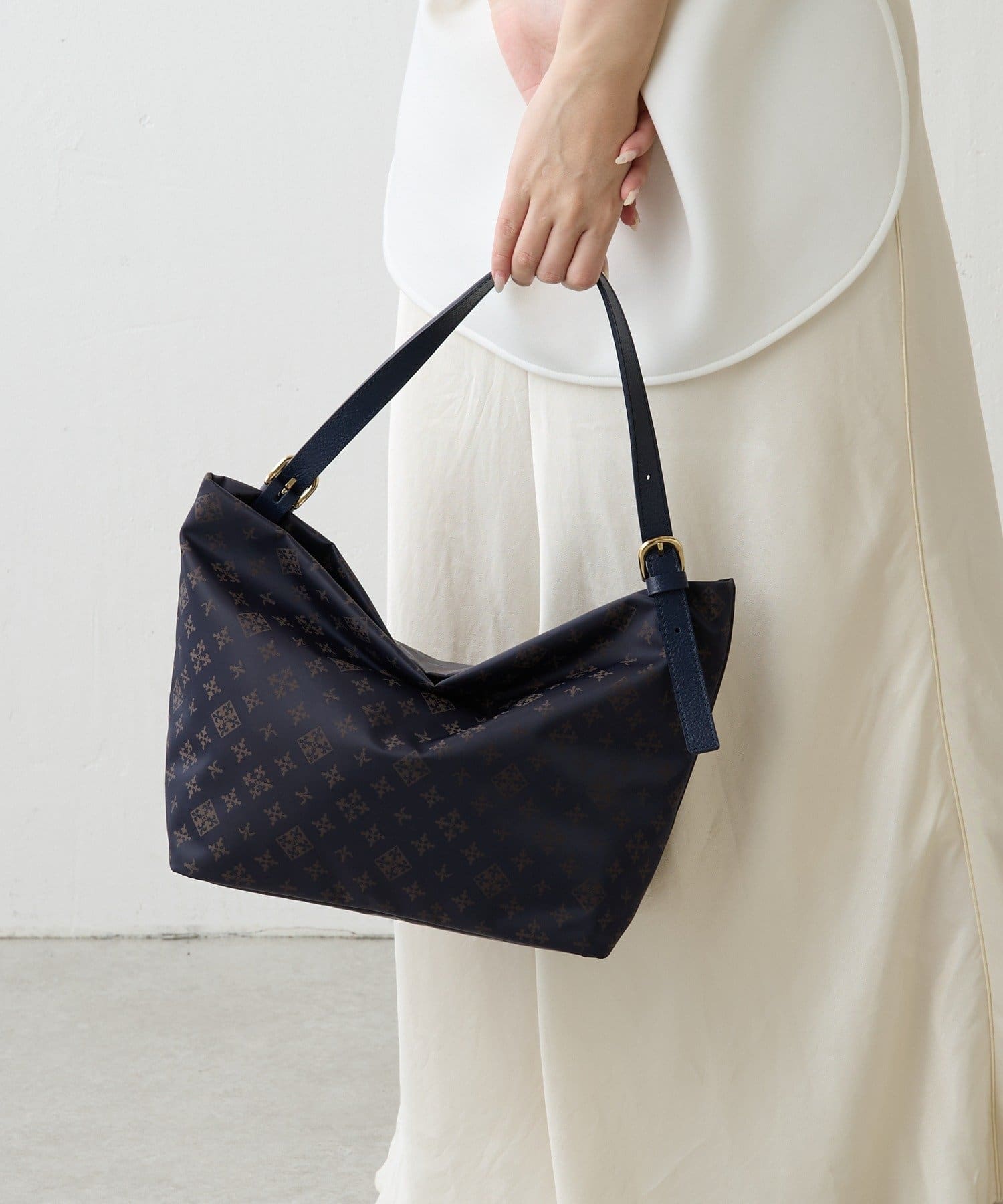 ナイロンジャガード素材に、上品な牛革ハンドルを合わせた2WAYトートバッグ。