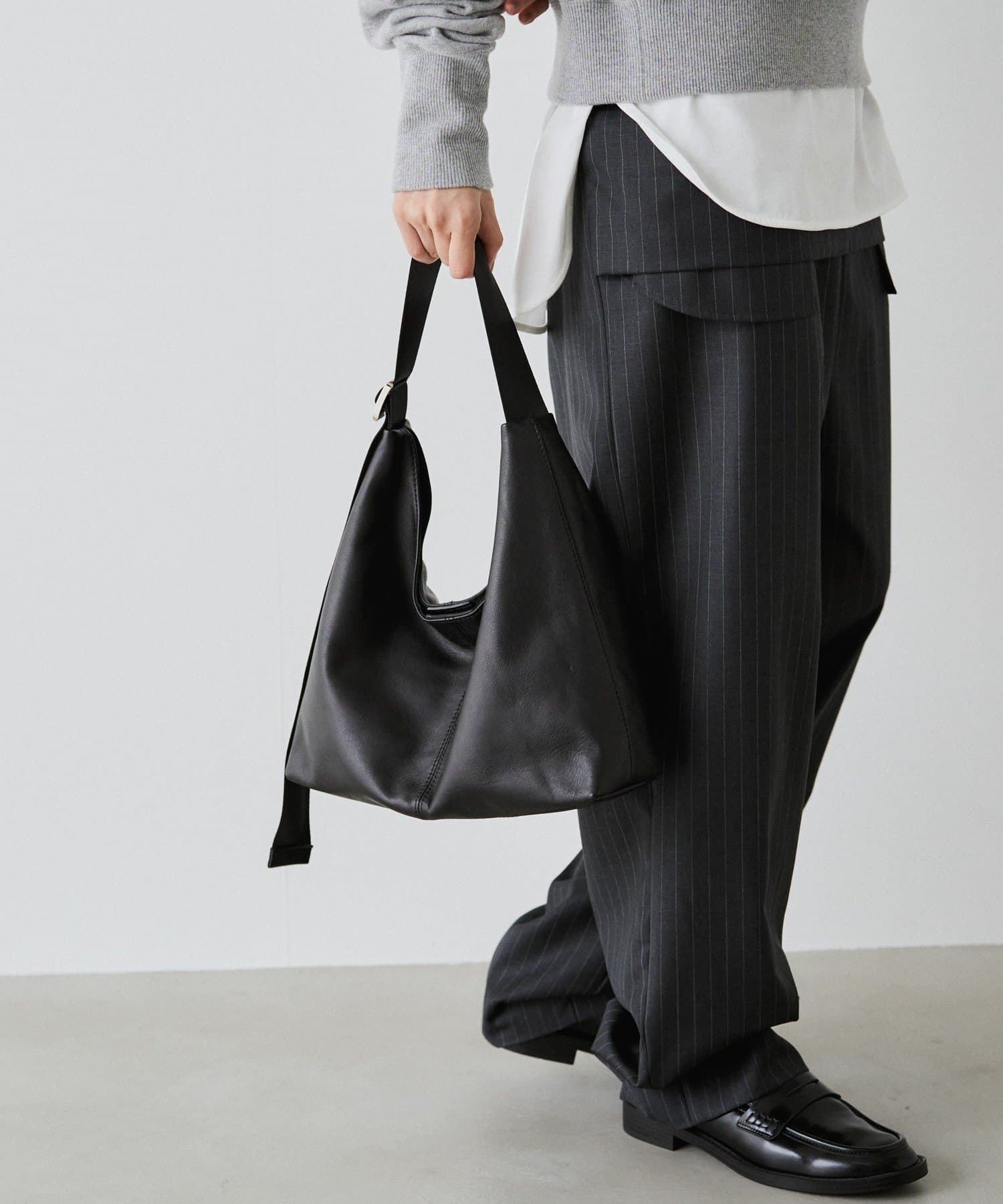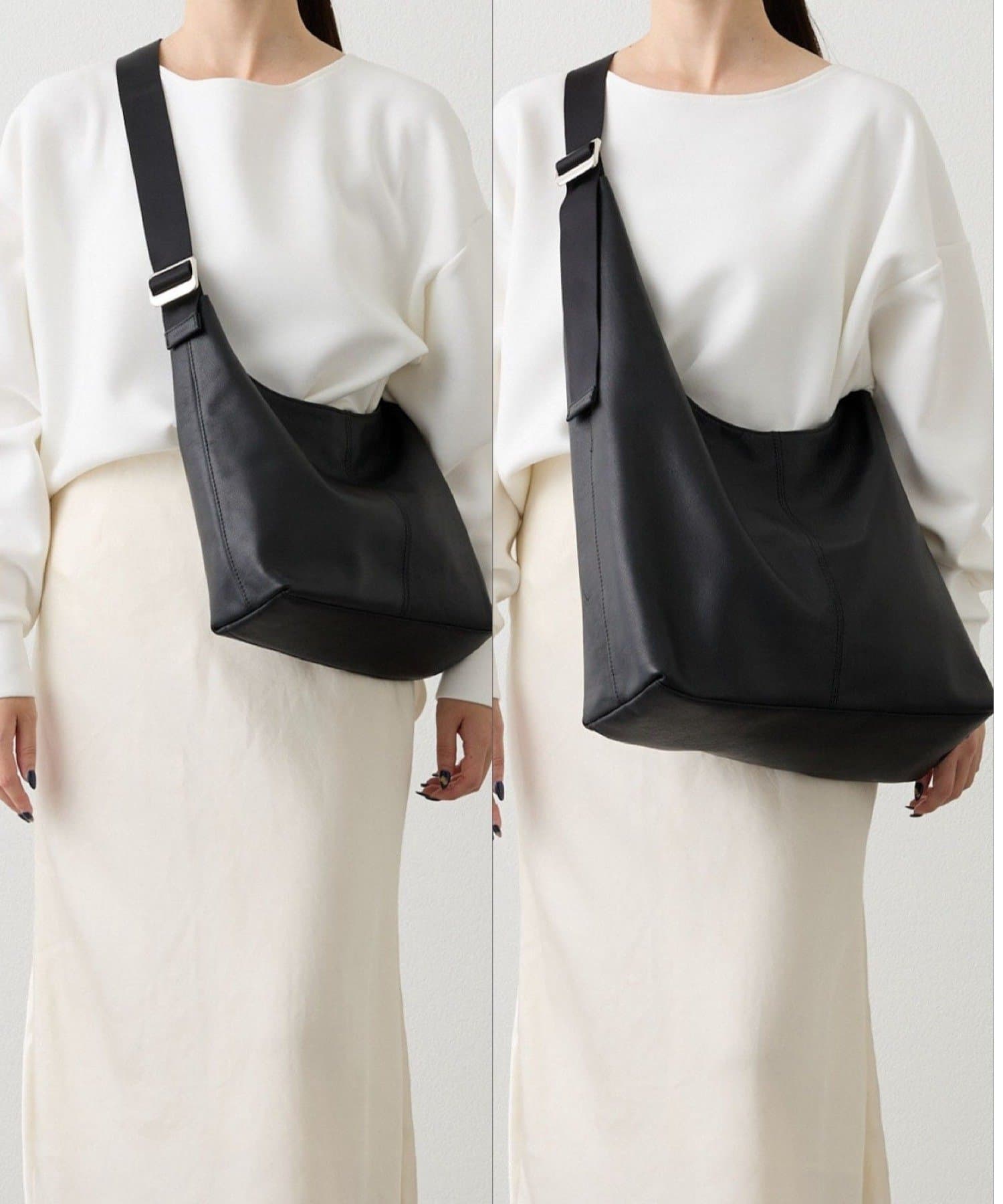 長財布や500mlペットボトルが収まる実用性がありながら、きれいめにもカジュアルにも馴染みます。