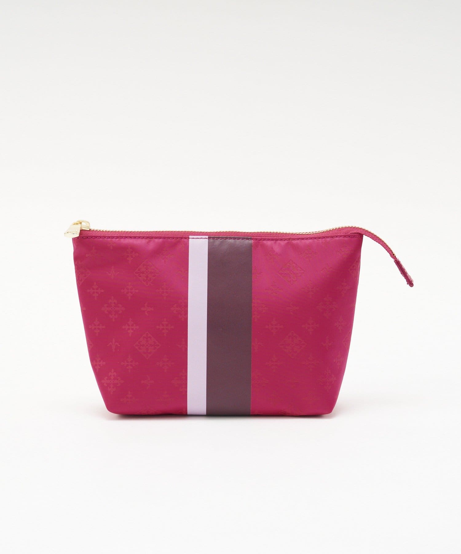 モノグラム生地にバイカラーラインを配した、スタイリッシュなMサイズポーチ。