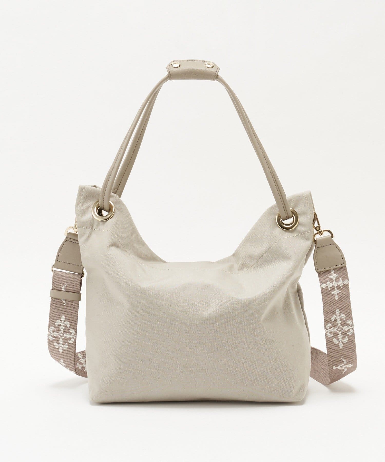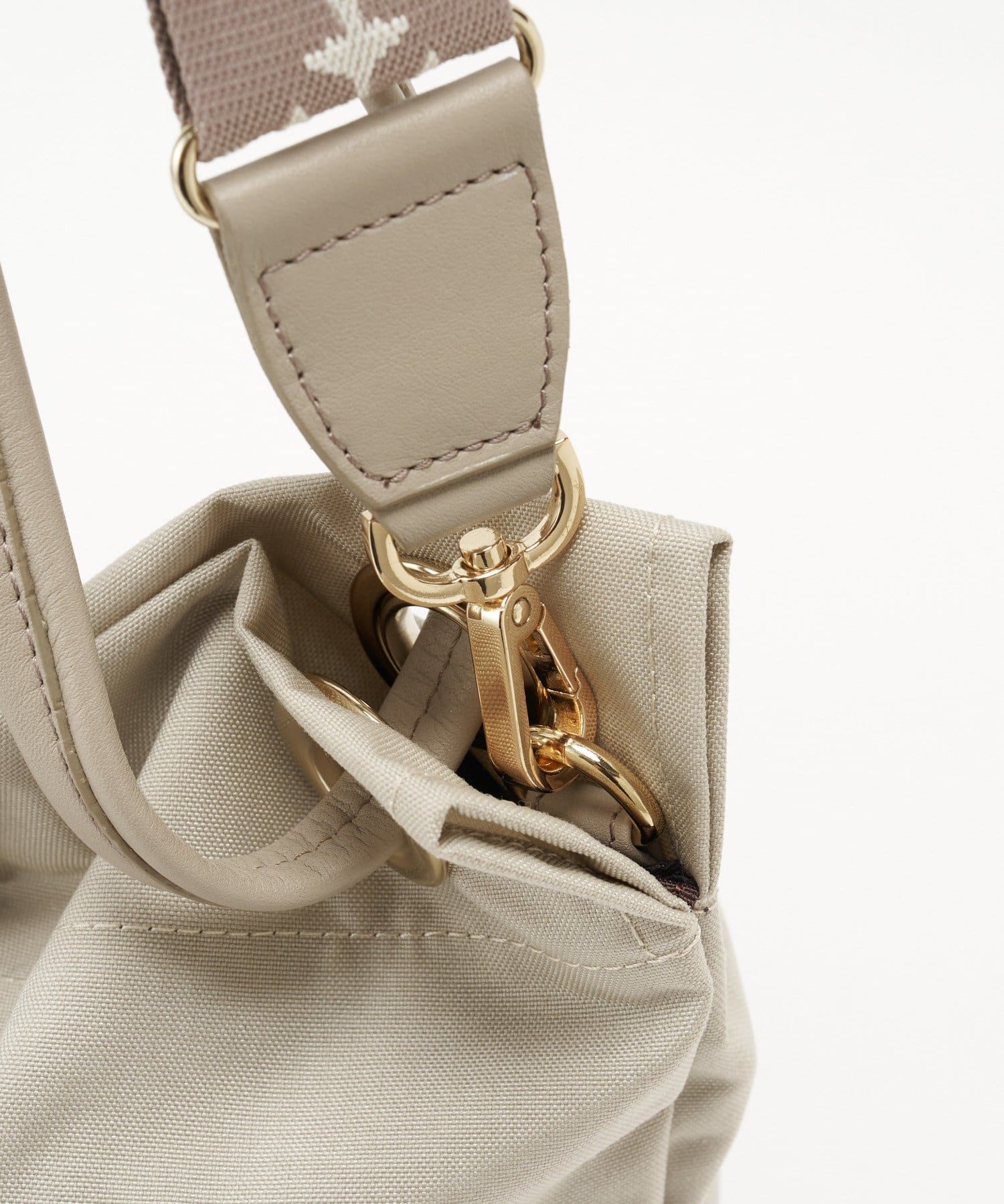 グレージュ(L.Greige)…付属ベルト:ベージュの生地にホワイトのモノグラム。金具:ゴールド。肌馴染みの良いニュアンスカラー。同系色のお洋服と合わせると、洗練されたエレガントな雰囲気に。
